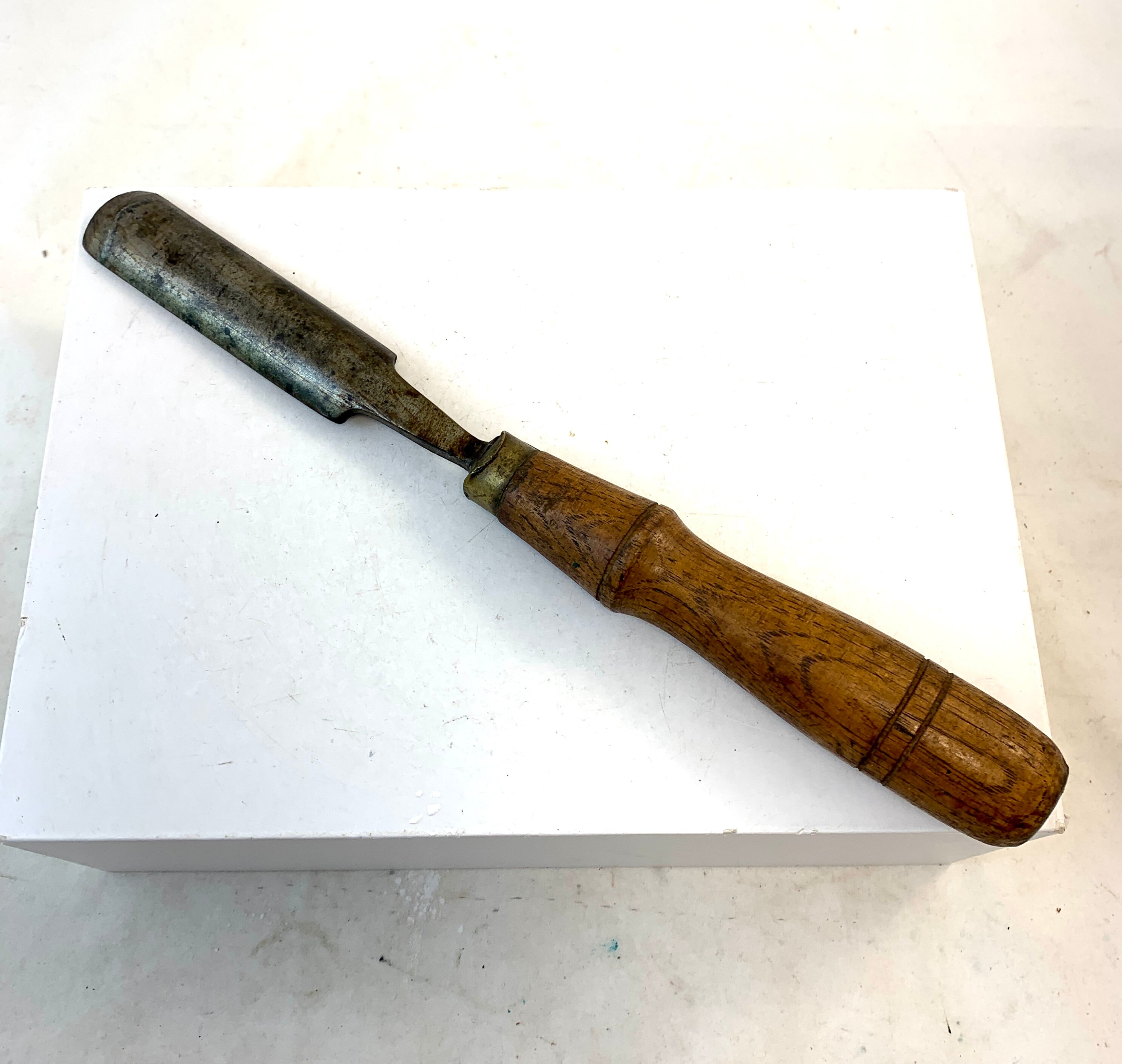 Condition: in good condition, some cracking to the metal ring around the handle, and discolouration to the metal as a result of age and wear. Stamped with Howell Cast steel.