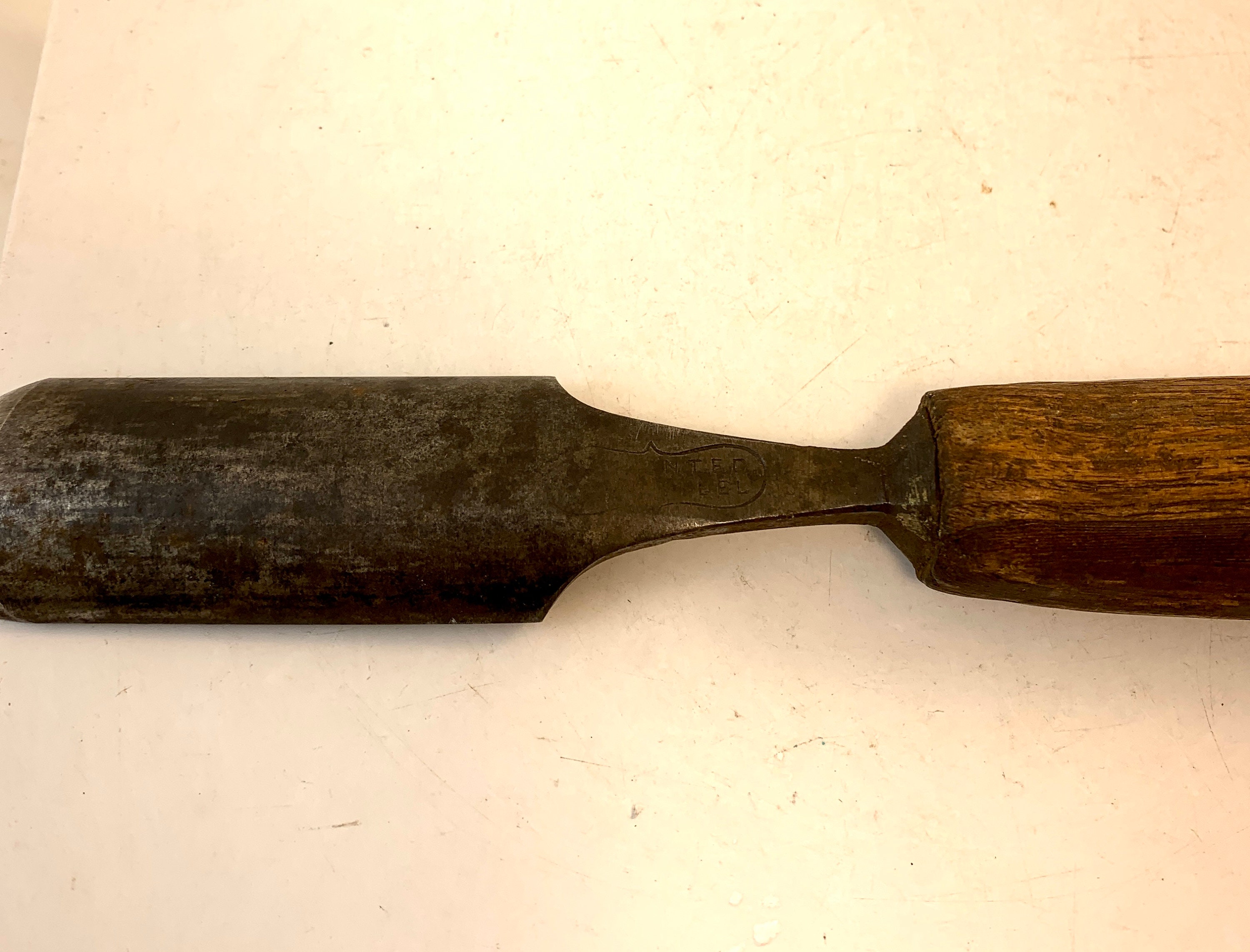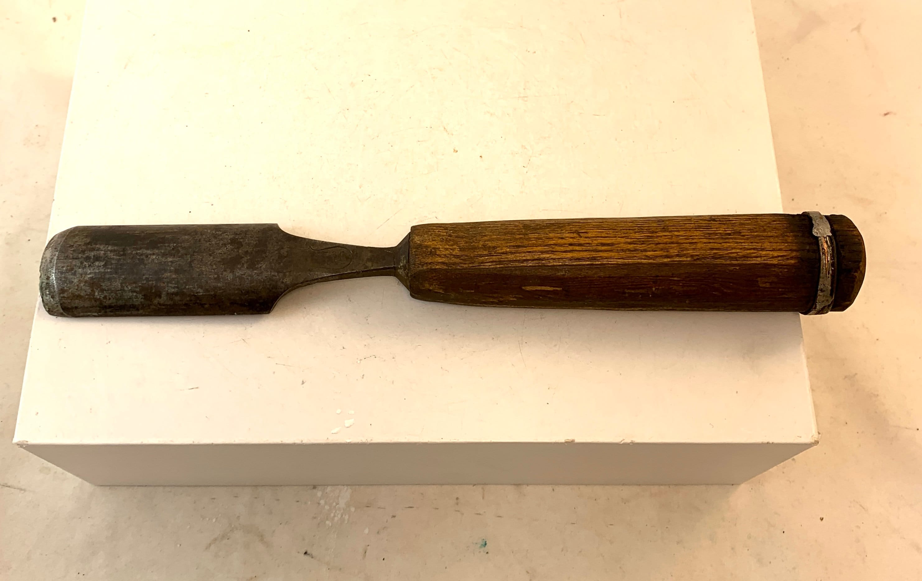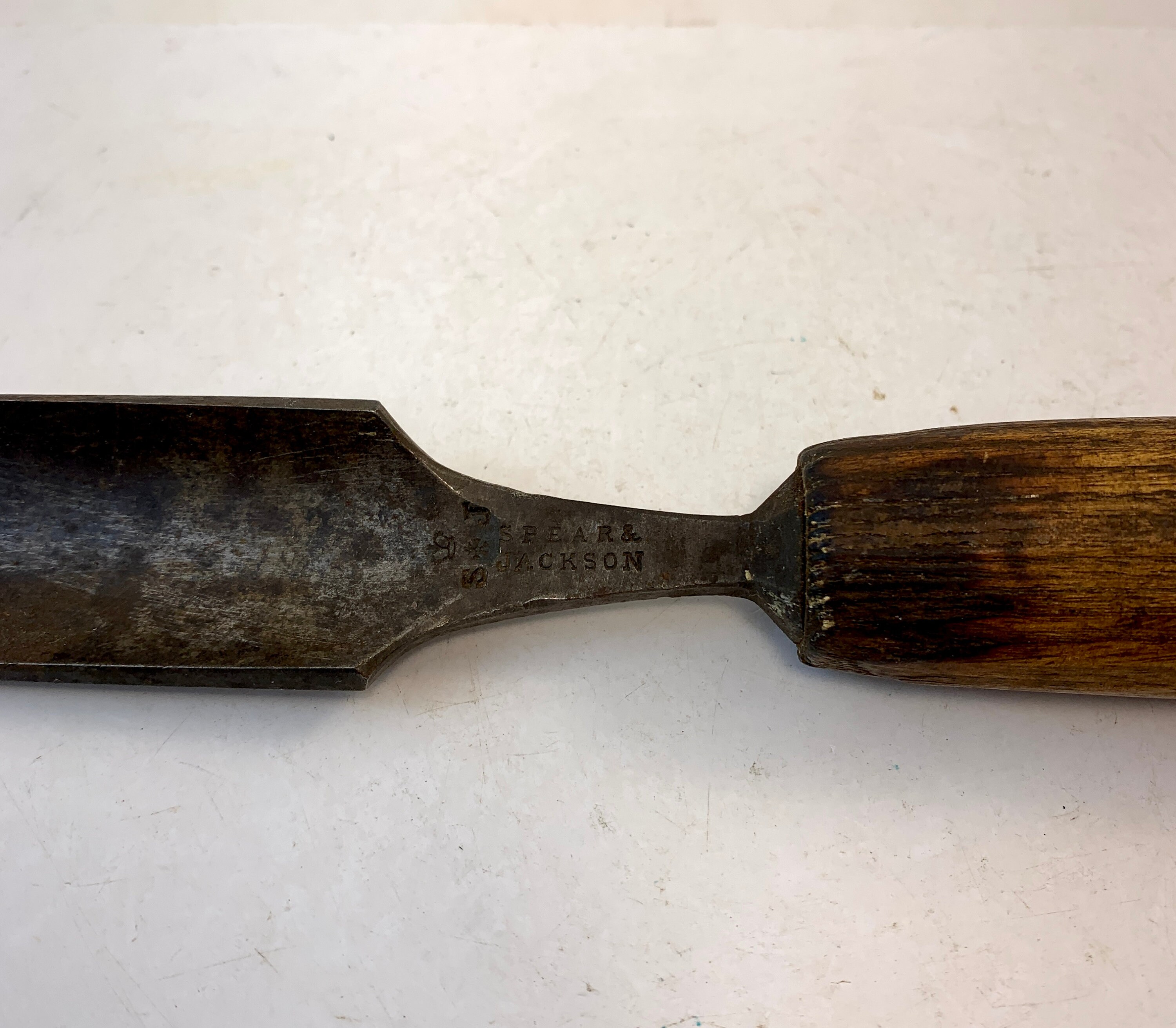 Condition: In good condition, some chips in the wooden handle and a few scratches to the metal chisel. Stamped with S*J Spears & Jackson on the base of the chisel.
