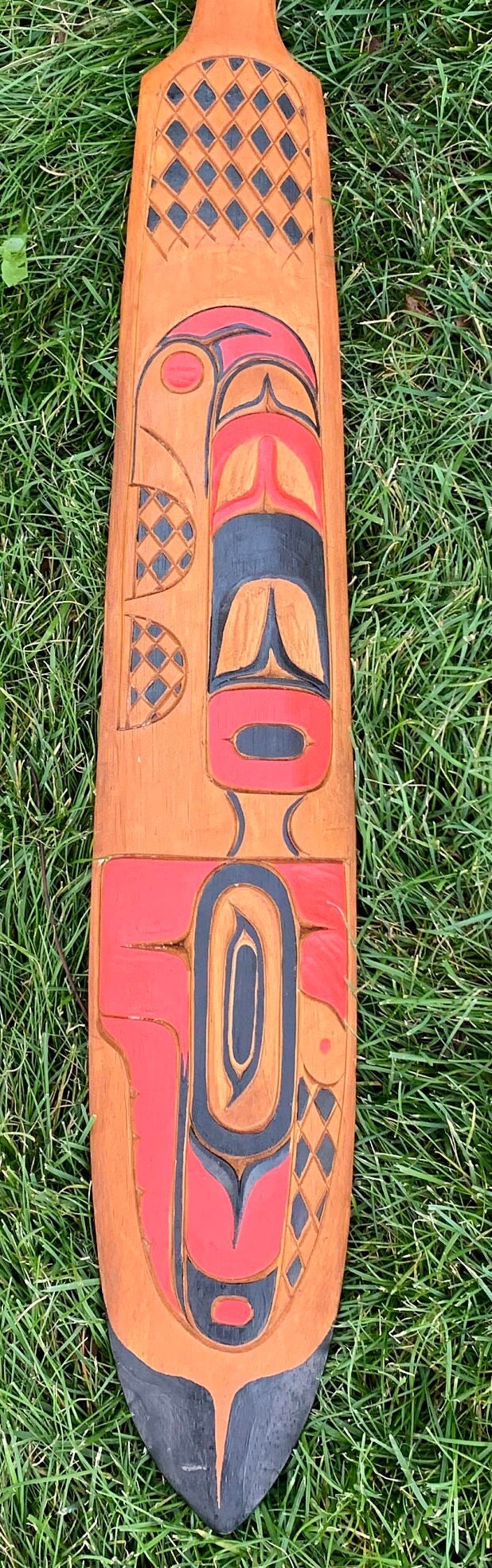 Decorative Indigenous Ceremonial Dancing Paddle Carved in the Style of the Canadian Western Haida First Nation