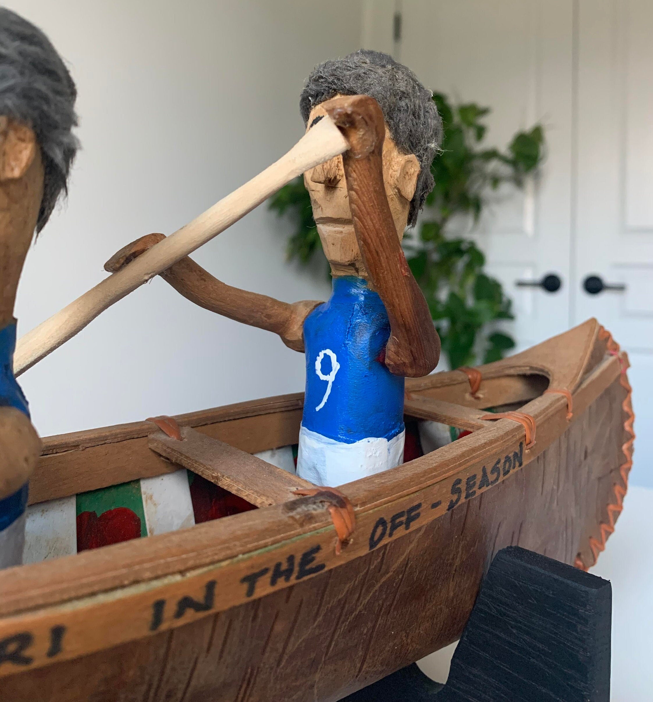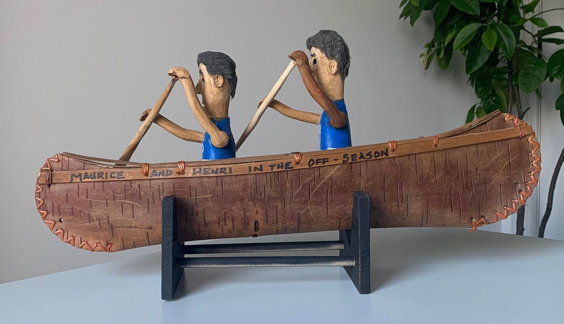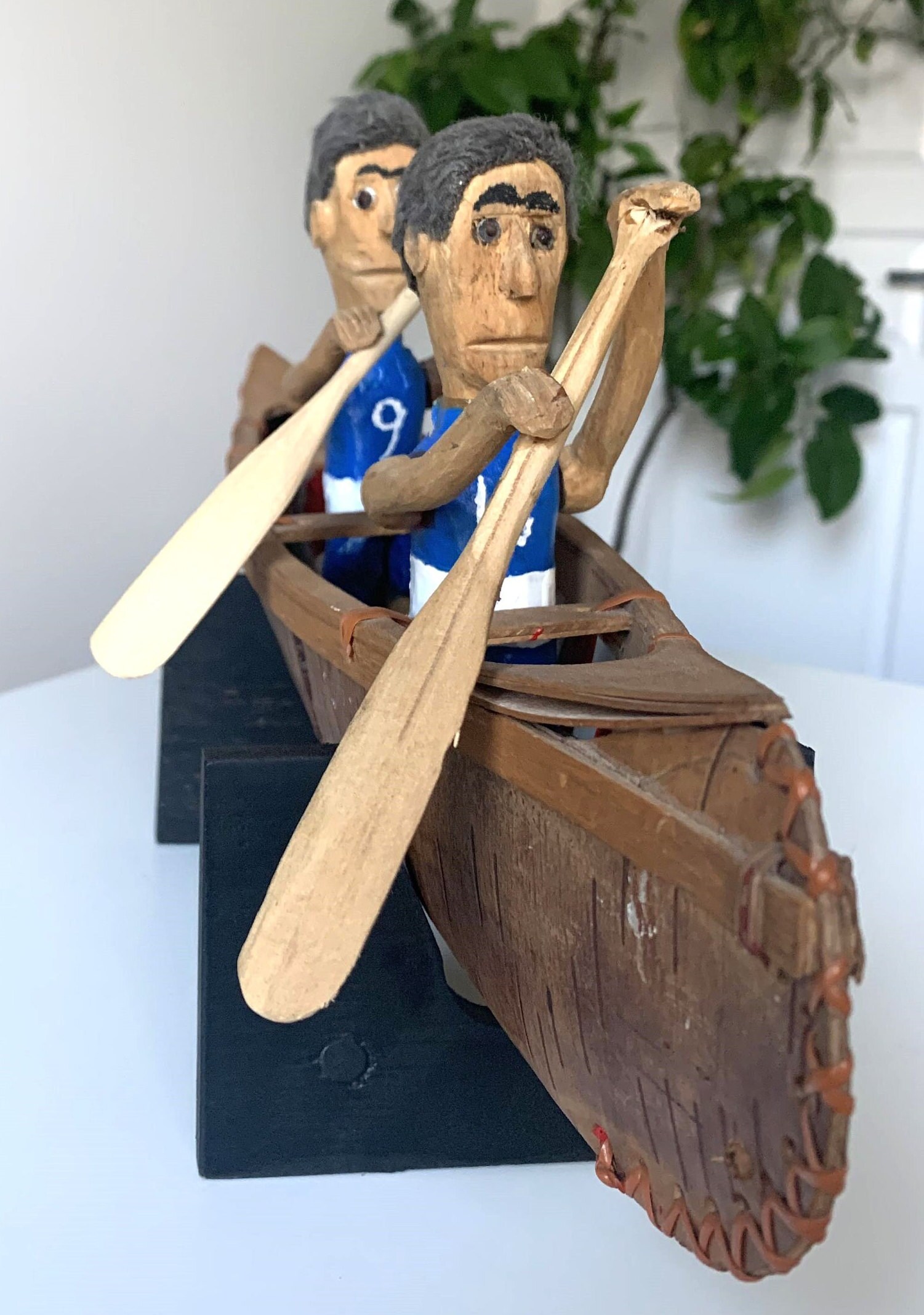 Vintage Quebec Folk Art Canoe with the Richard Brothers (Montreal Canadiens Hockey Team)