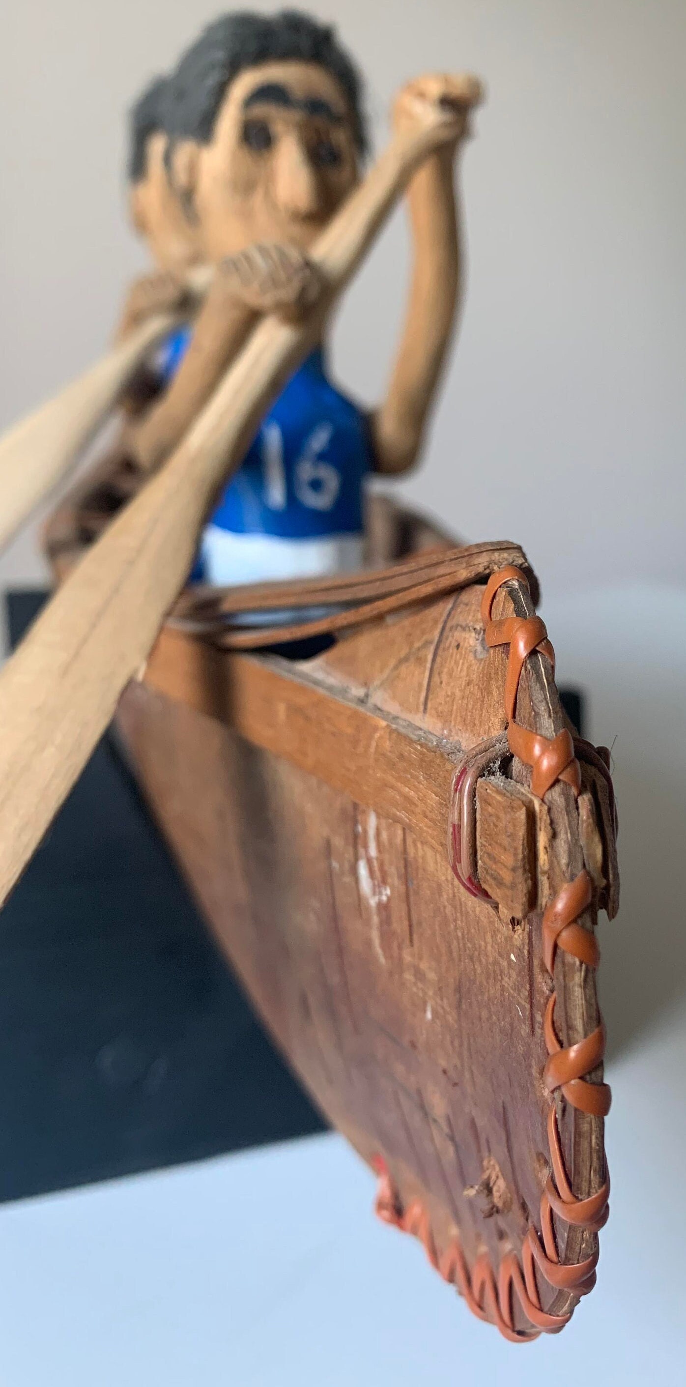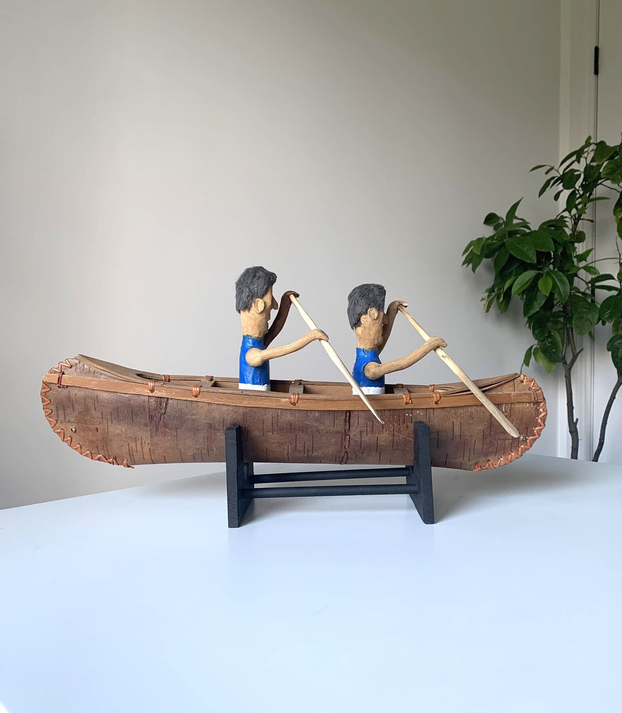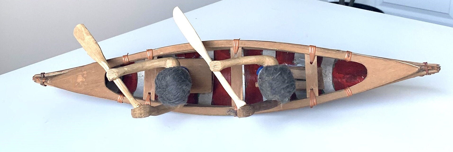 Vintage Quebec Folk Art Canoe with the Richard Brothers (Montreal Canadiens Hockey Team)