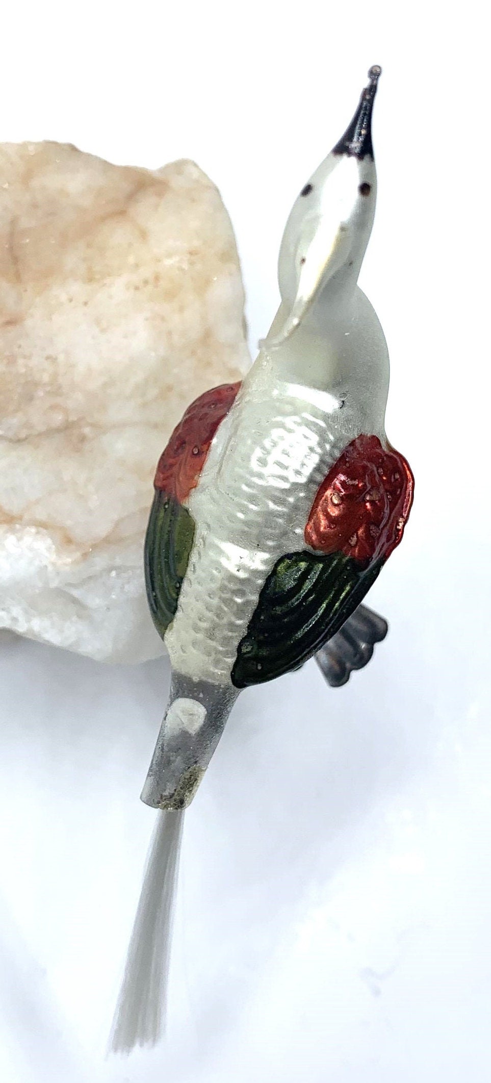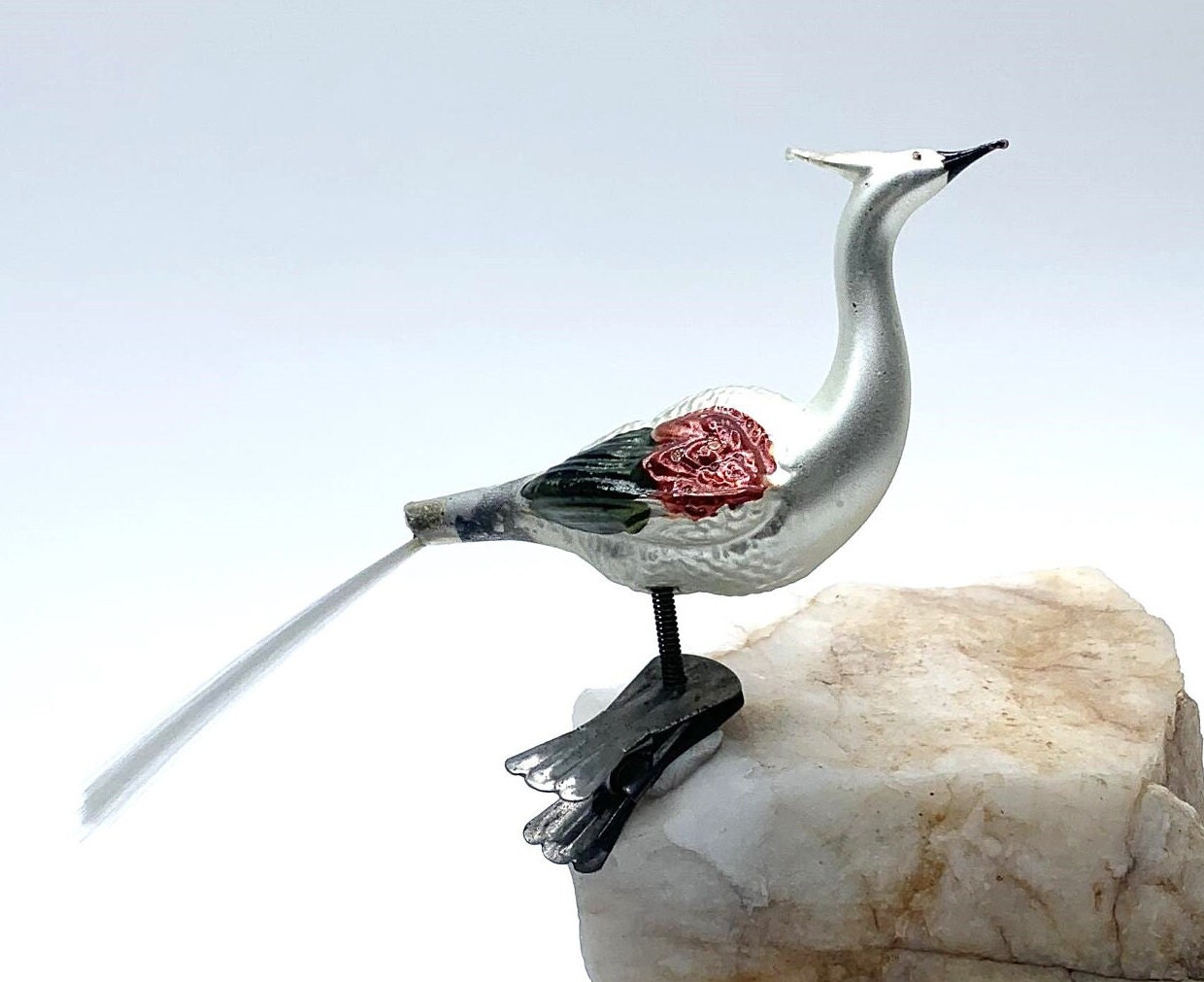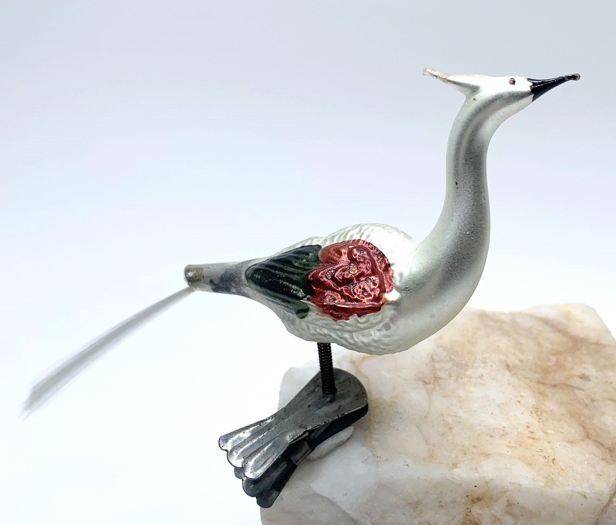 Antique German Mercury Glass Peacock Christmas Ornament