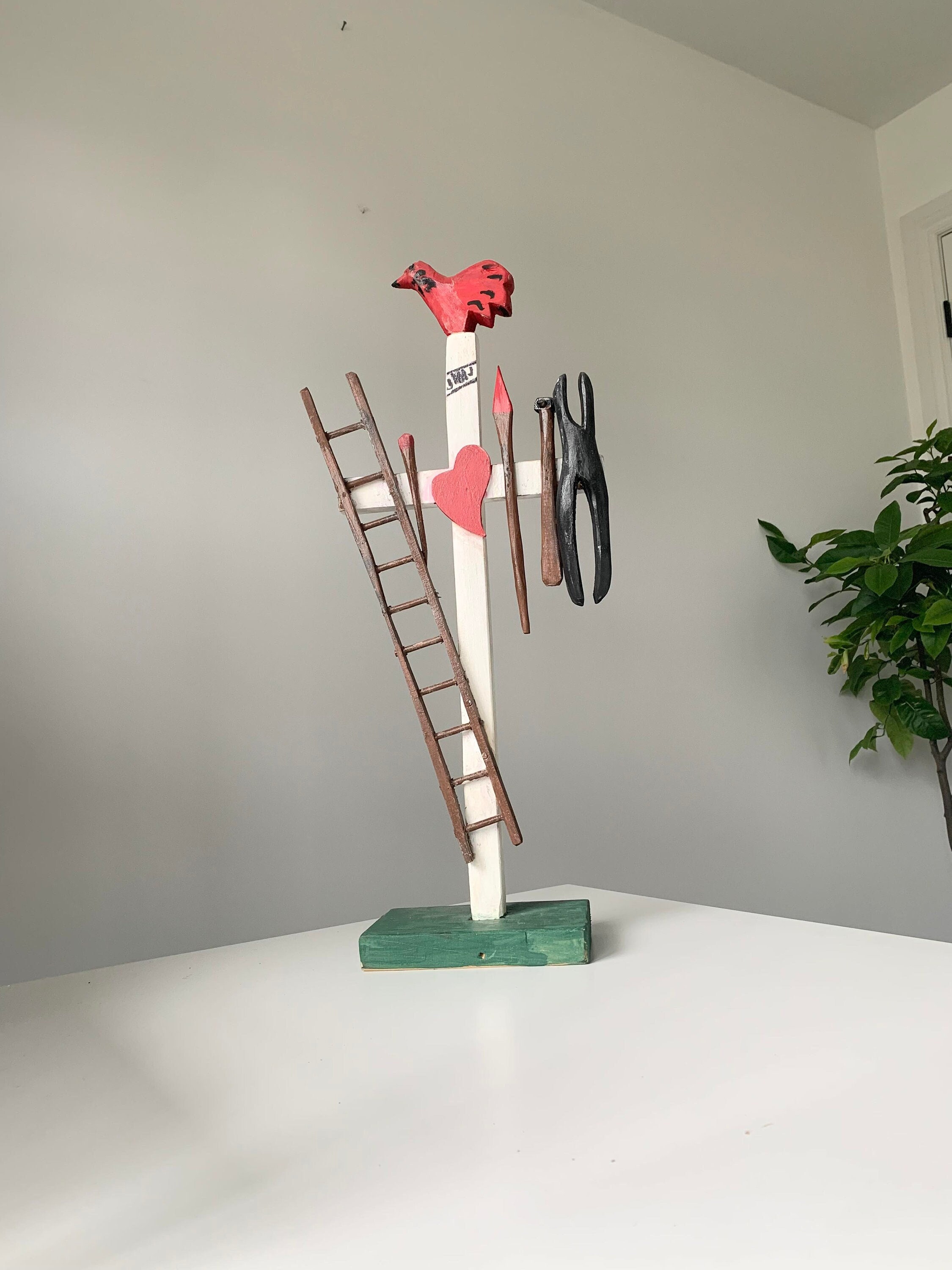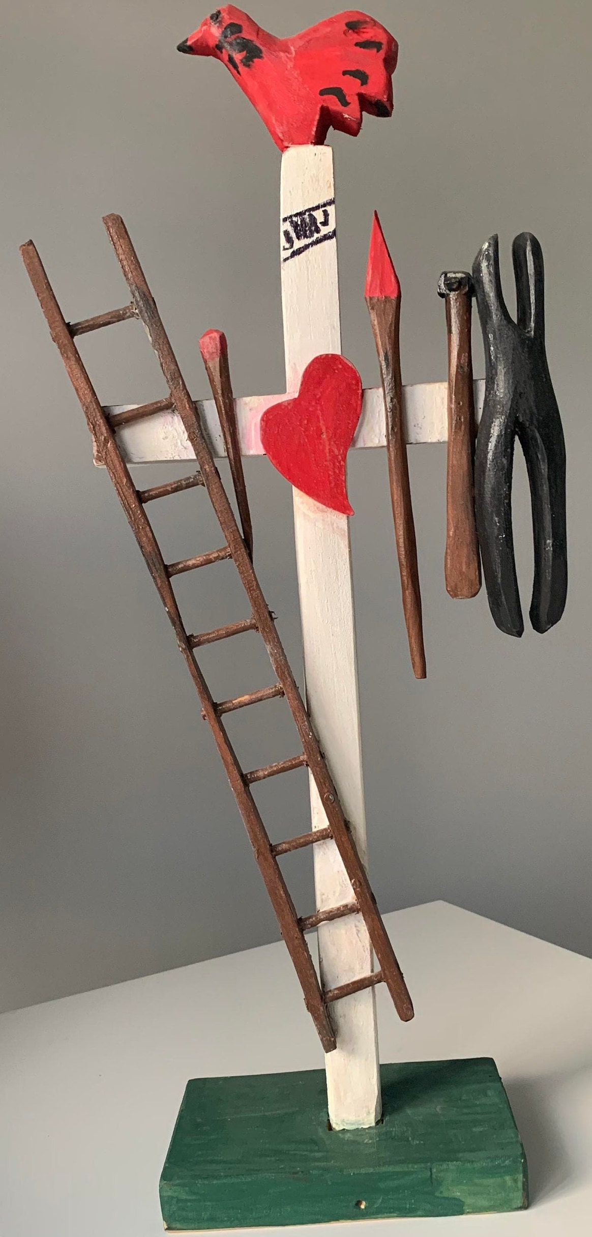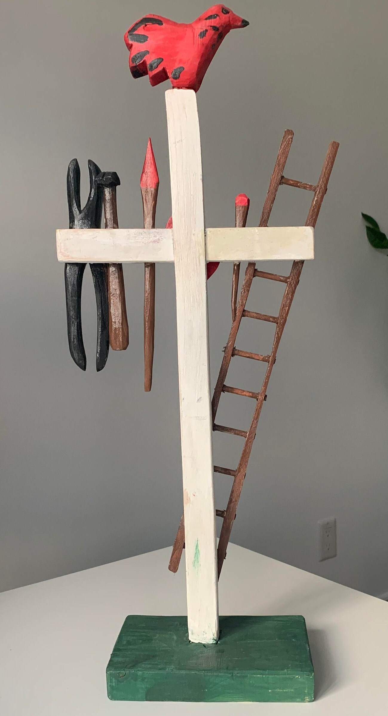 Quebec Primitive Folk Art Wood Carved Cross "Croix de Chemin"