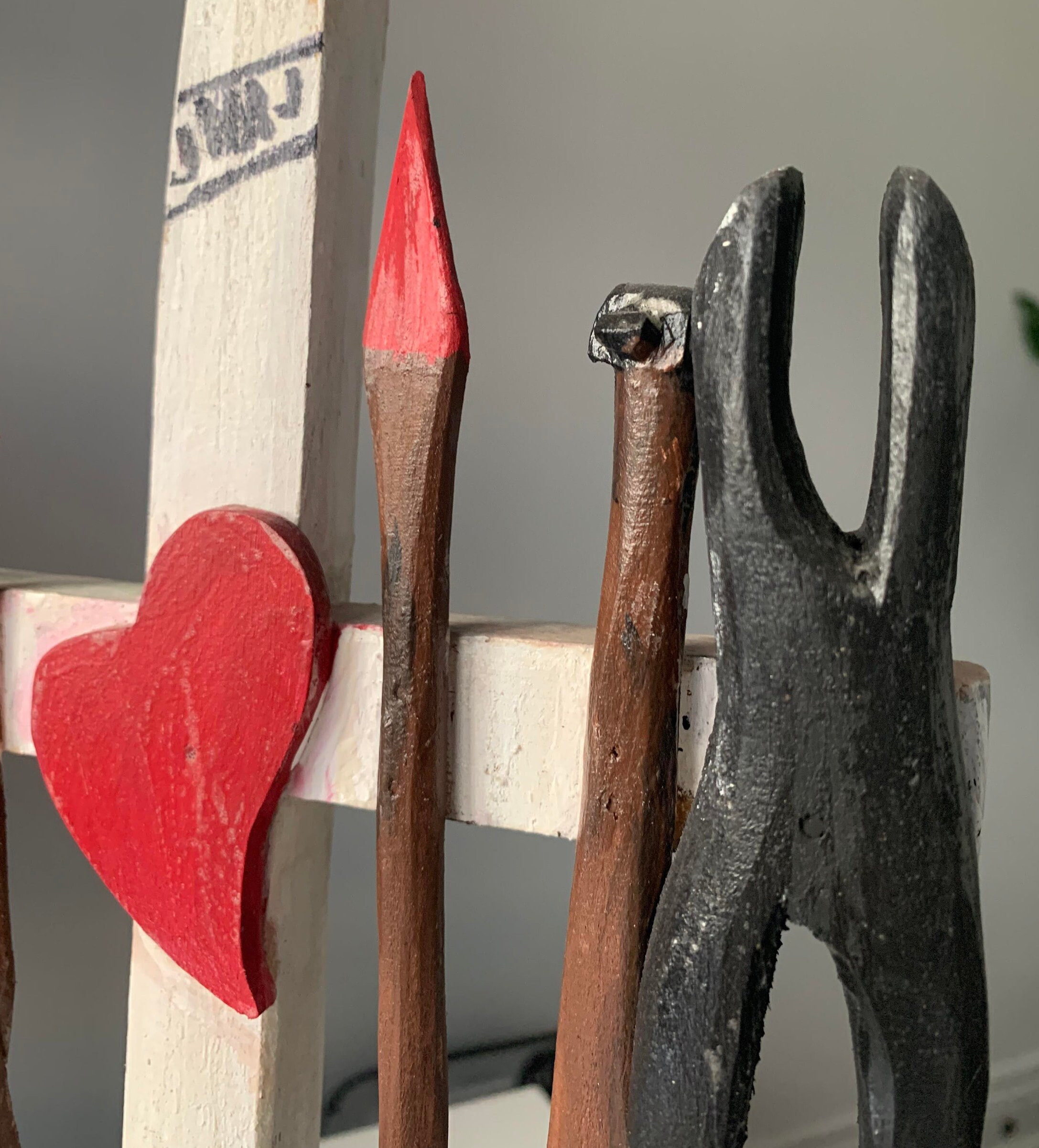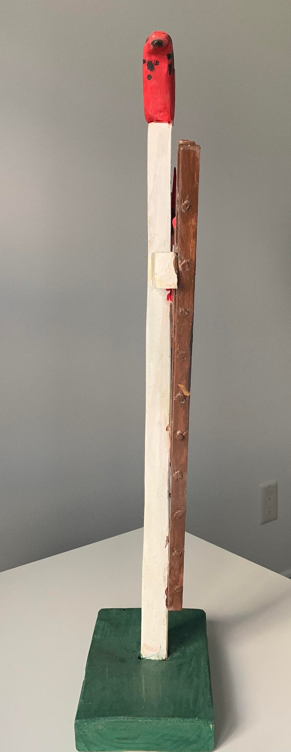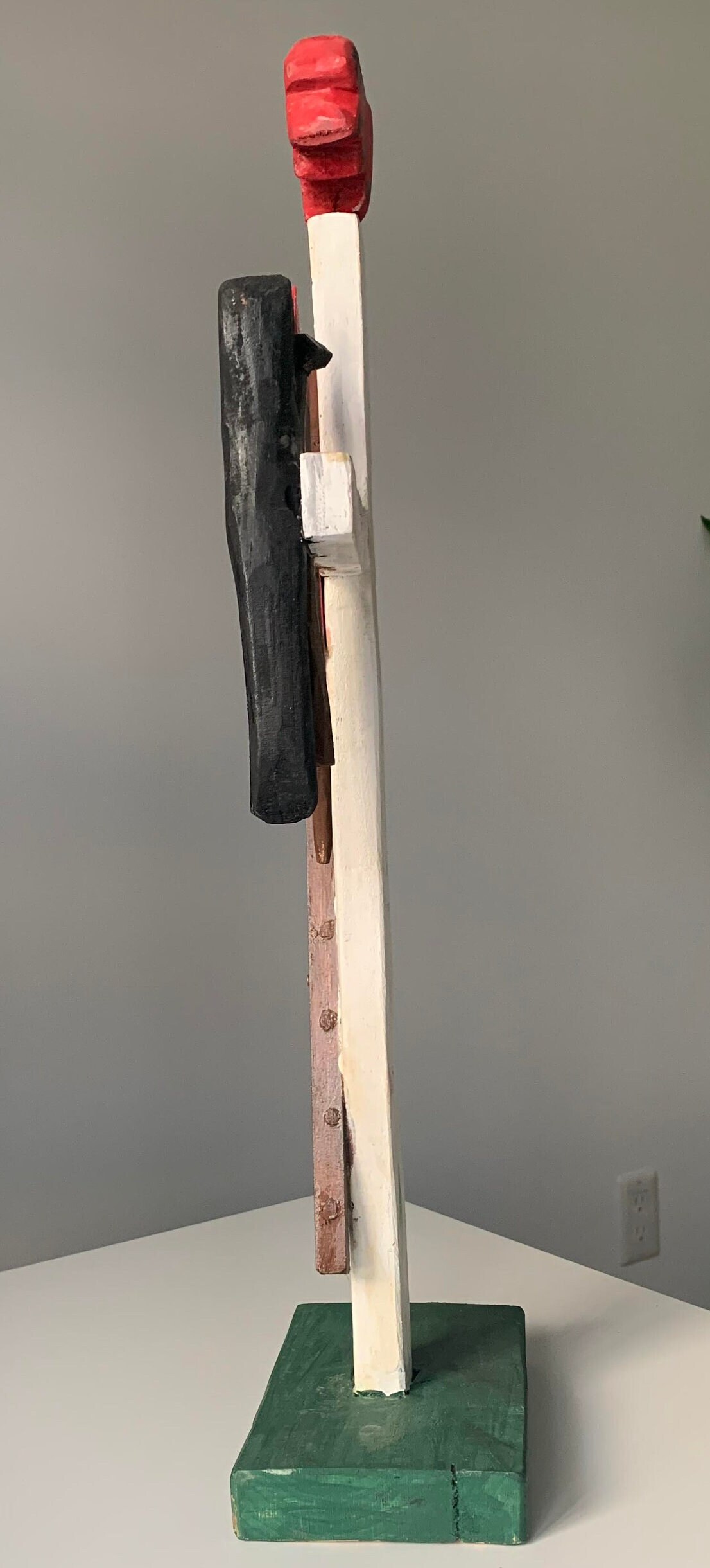 Quebec Primitive Folk Art Wood Carved Cross "Croix de Chemin"