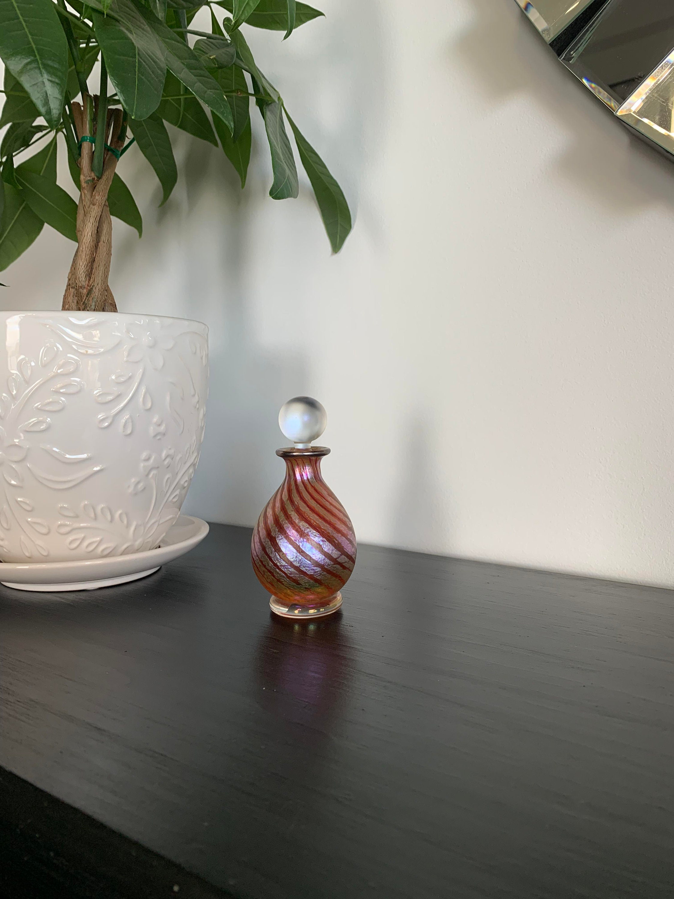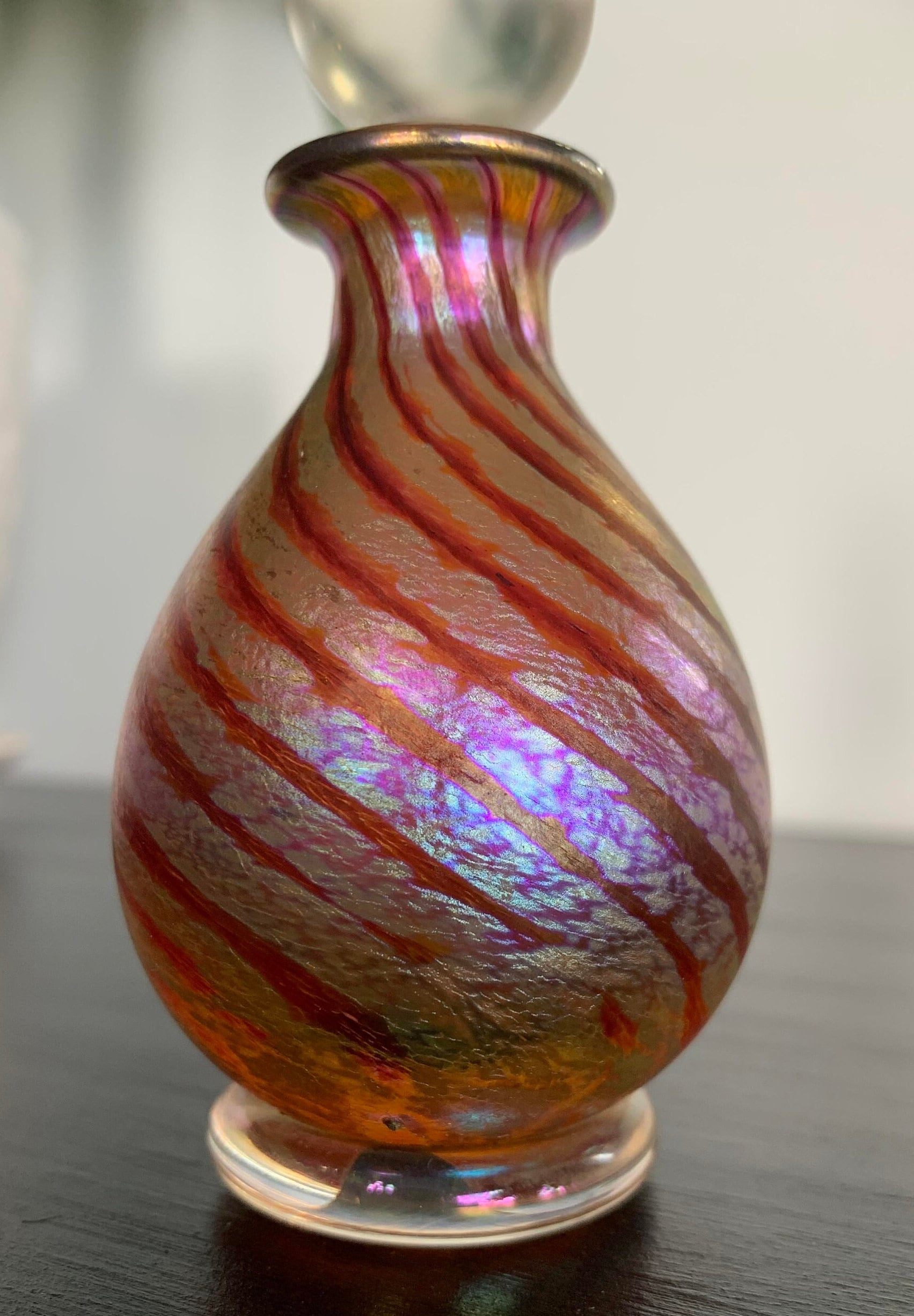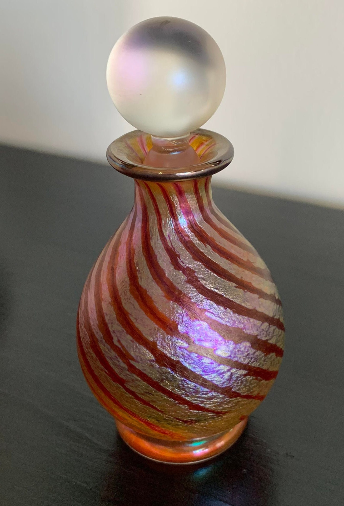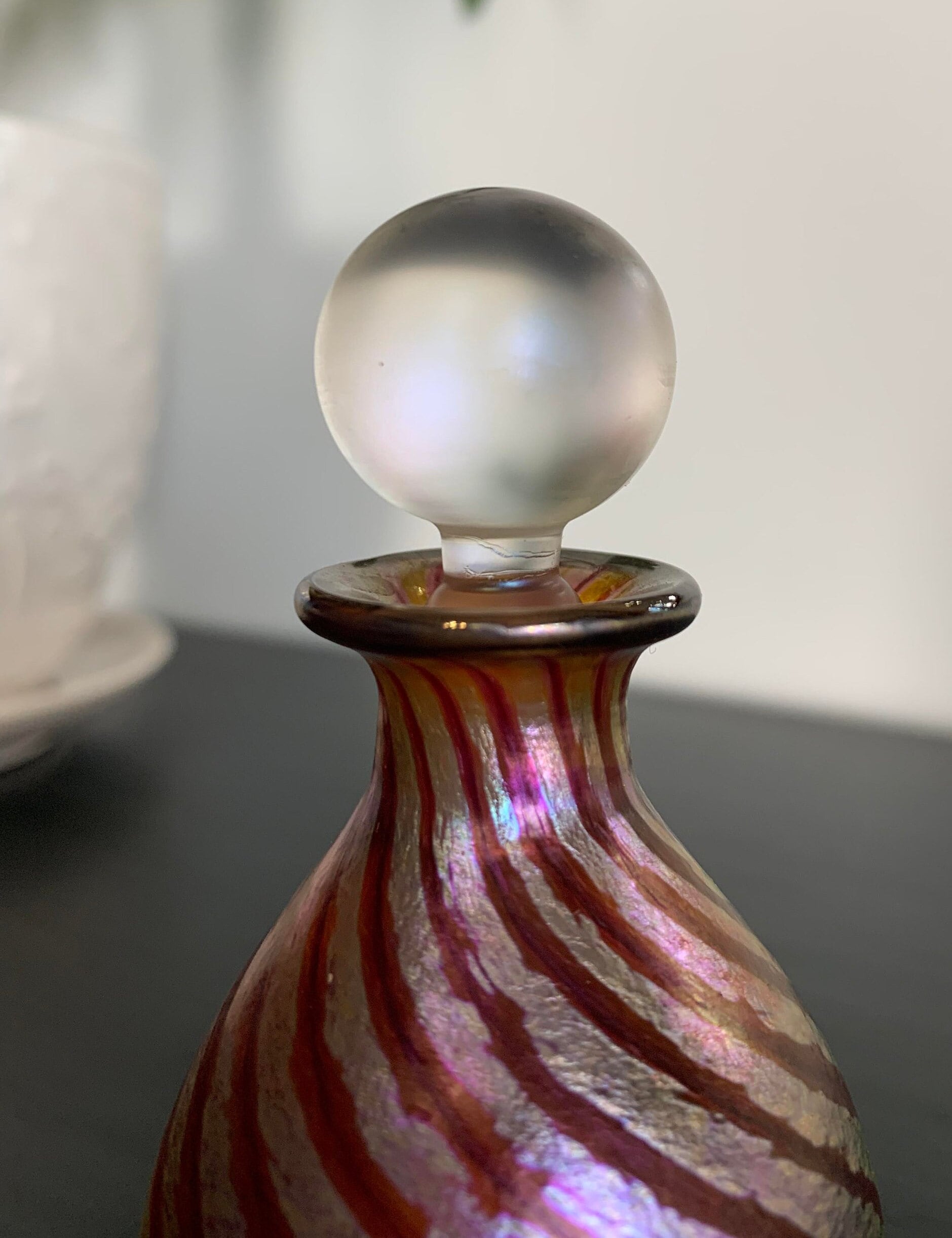 Isle Of Wight Glass Bottle Studio Glass Perfume Bottle in a Pink Iridescent Twist Motif - Original Label