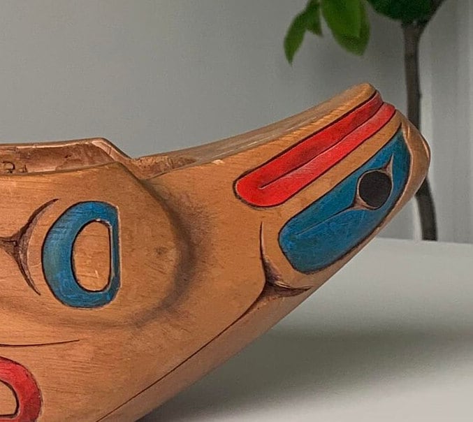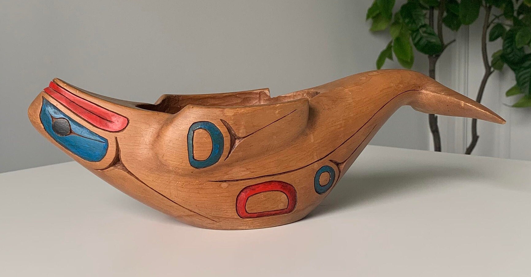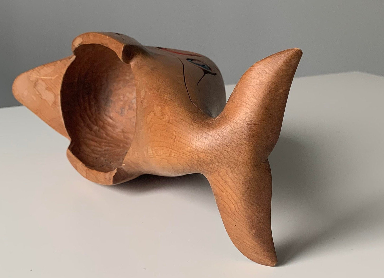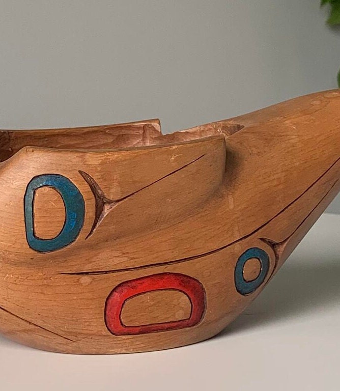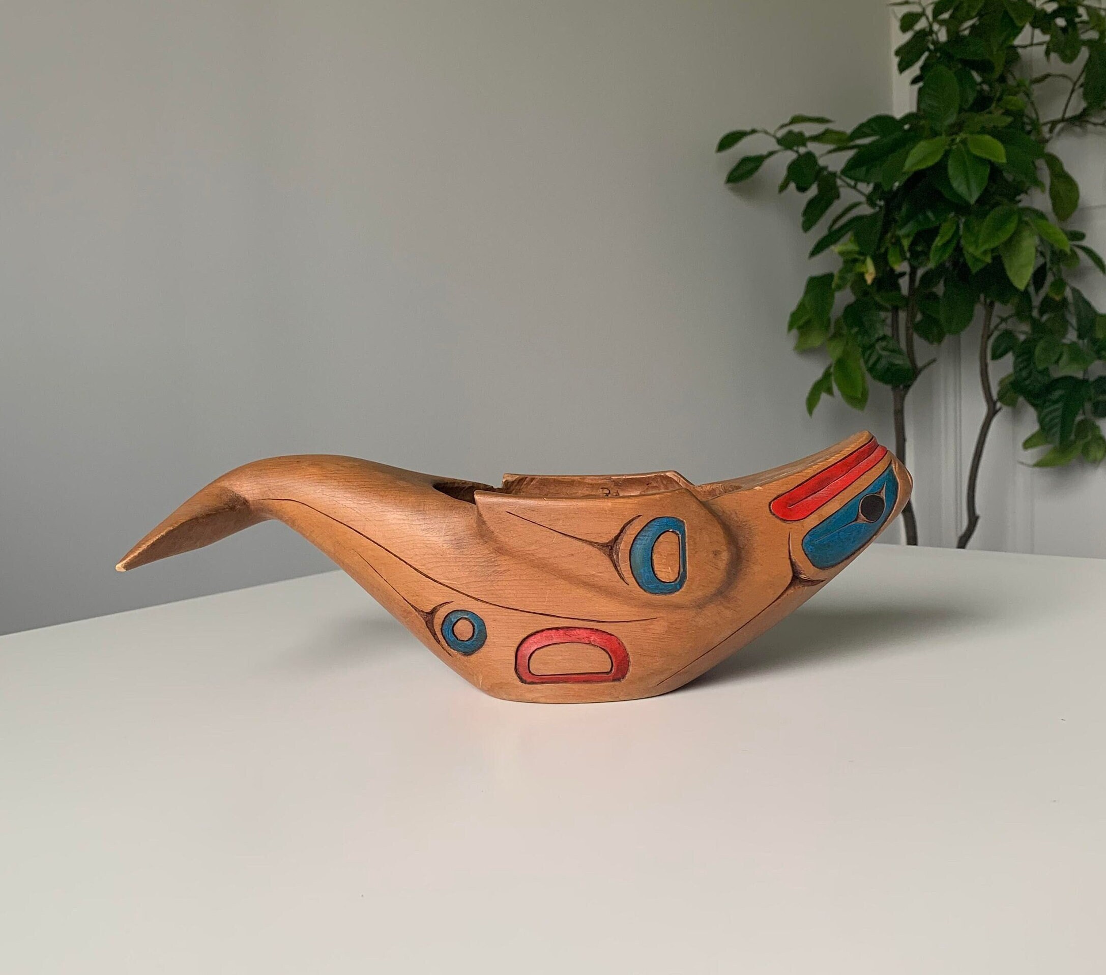 Vintage Canadian Western Indigenous Cedar Whale Cup Artist Signed