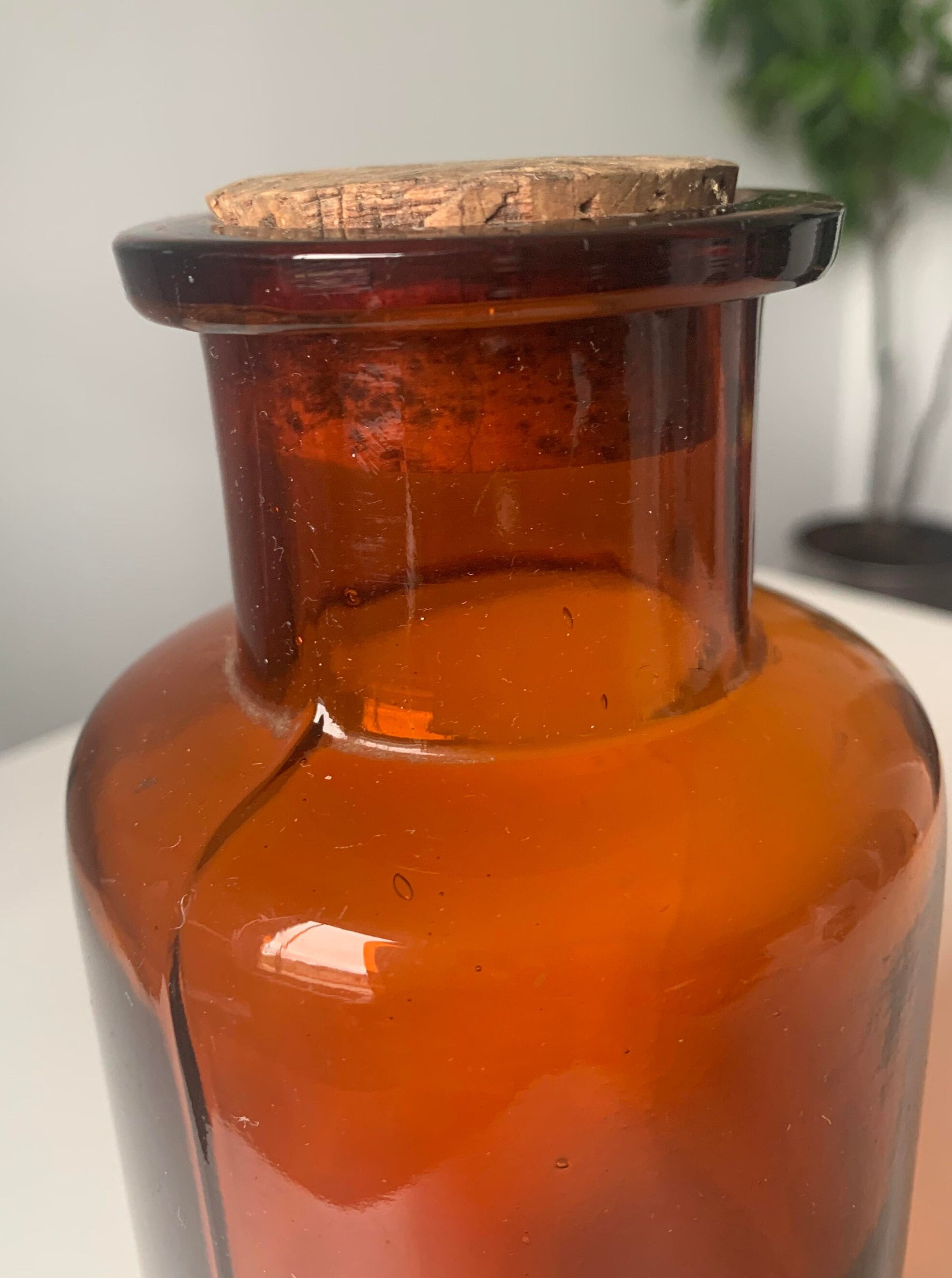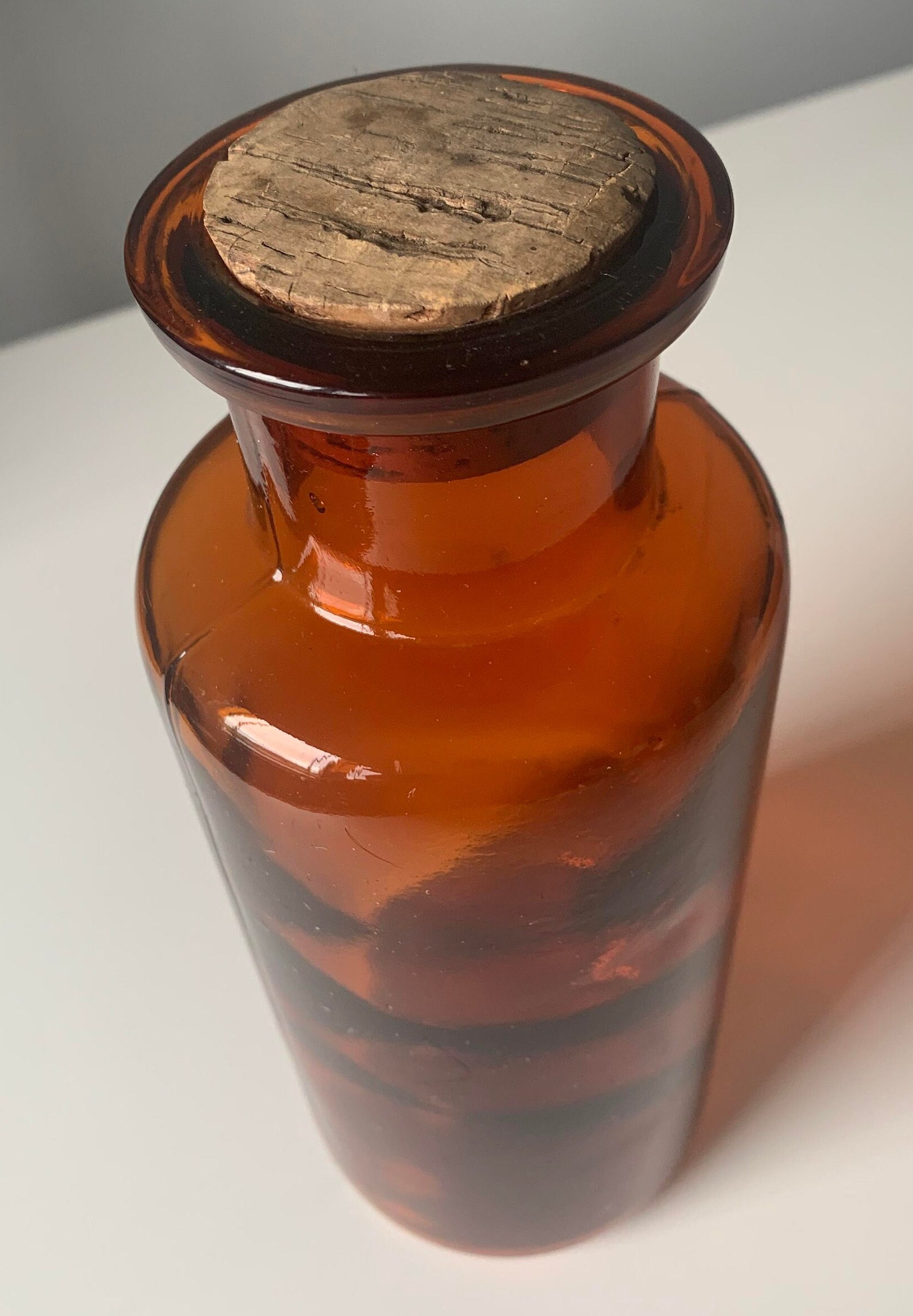 Amber Colored Apothecary Druggist Medical Bottle with Cork