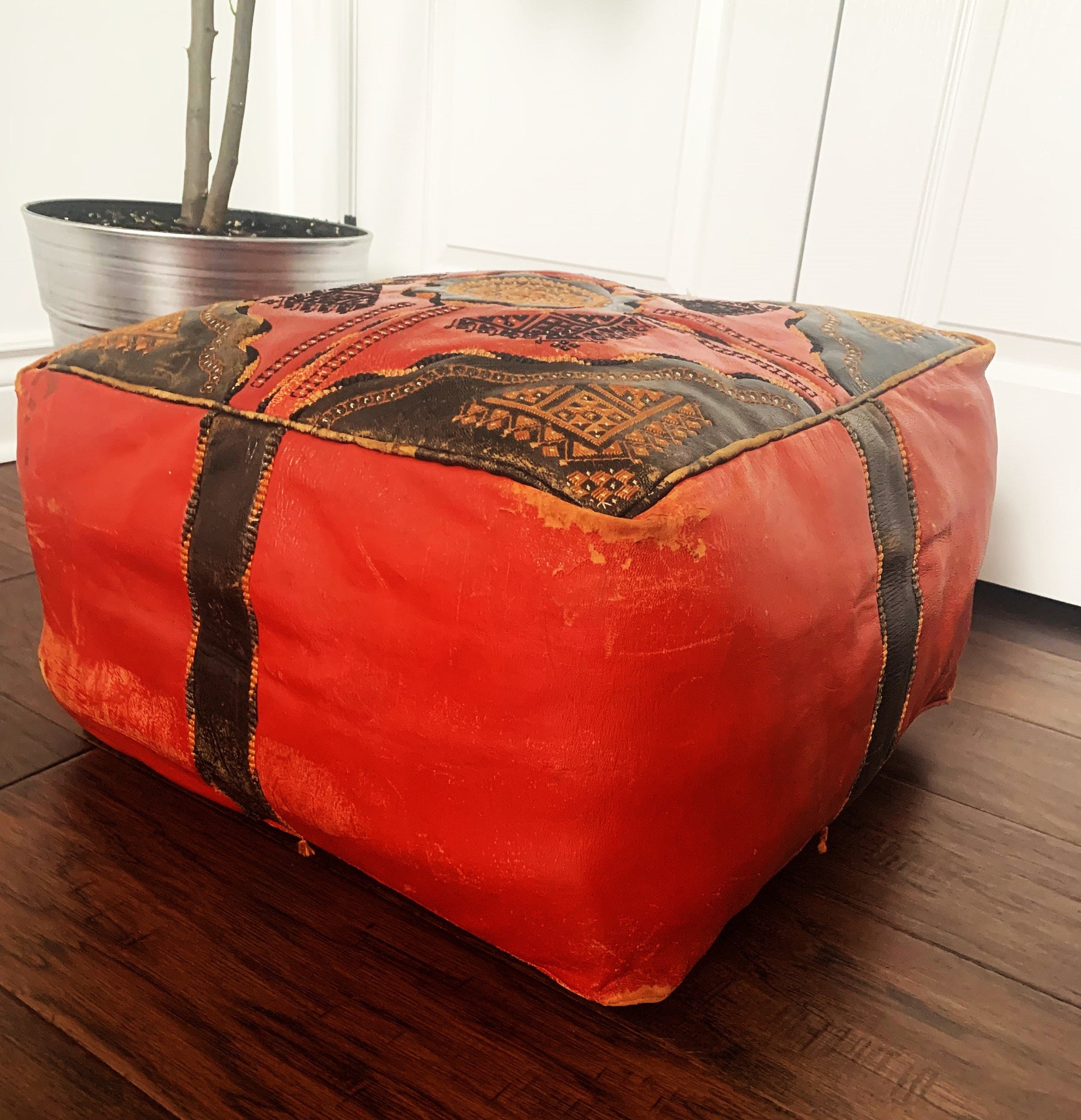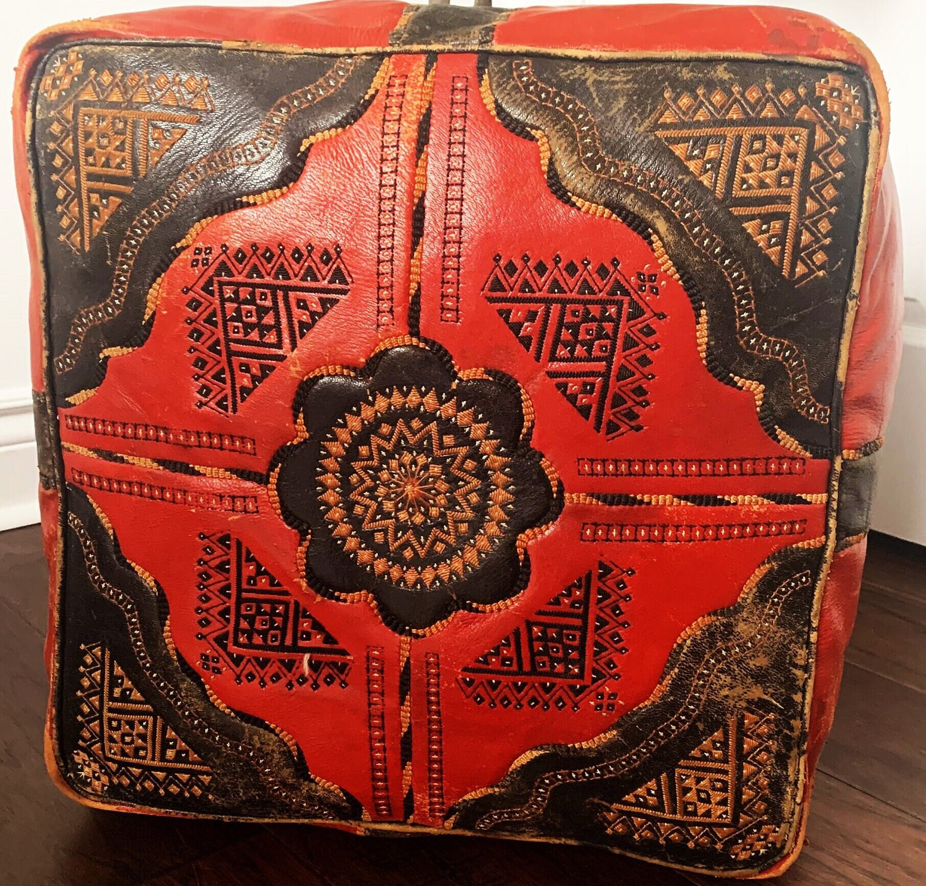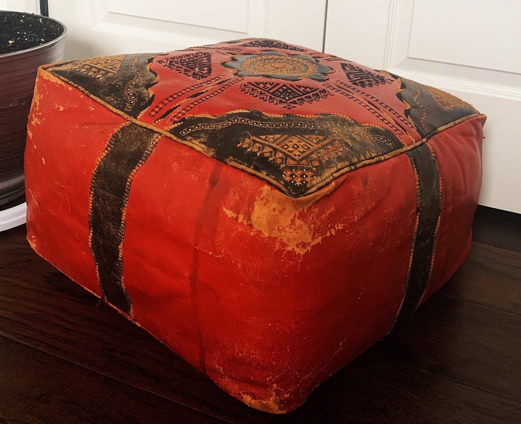 Vintage Moroccan Leather Hassock Poufs Footstool