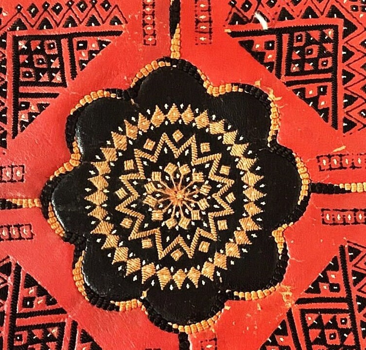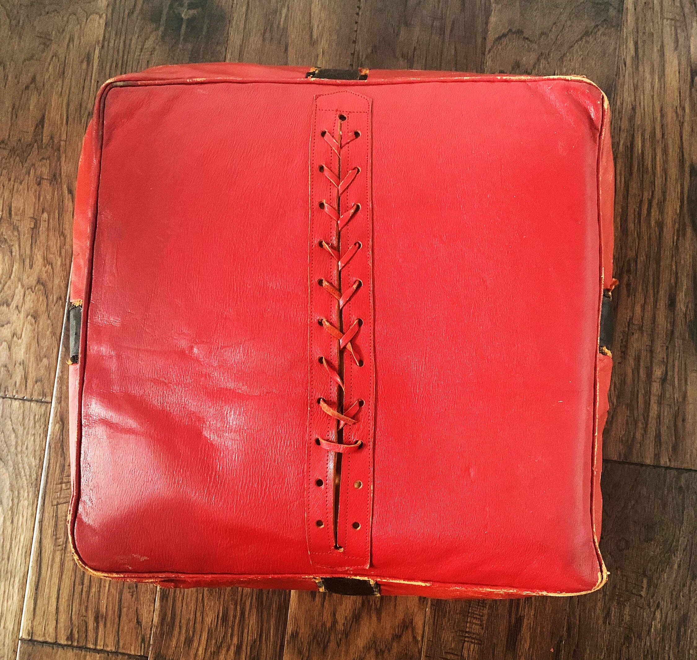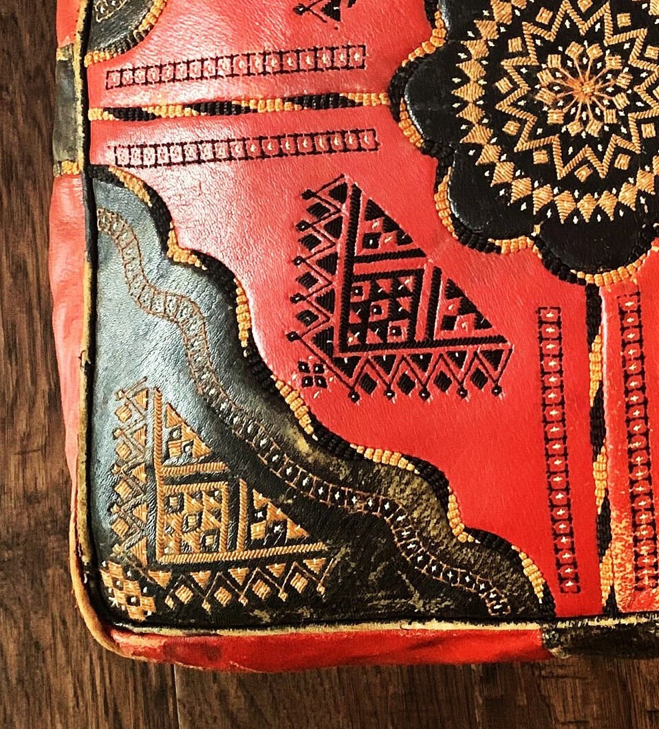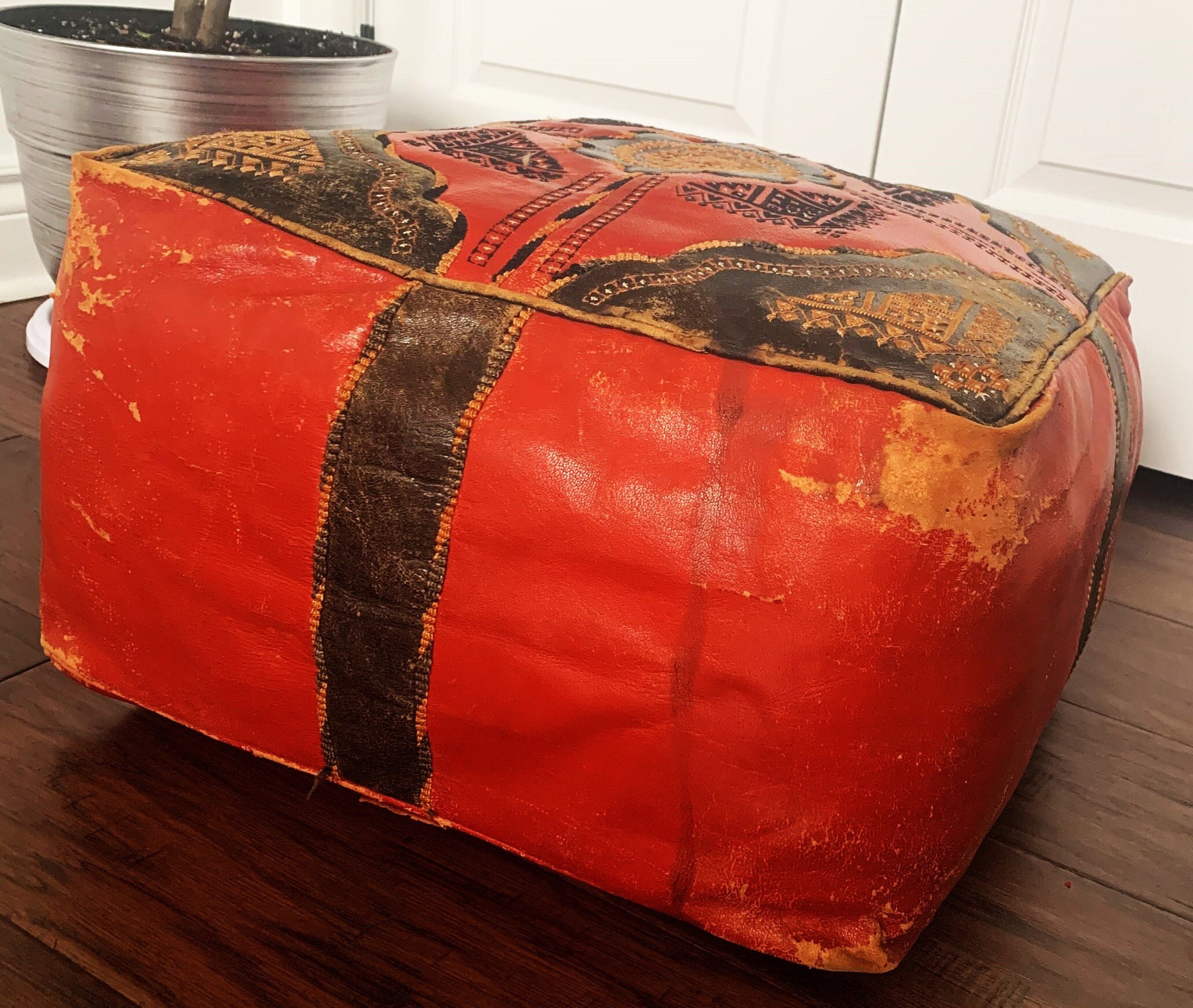 Vintage Moroccan Leather Hassock Poufs Footstool