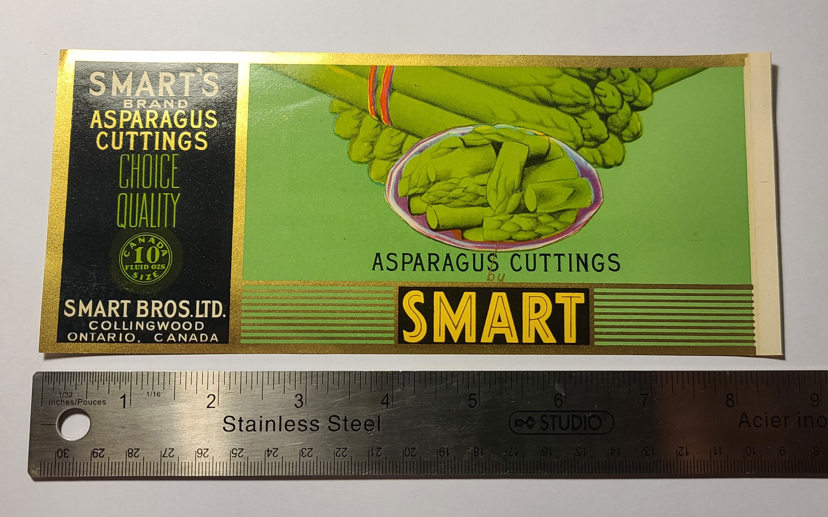New Old Stock - 1960s Smart's Canned Food Label - Smart Bros. Ltd. Collingwood, Ontario, Canada - Asparagus Cuttings
