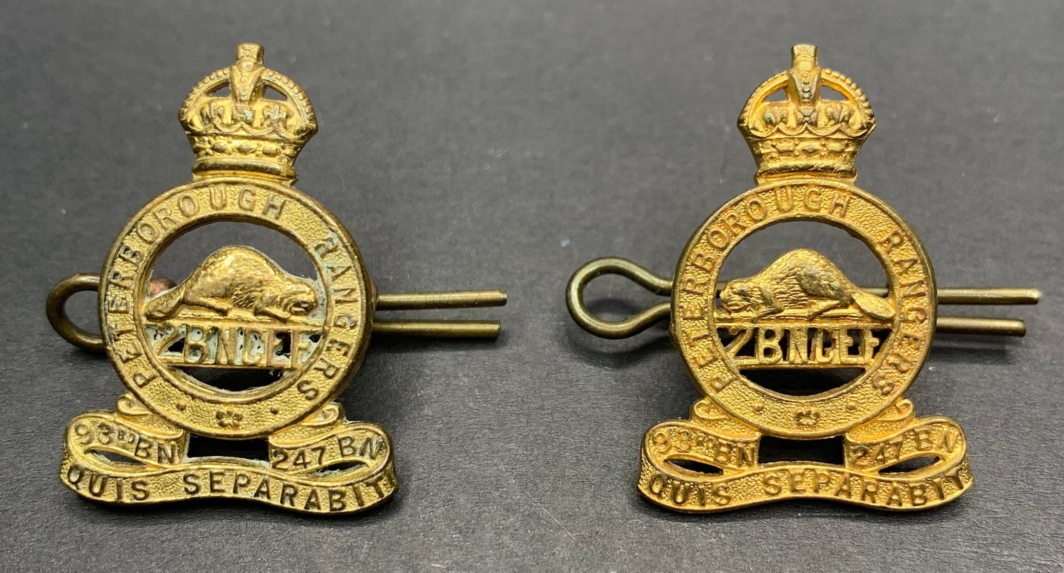 Peterborough Rangers 2nd Battalion Canadian Expeditionary Force Collar Dogs Badges