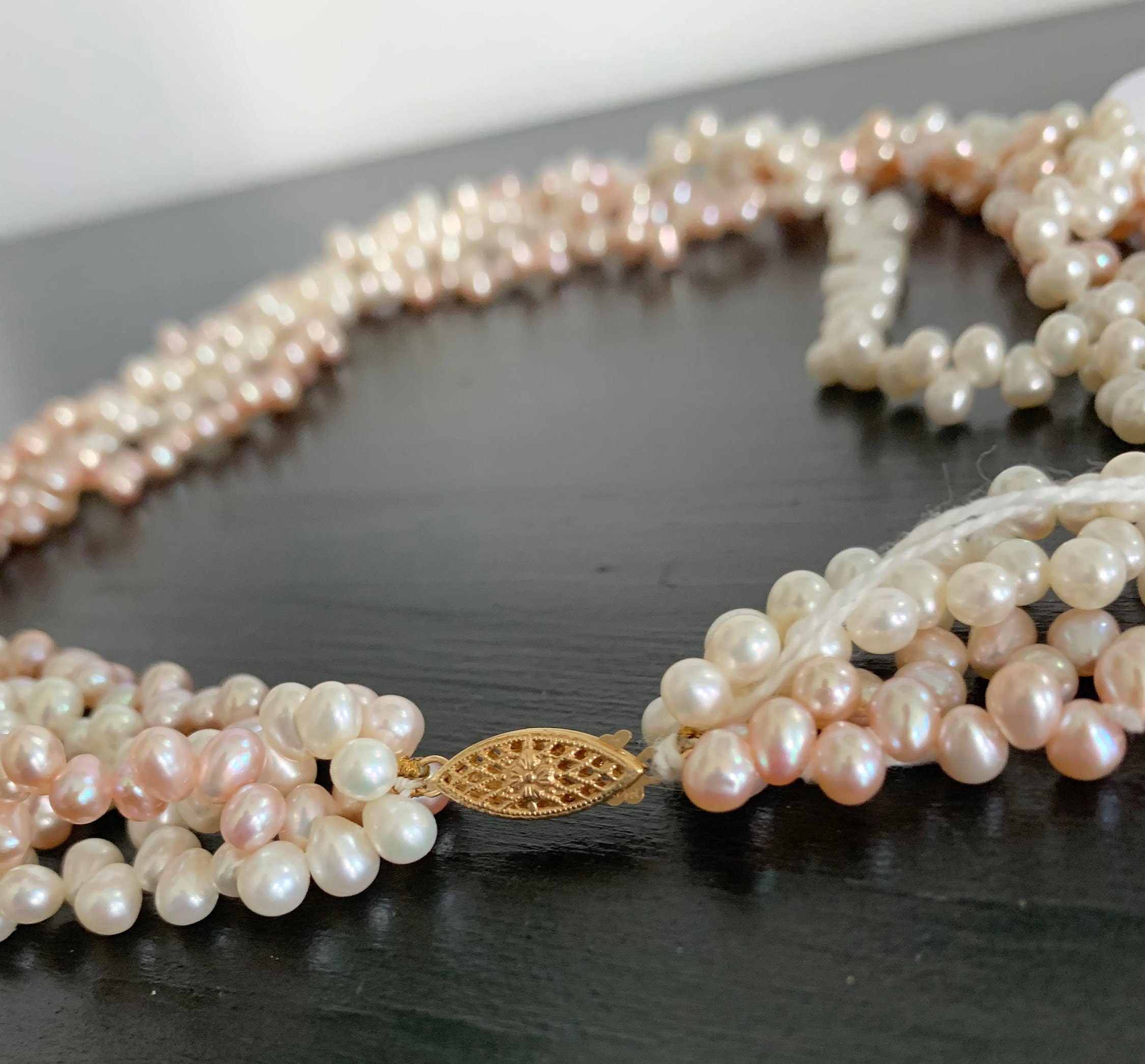 Four Strand Seed Pearls with 14k Yellow Gold Clasp