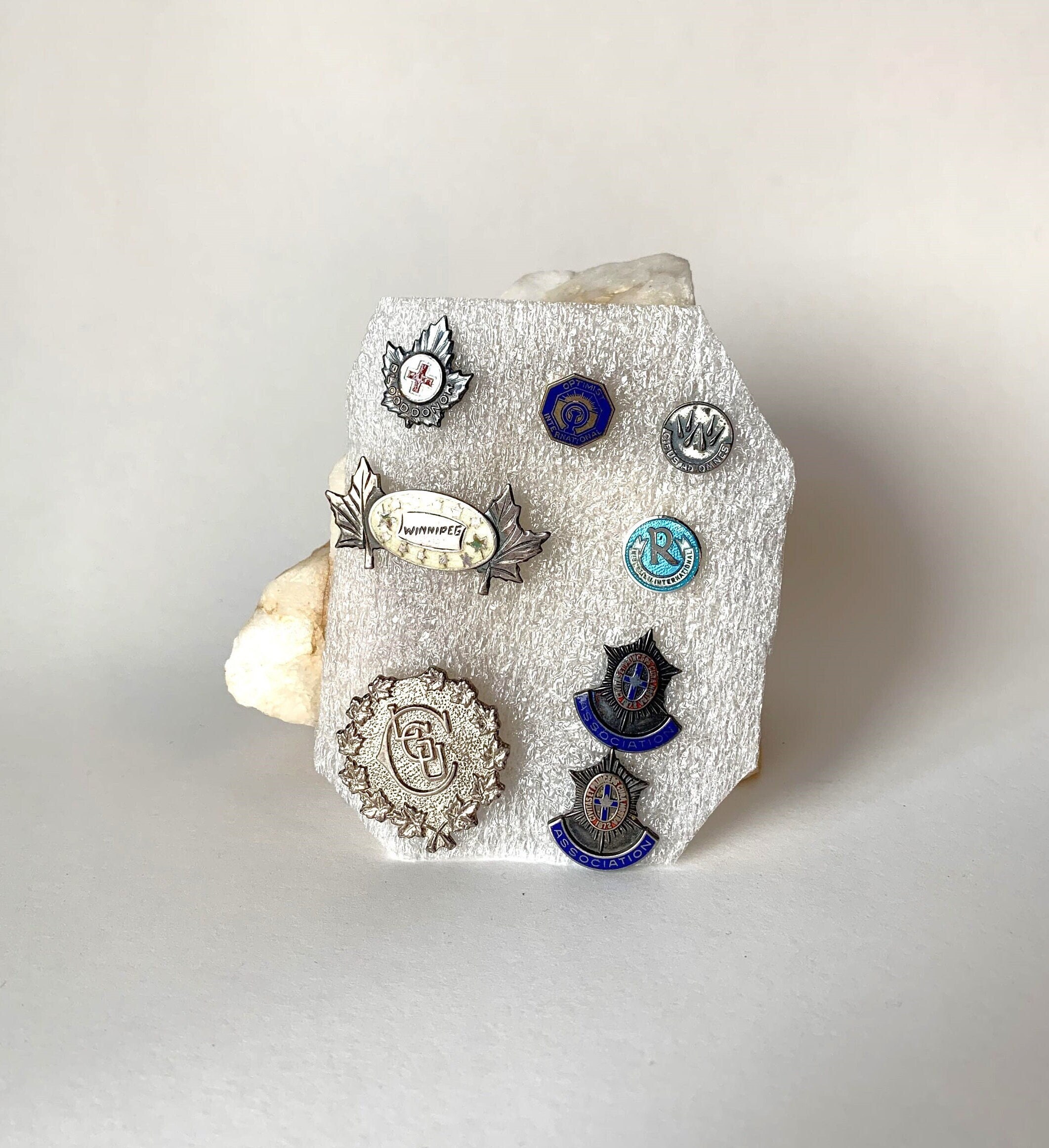 Lot of 8 Sterling Silver Pins - Blood Donor - Optimist Club - Richelieu Club - Canadian Guards - Etc...