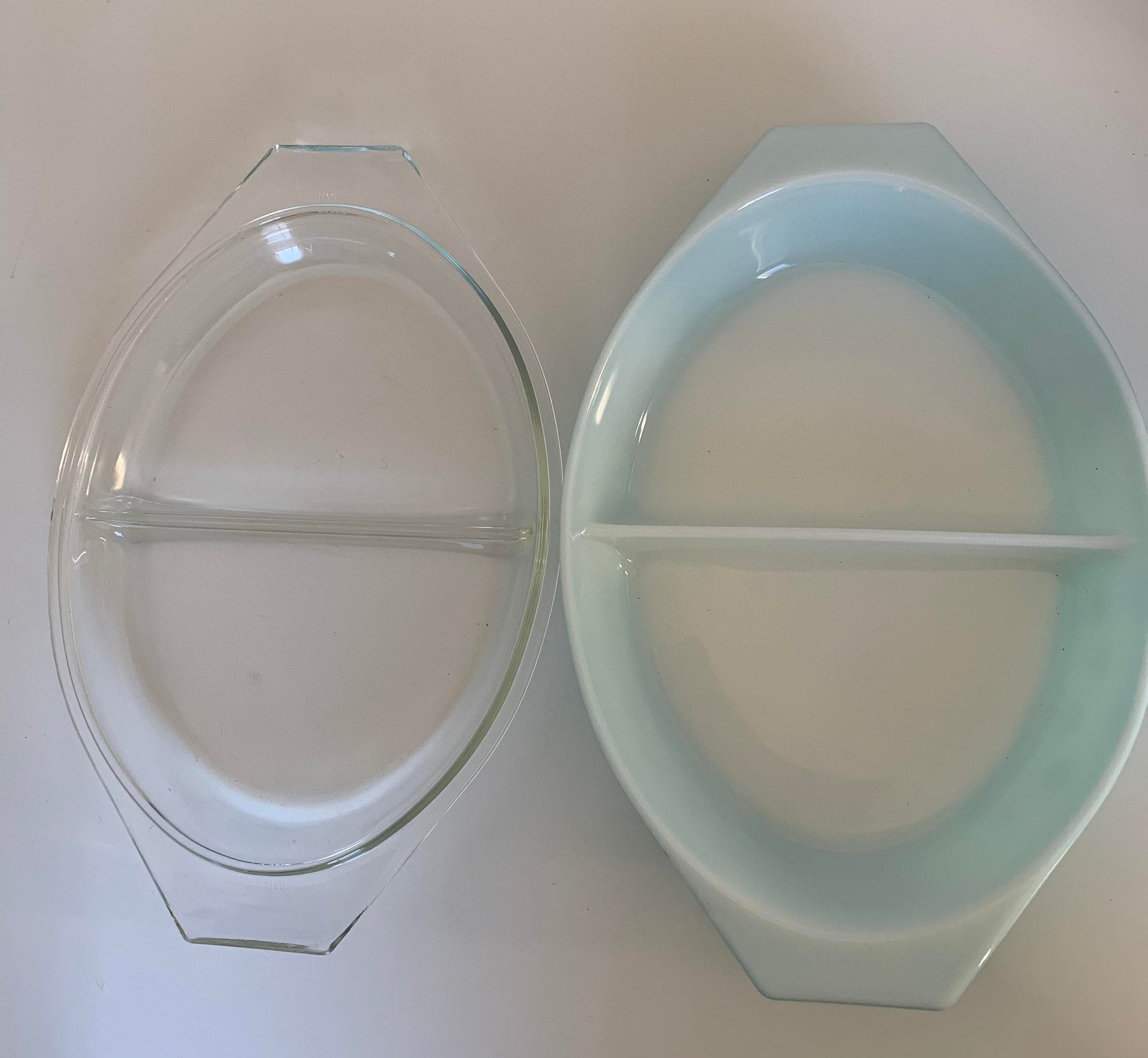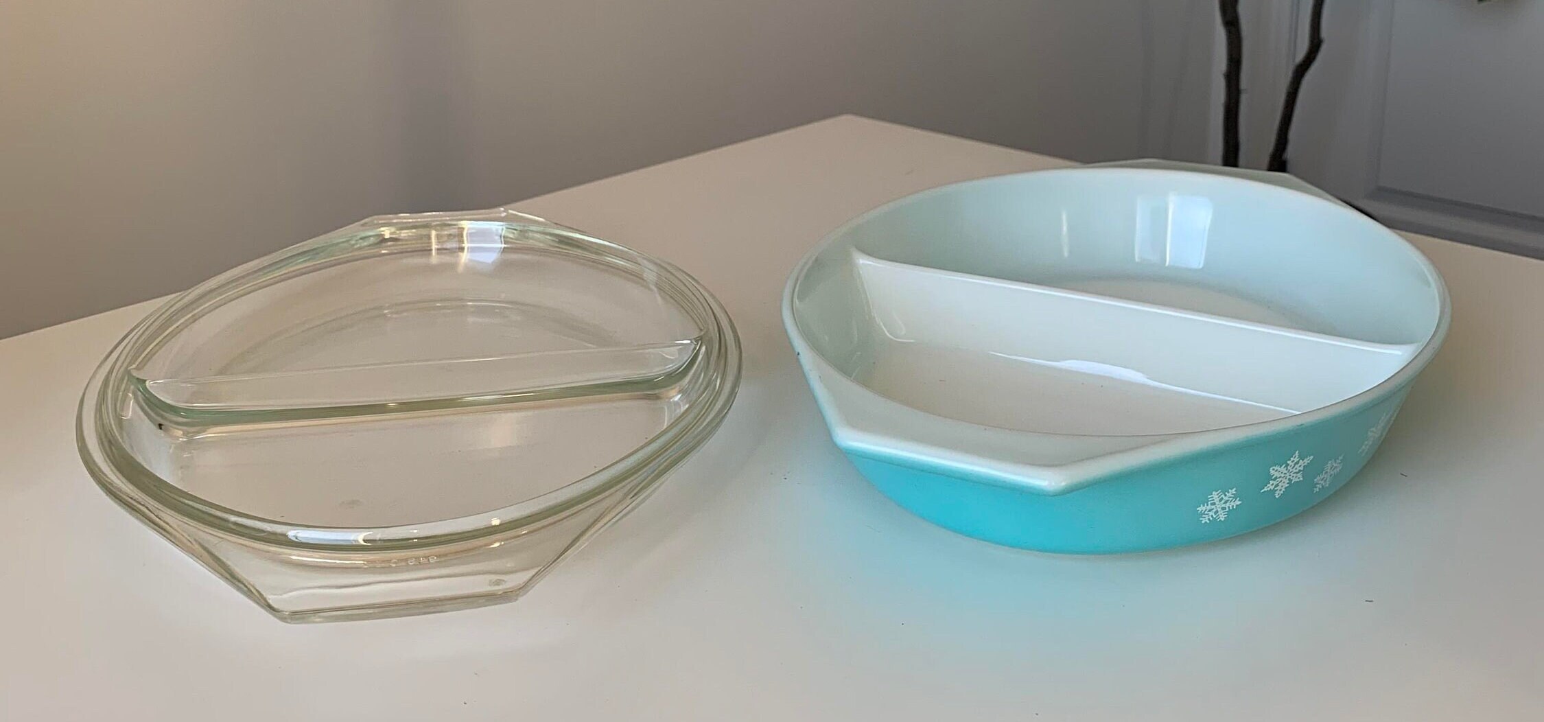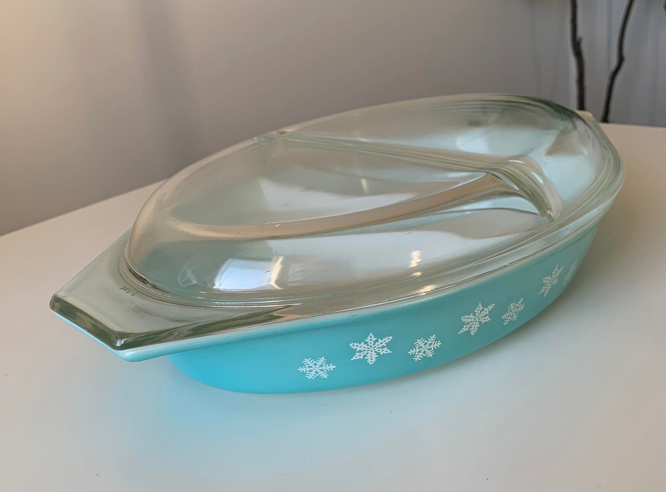 Pyrex Snowflake Pattern Divided Dish with Lid