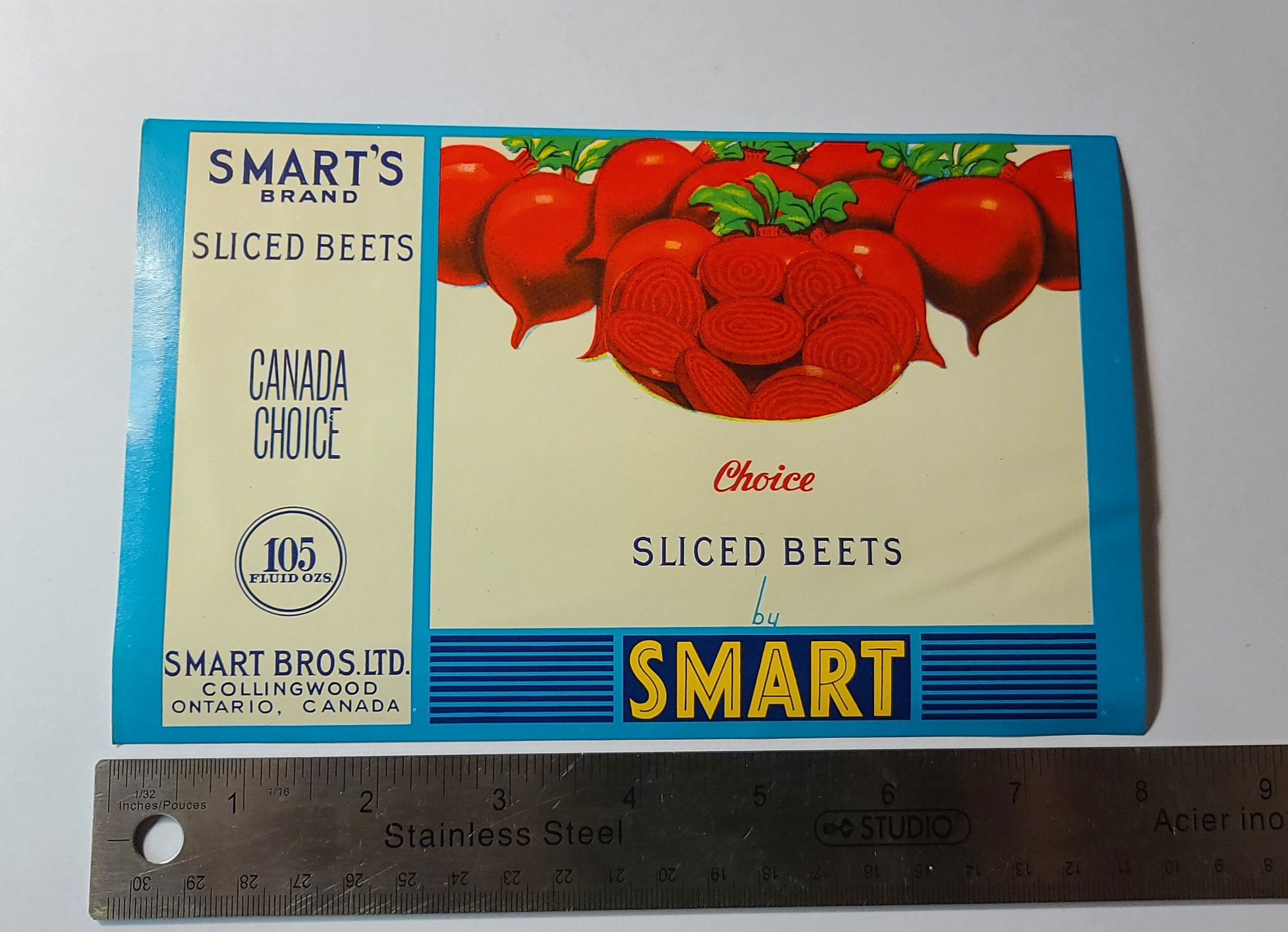New Old Stock - 1960s Smart's Canned Food Label - Smart Bros. Ltd. Collingwood, Ontario, Canada - Choice Sliced Beets
