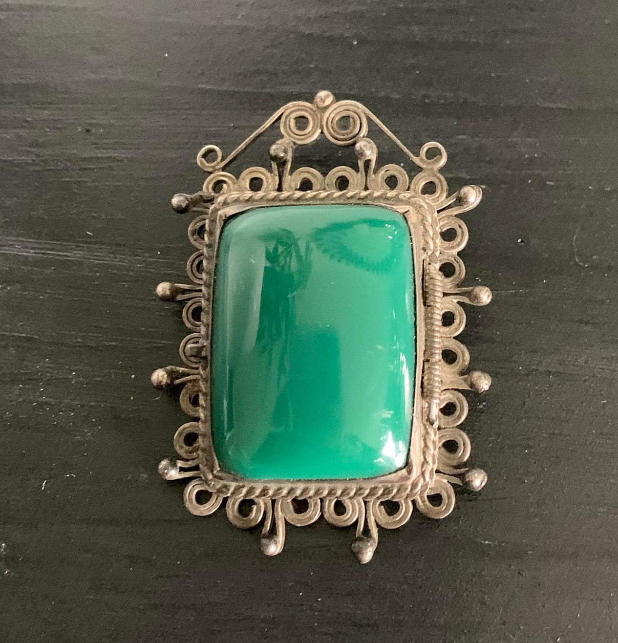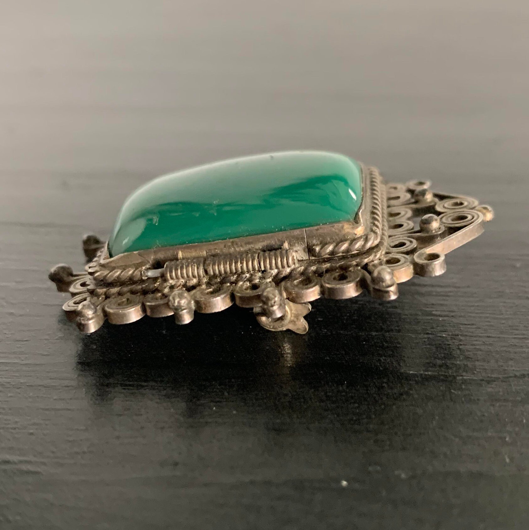 Sterling Silver 925 Brooch and Earring Set with Green Stones