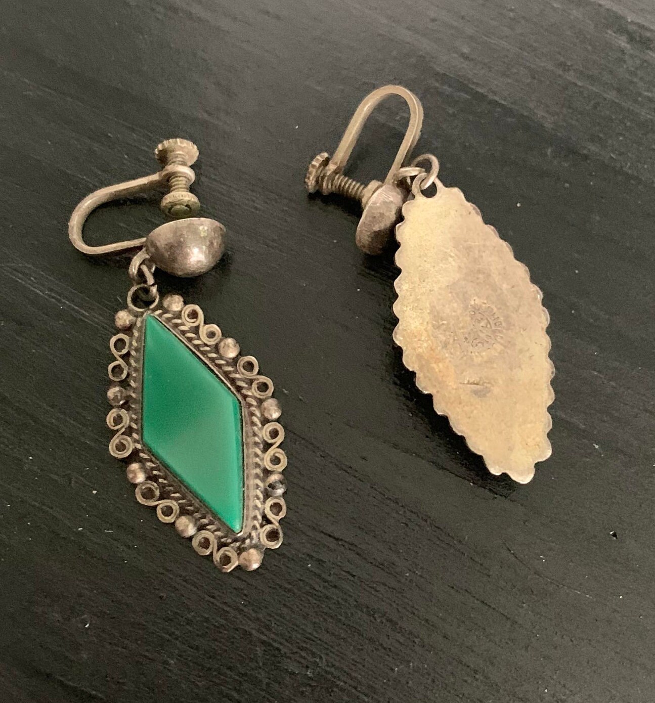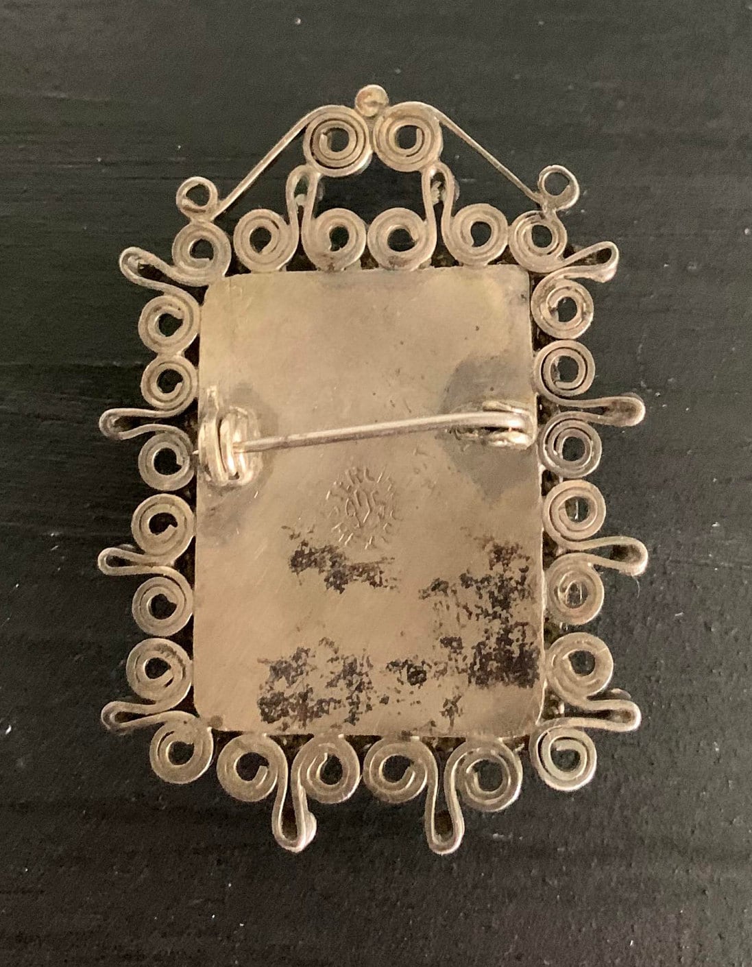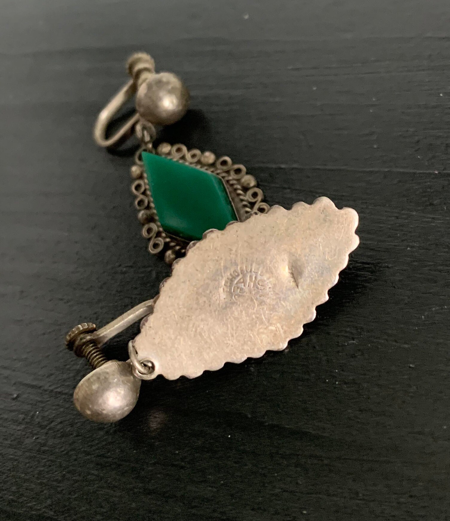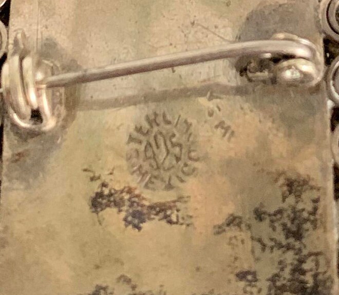 Item Measurements in Inches: brooch 2 x 1.5 earrings approx. 1" each