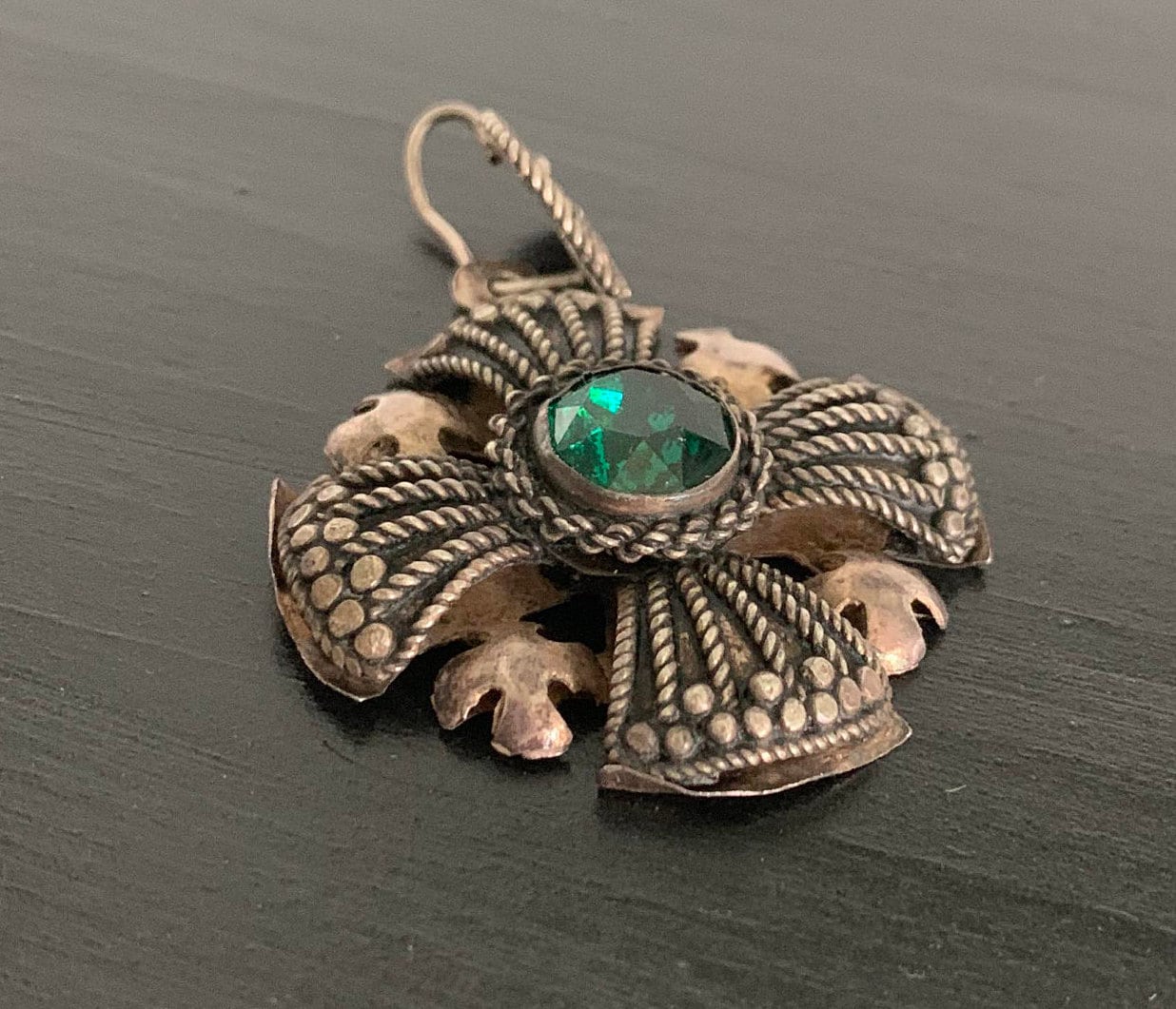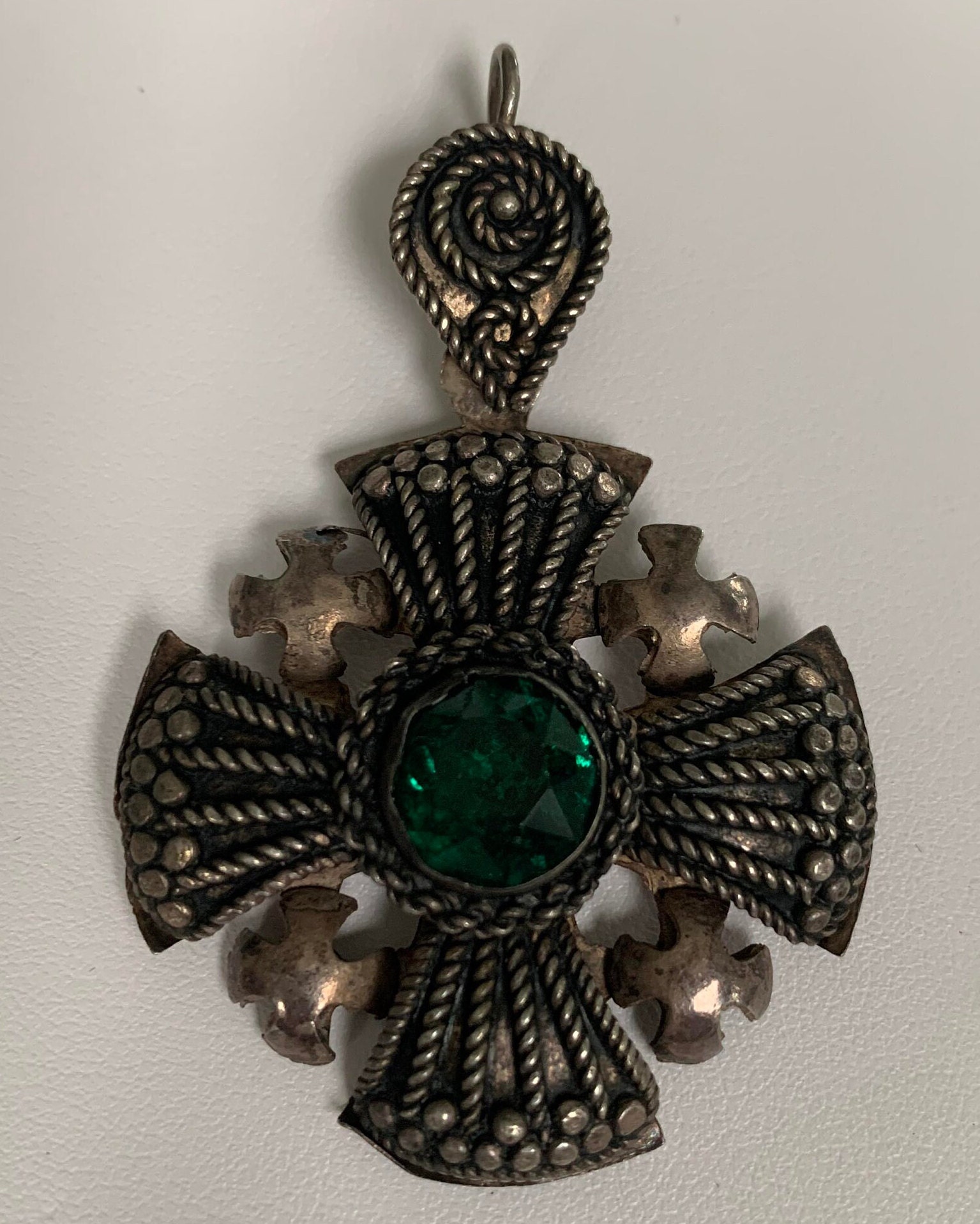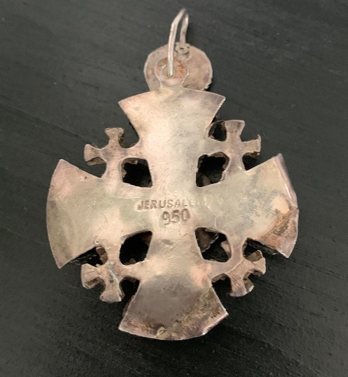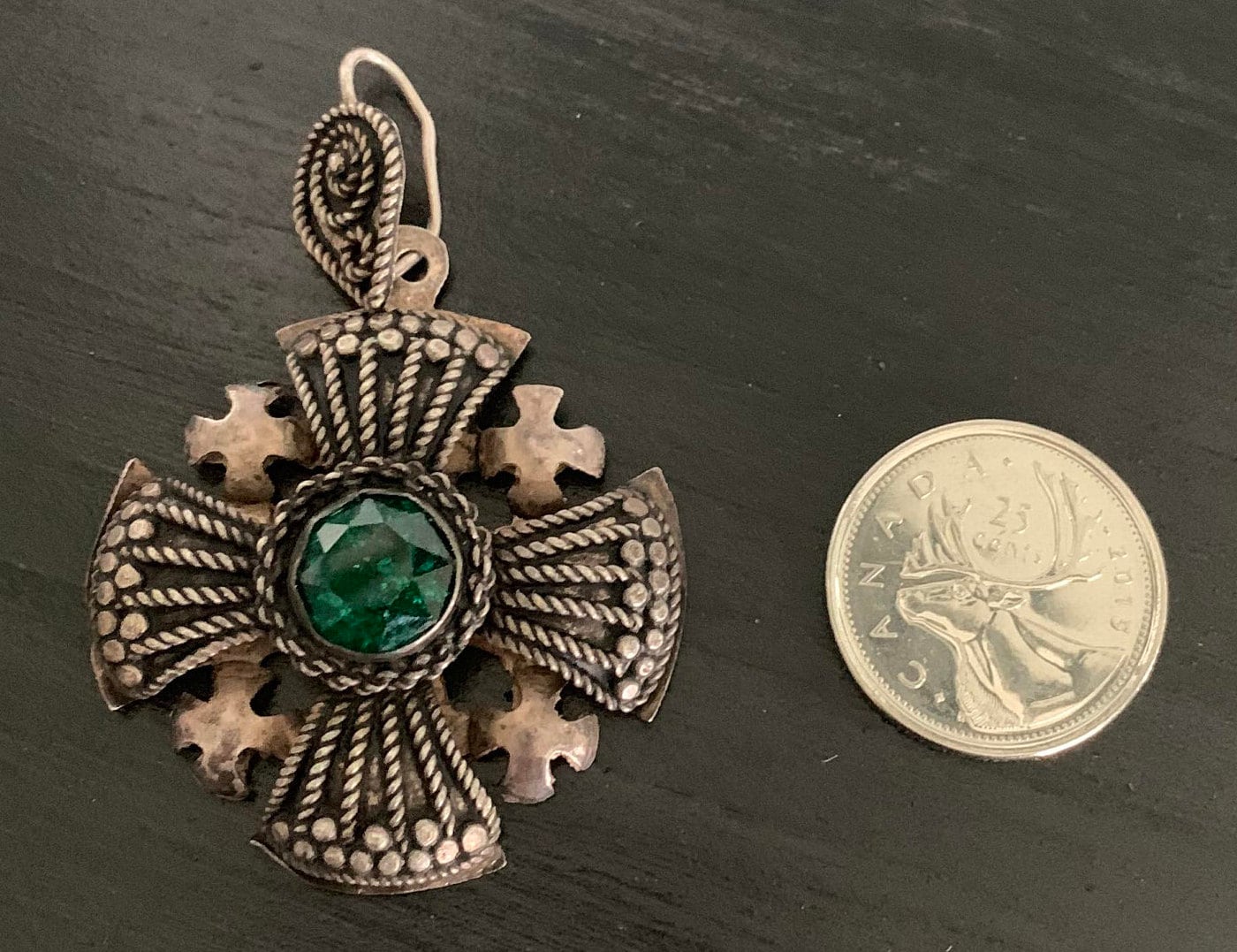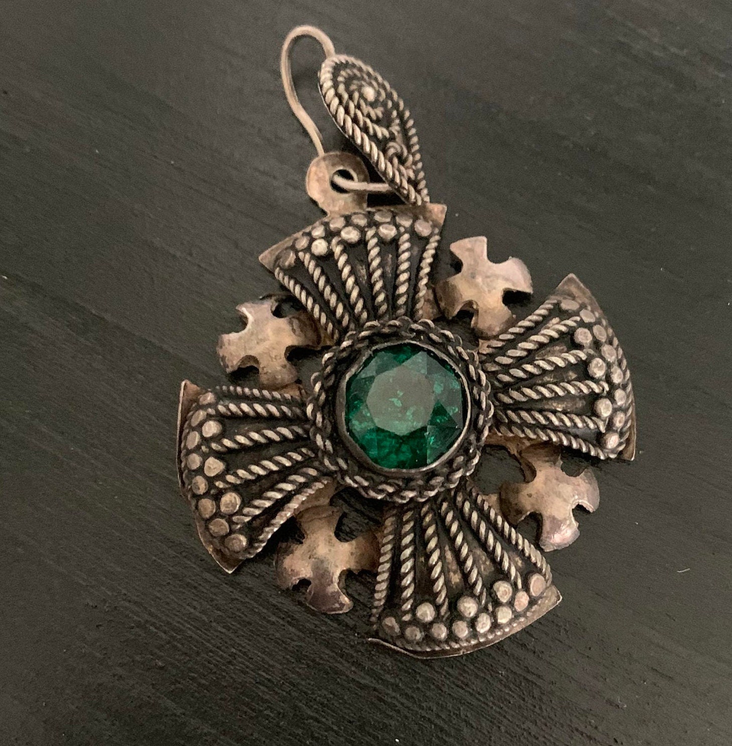 Large Sterling Silver 950 Jerusalem Pendant with Green Stone