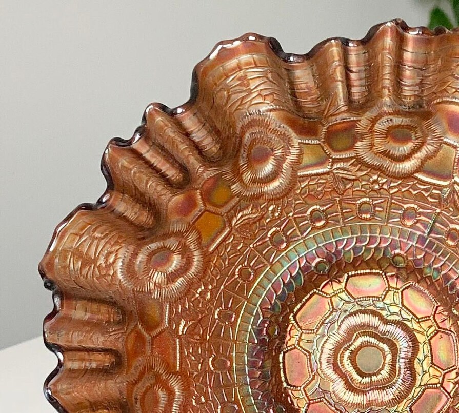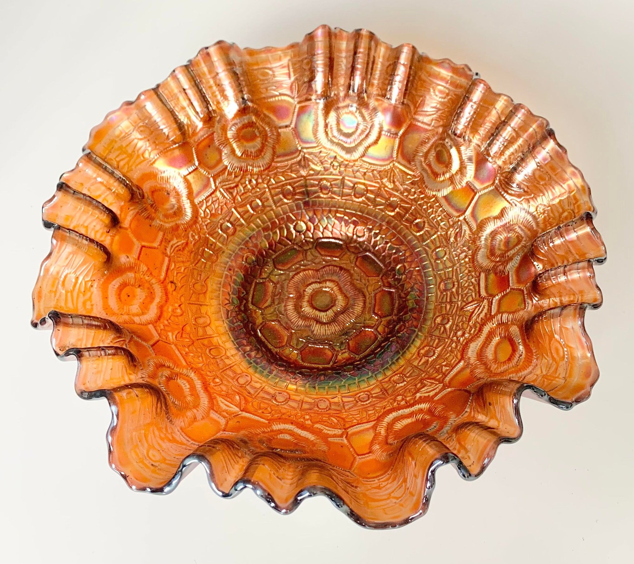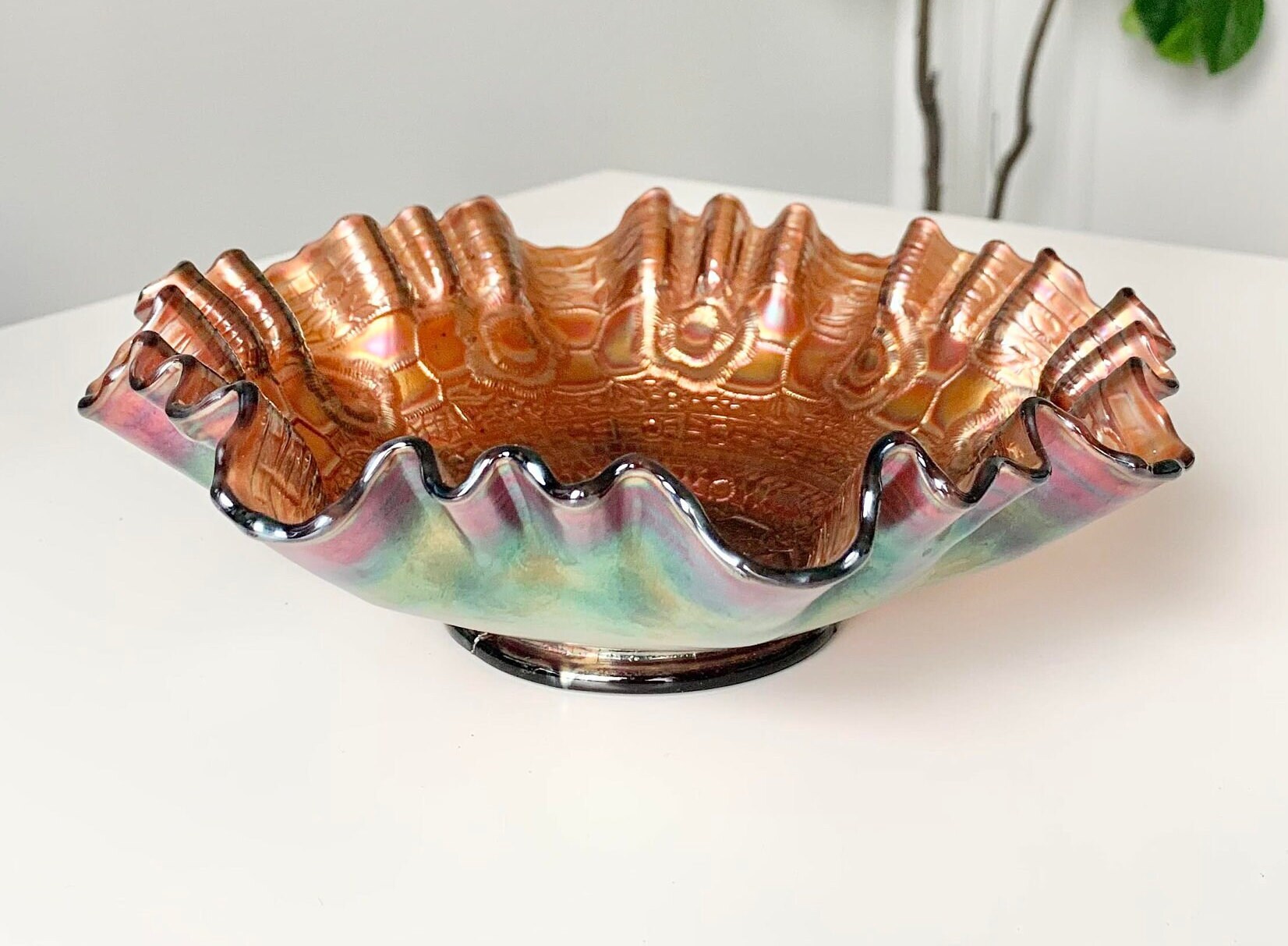 Fenton Carnival Glass Marigold 8 1/2” Crimped Fluted Edge Bowl Candy Dish