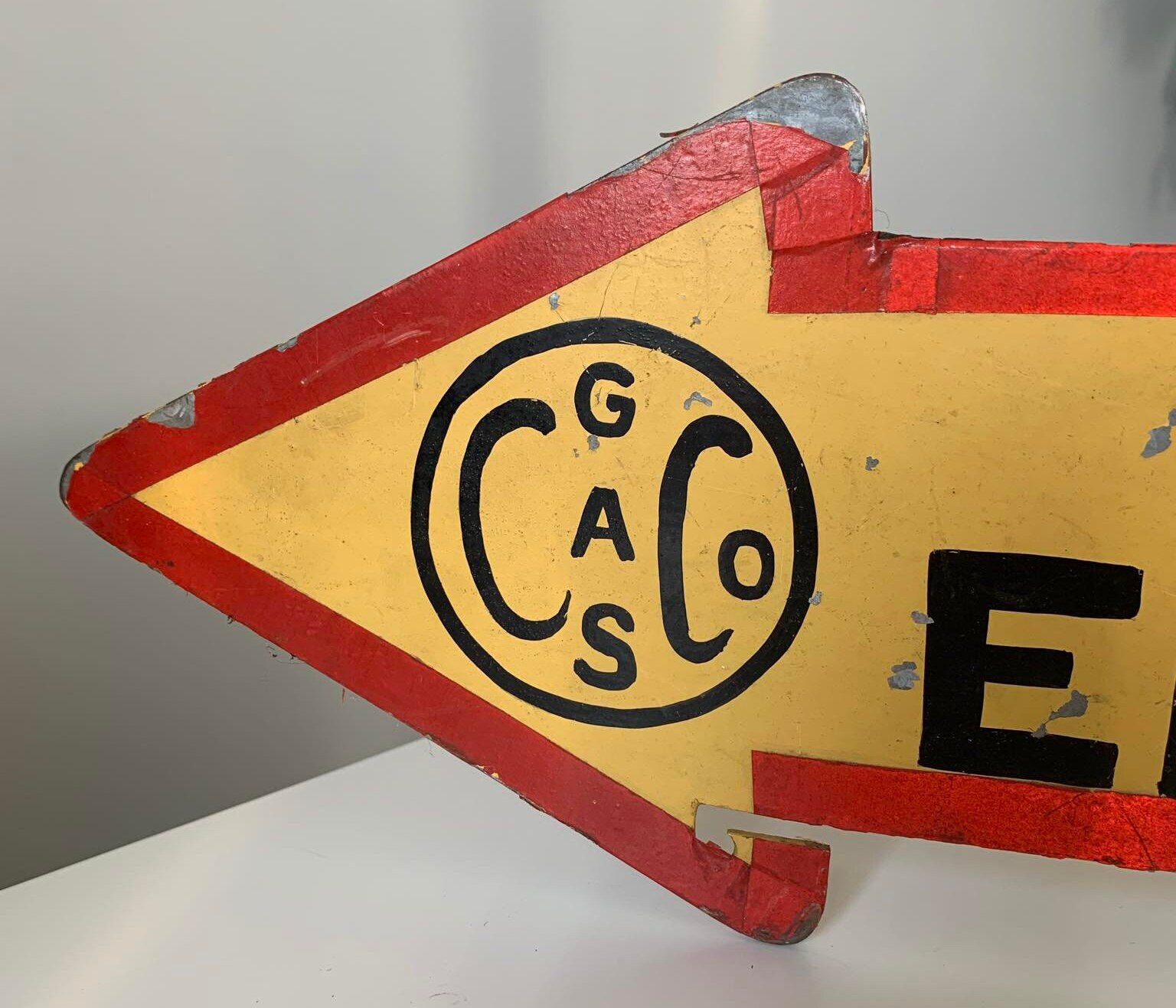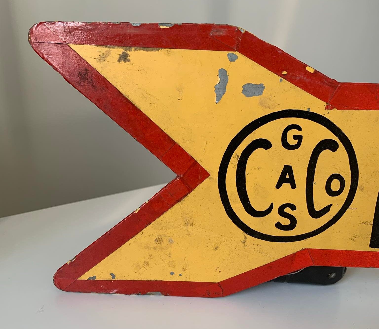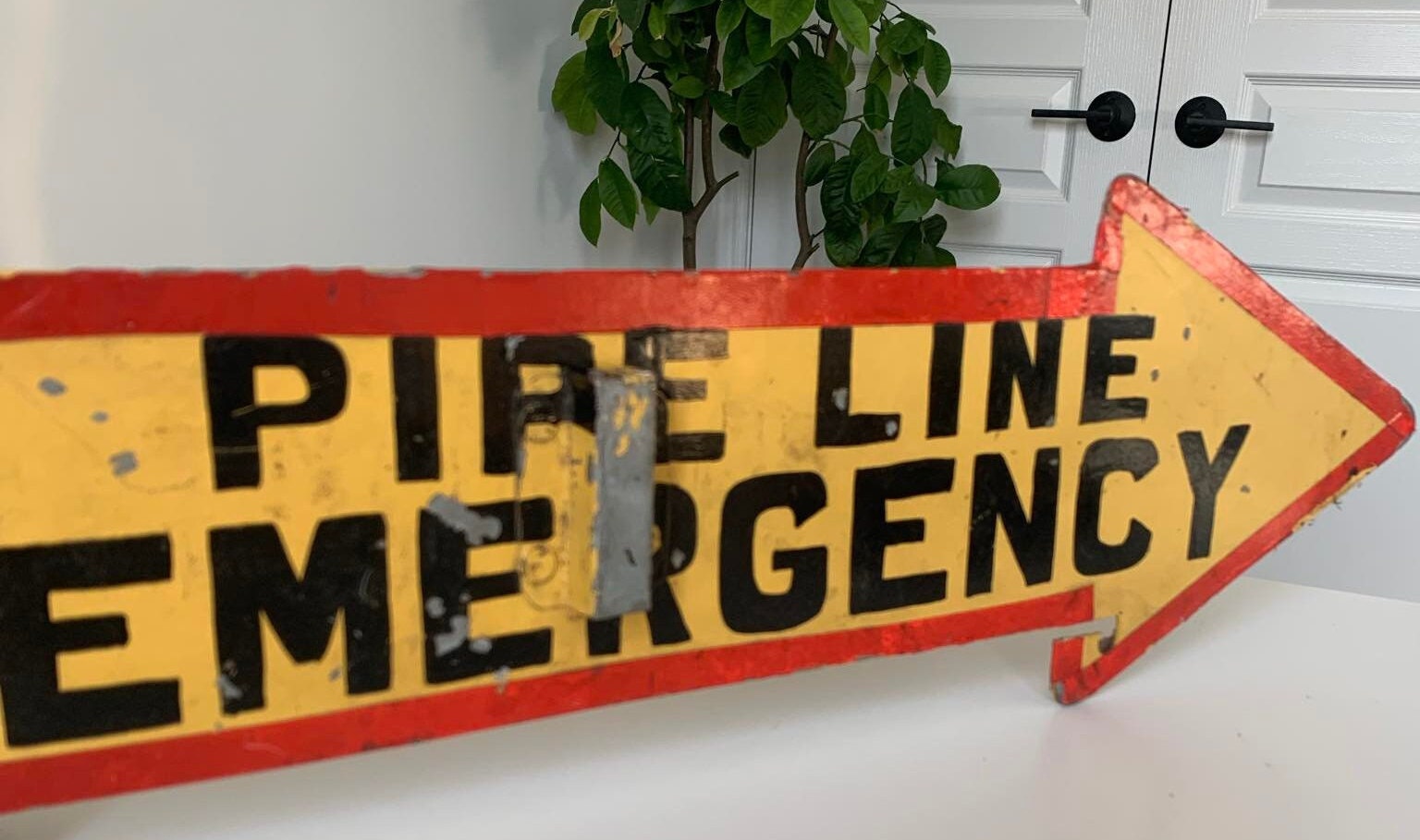 Vintage Double Sided Painted Gas Company Pipeline Emergency Metal Sign