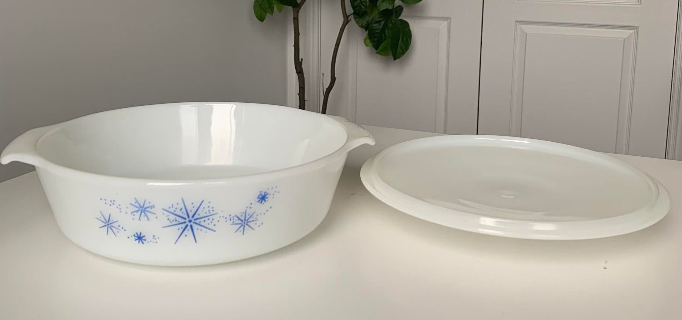 Fire King Turquoise Atomic Starburst Casserole Dish with Lid