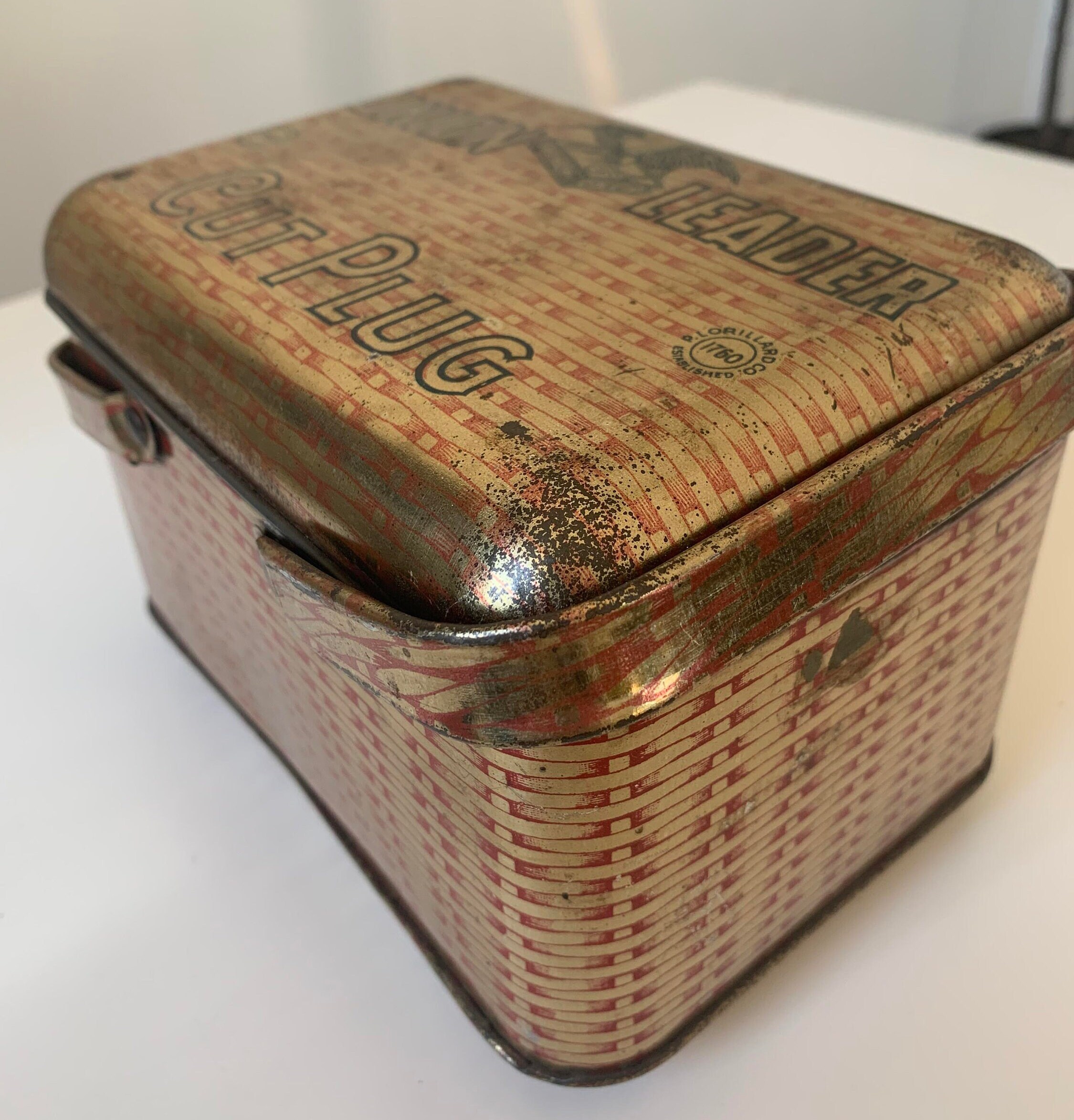 Union Leader Cut Plug Tobacco " Lunch box " Tin