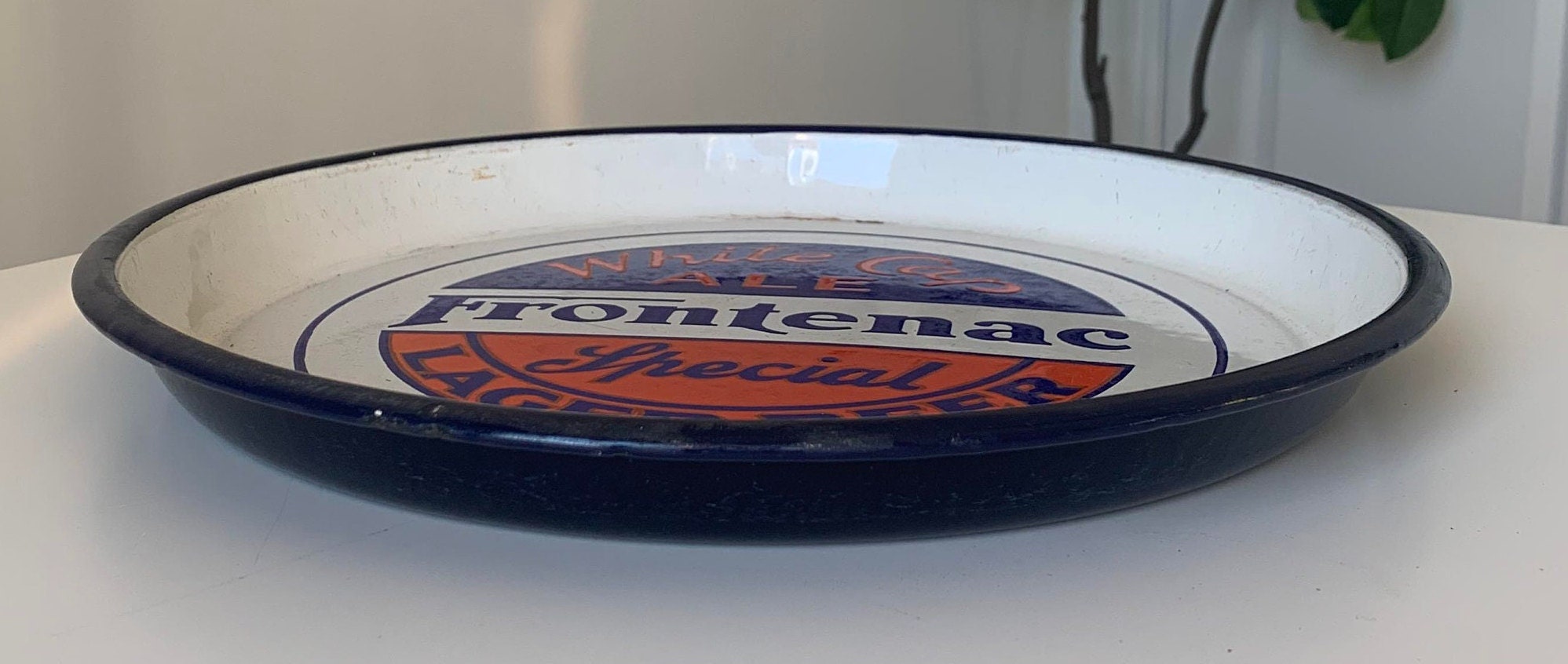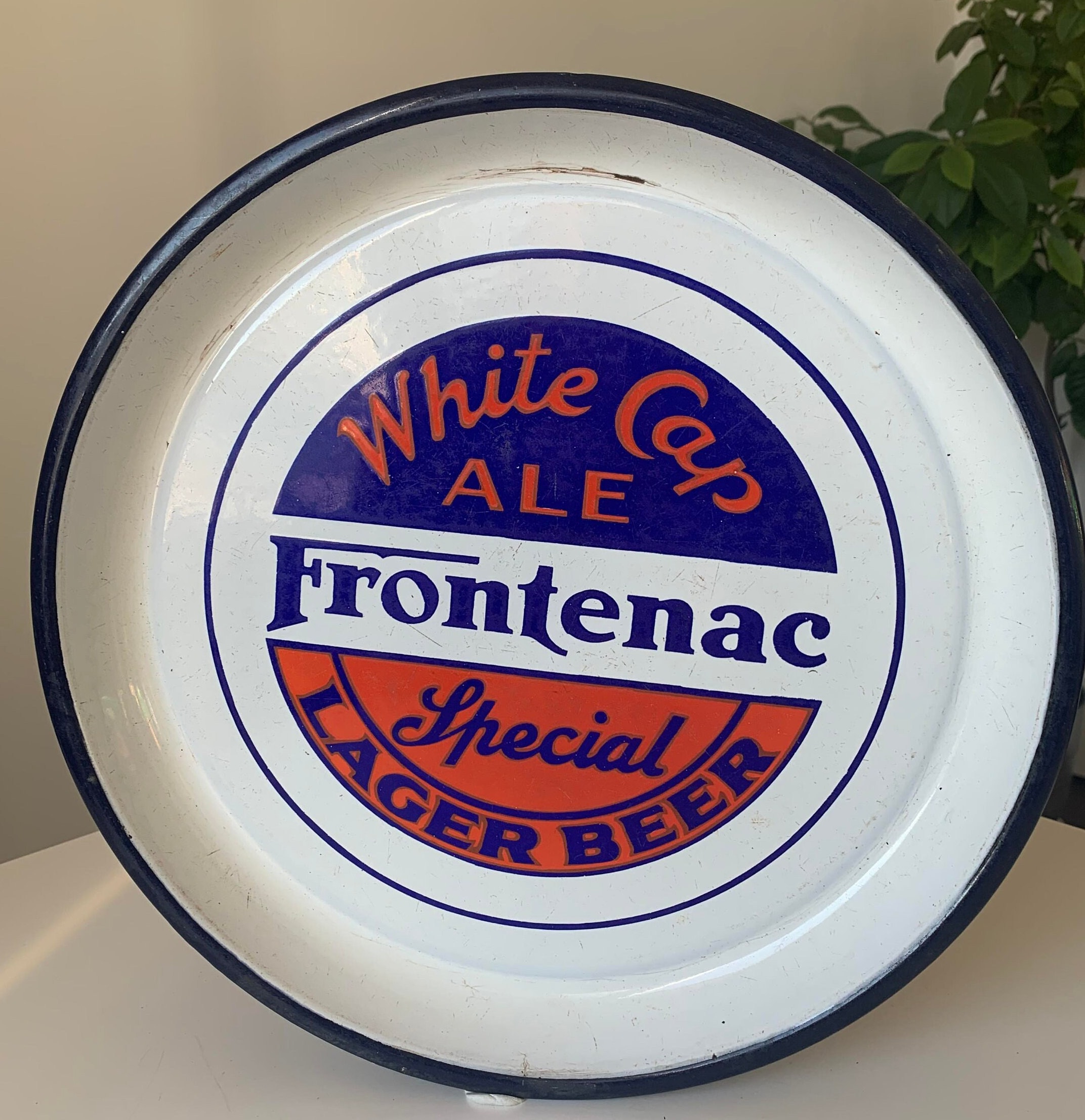 13" White Cap Ale Frontenac Special Lager Beer Tray Enamel 1930's