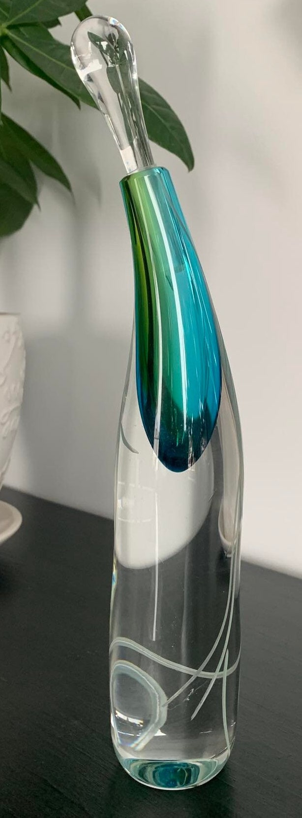 Hand Blown Art Glass Perfume Bottle - Signed by Artist