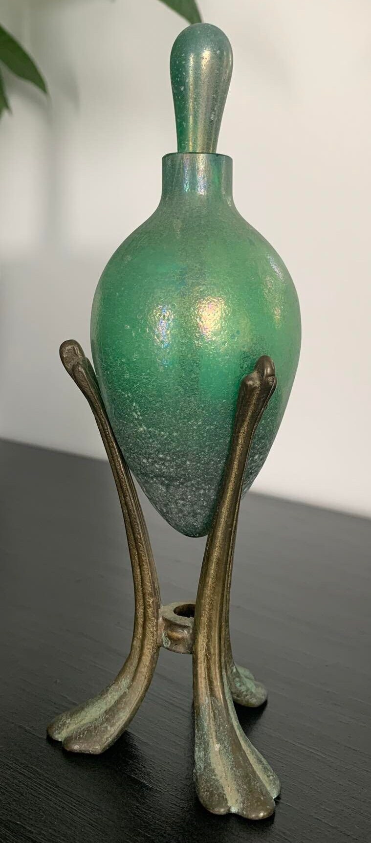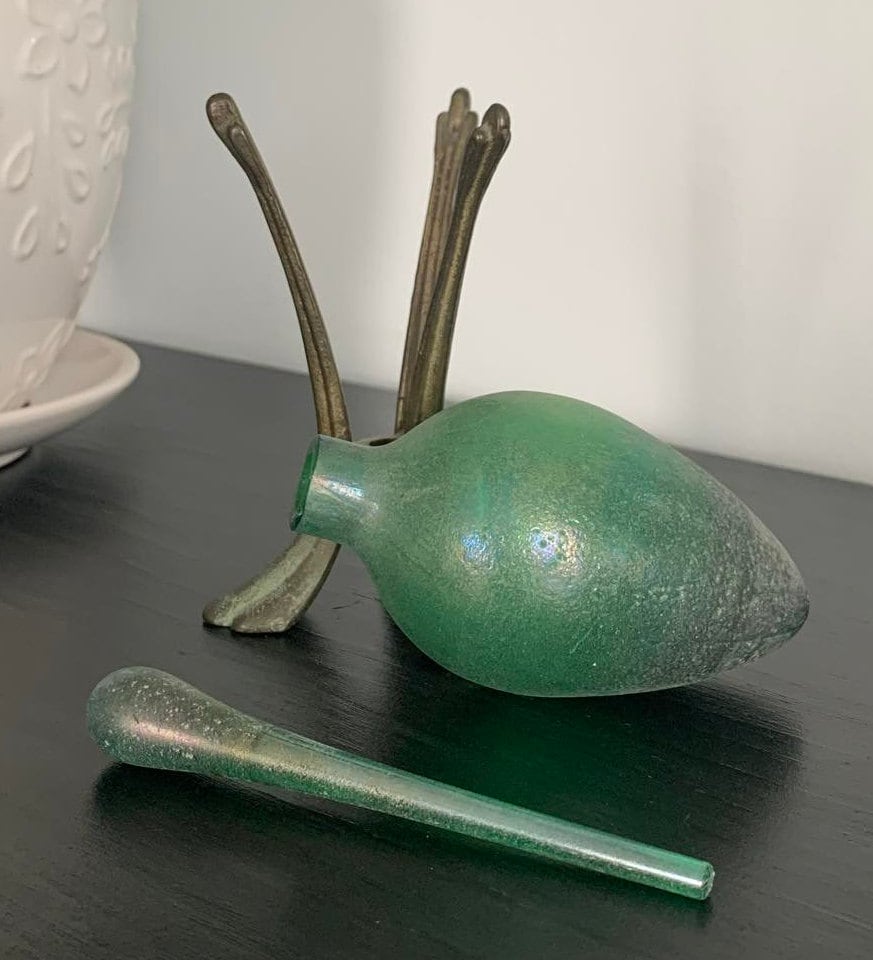 Iridescent Crackle Glass Egg Perfume Bottle on Stand