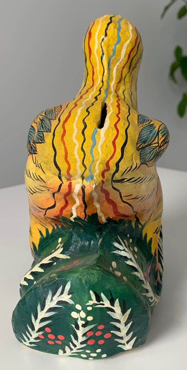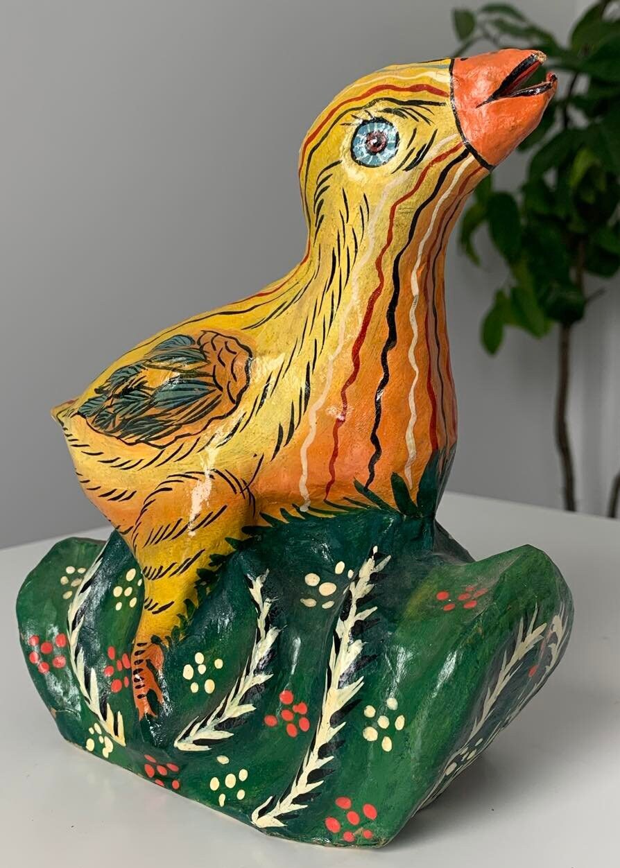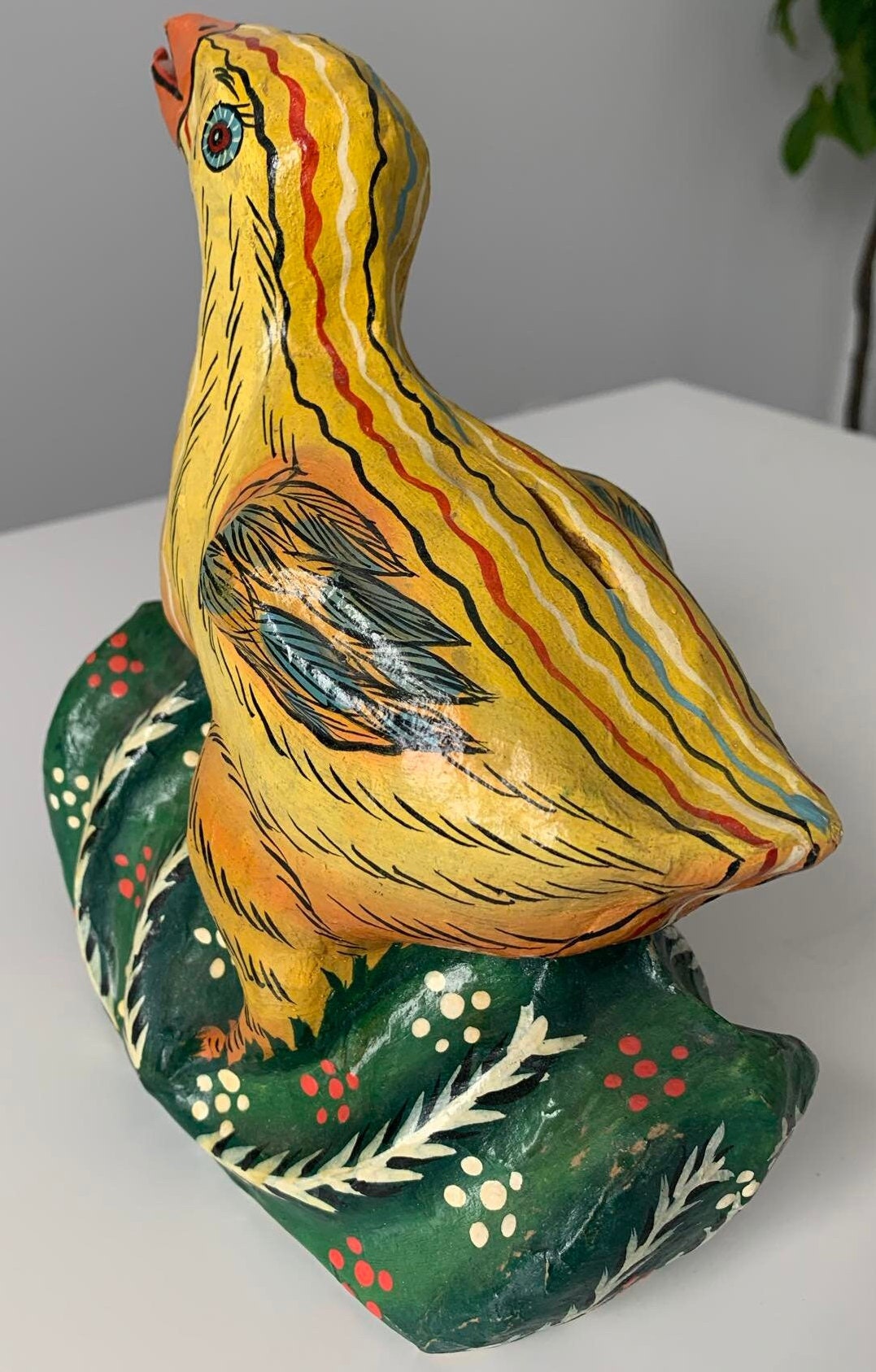 Vintage Easter Paper Mache Duck Piggy Bank - Signed by Coba