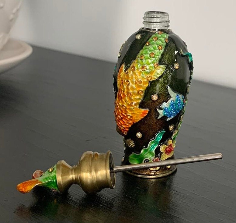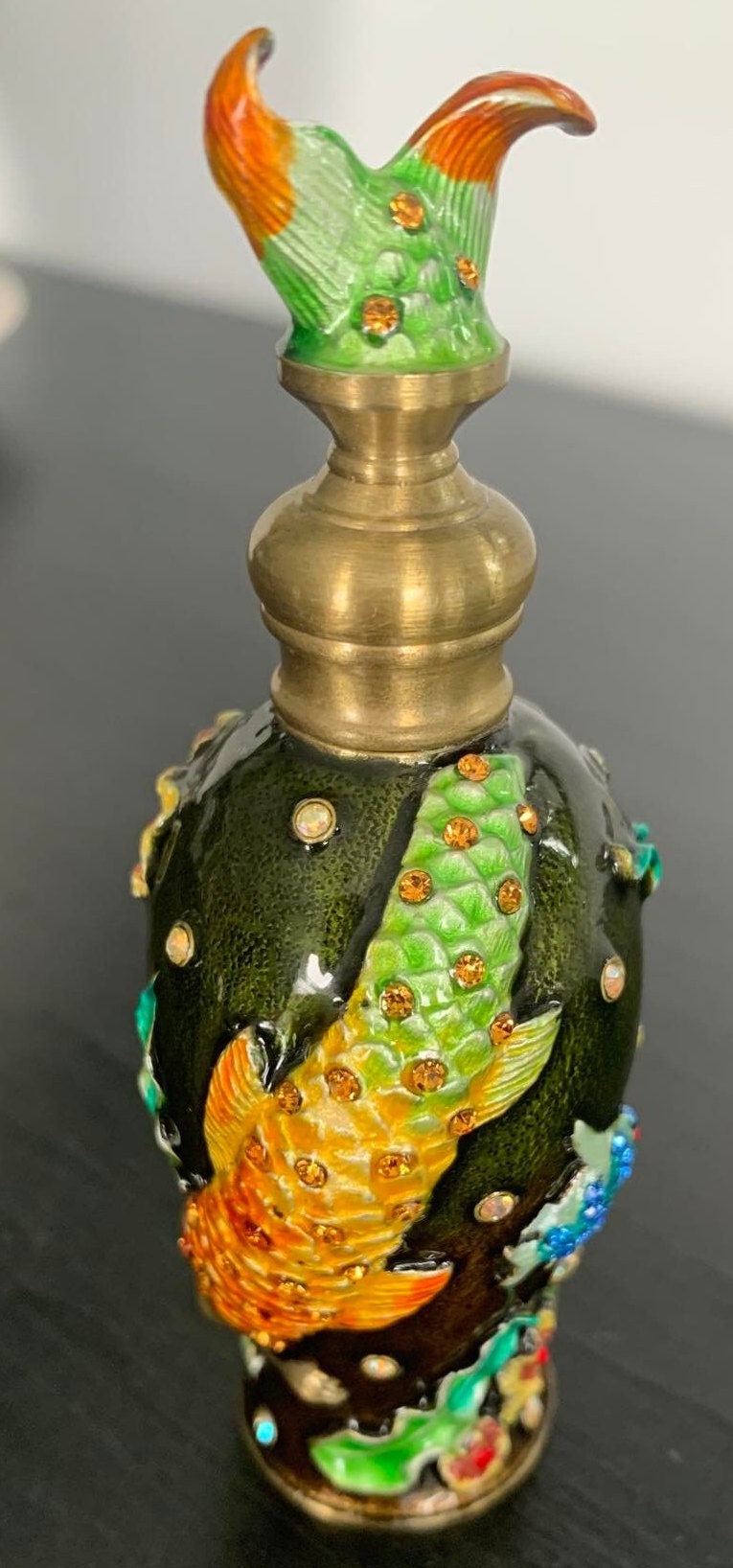 Enameled and Jeweled Koi Fish Perfume Scent Bottle