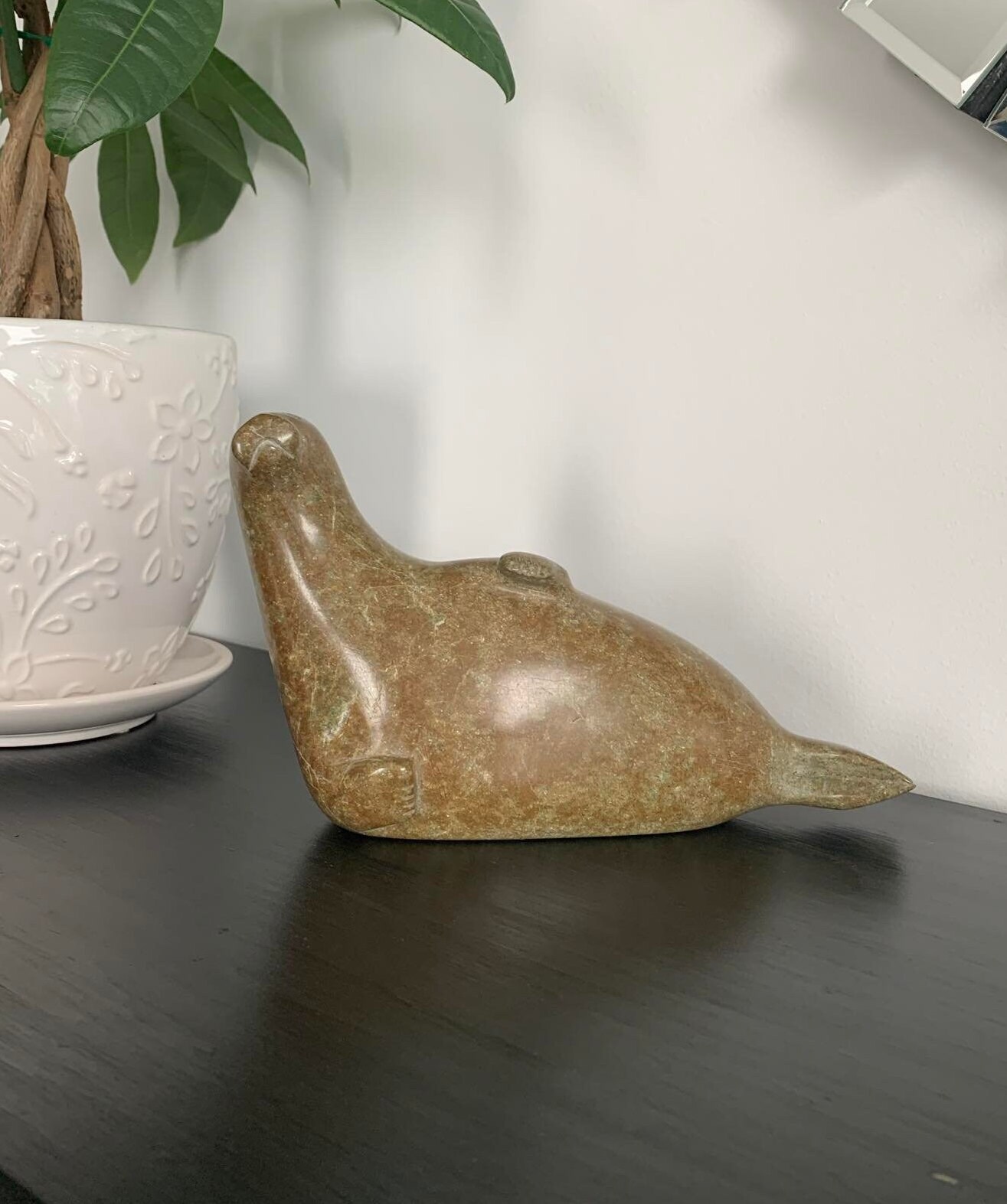 Seal - Inuit Soapstone Carving - By Iola Abraham Ikkidluak - Canada