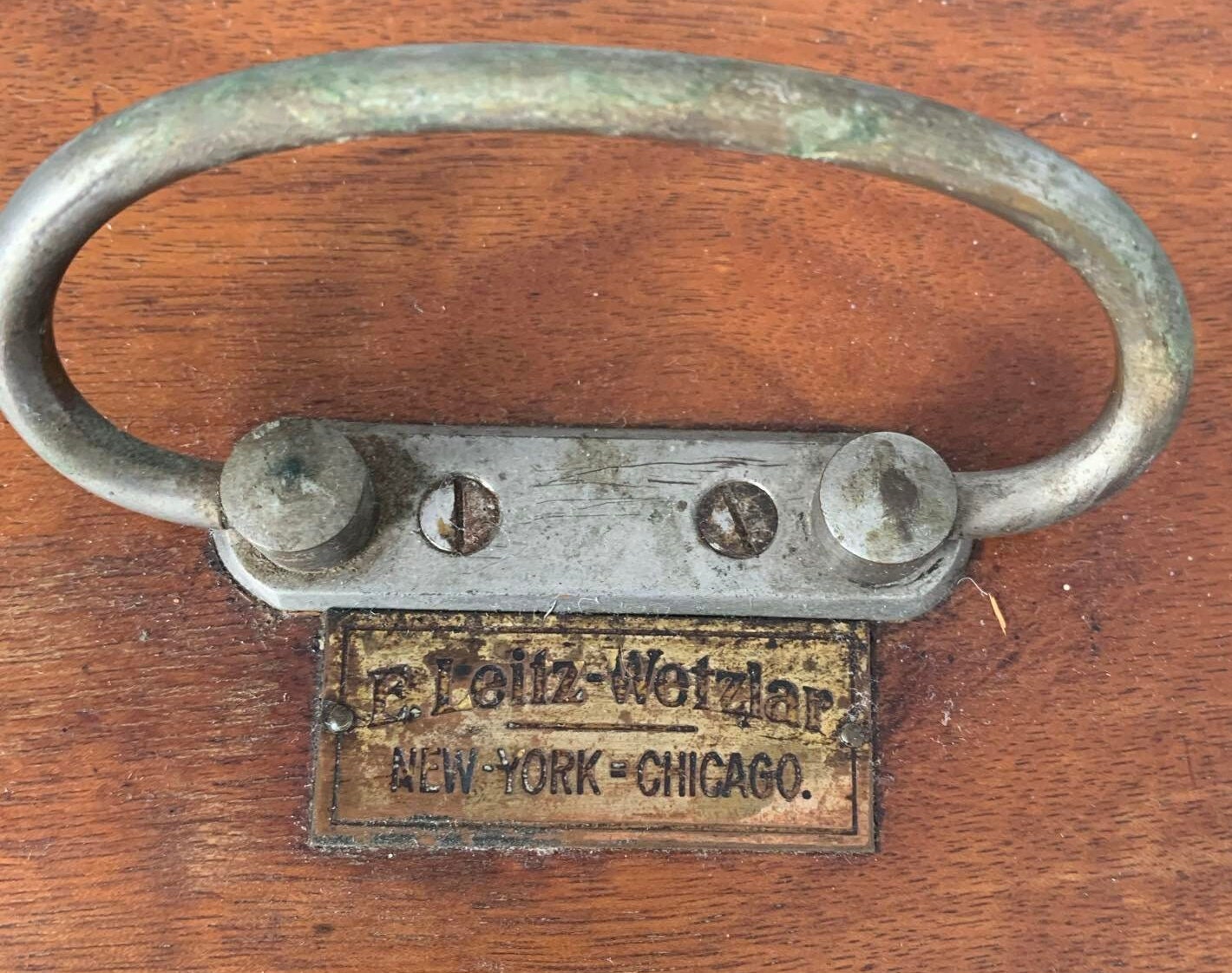 Includes wooden box skillfully crafted using delicate box joints made by F. Leitz-Wetzlar, New York-Chicago