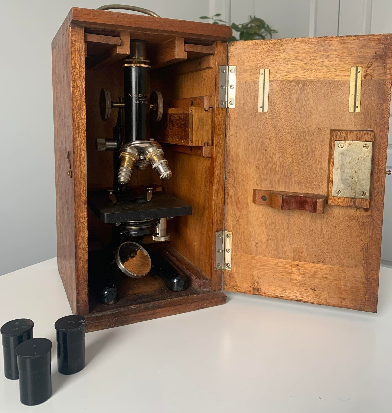 Antique Reichert of Austria - Microscope with Wooden Carrying Case
