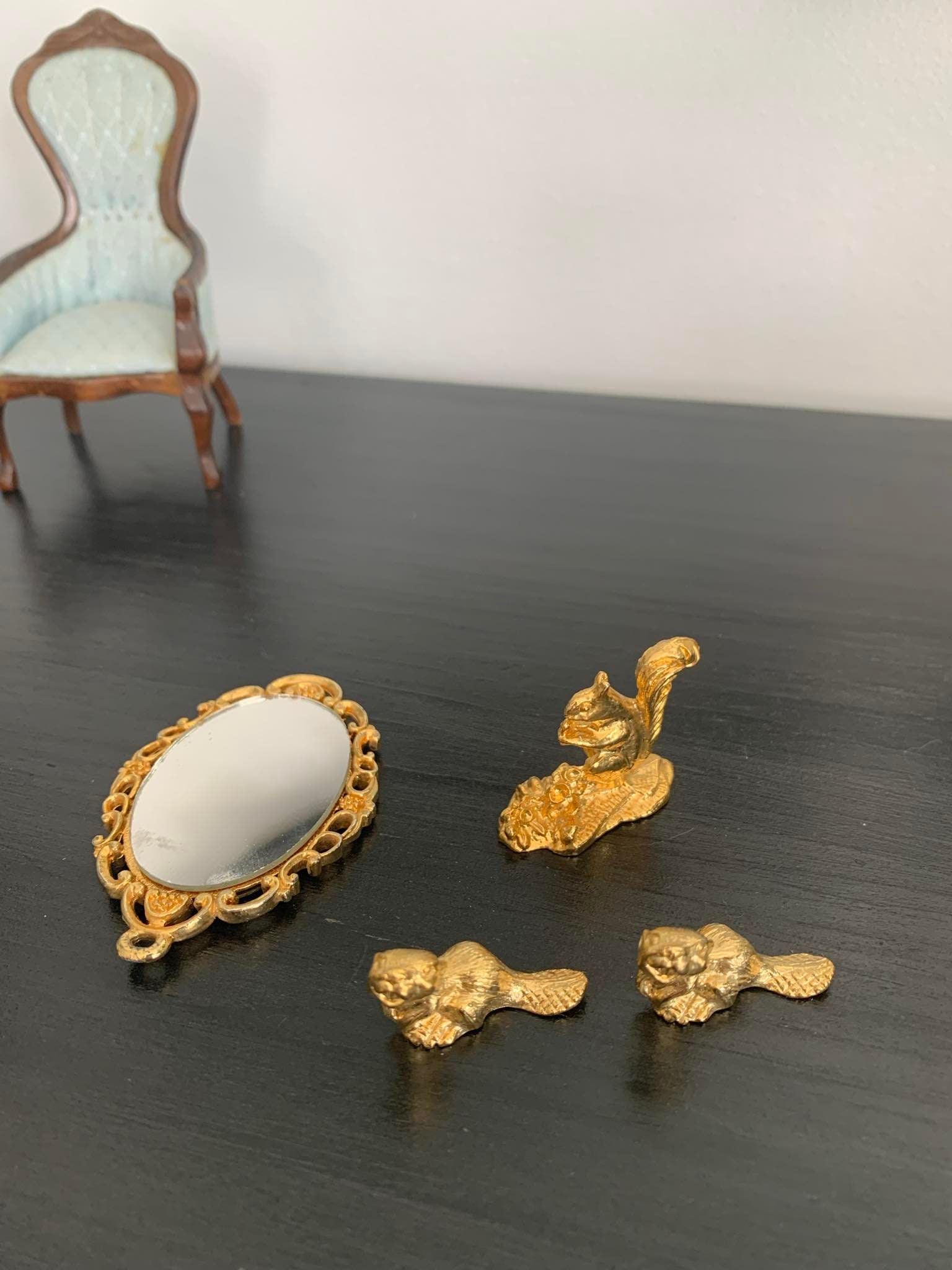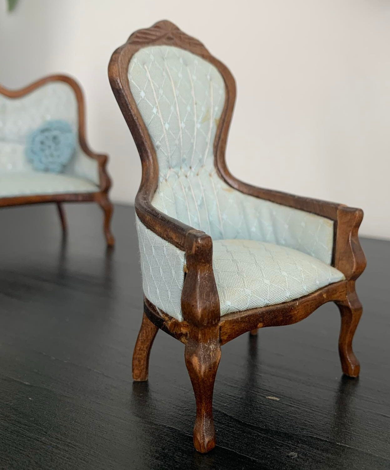 Lot of 10 Pieces of Vintage Wooden Doll House Sitting Room Furniture