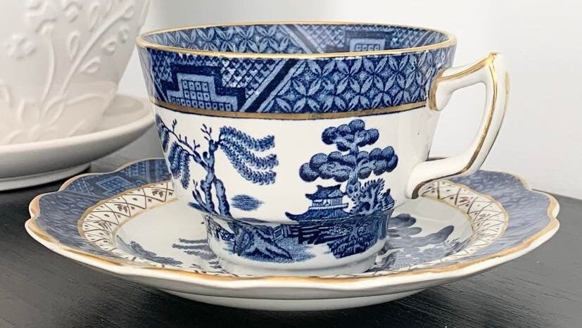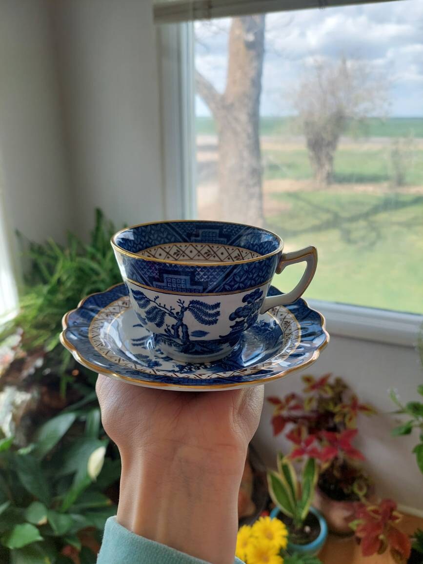 Booths Real Old Willow A8025 Tea Cup and Saucer - Blue Willow - England - Fine Porcelain