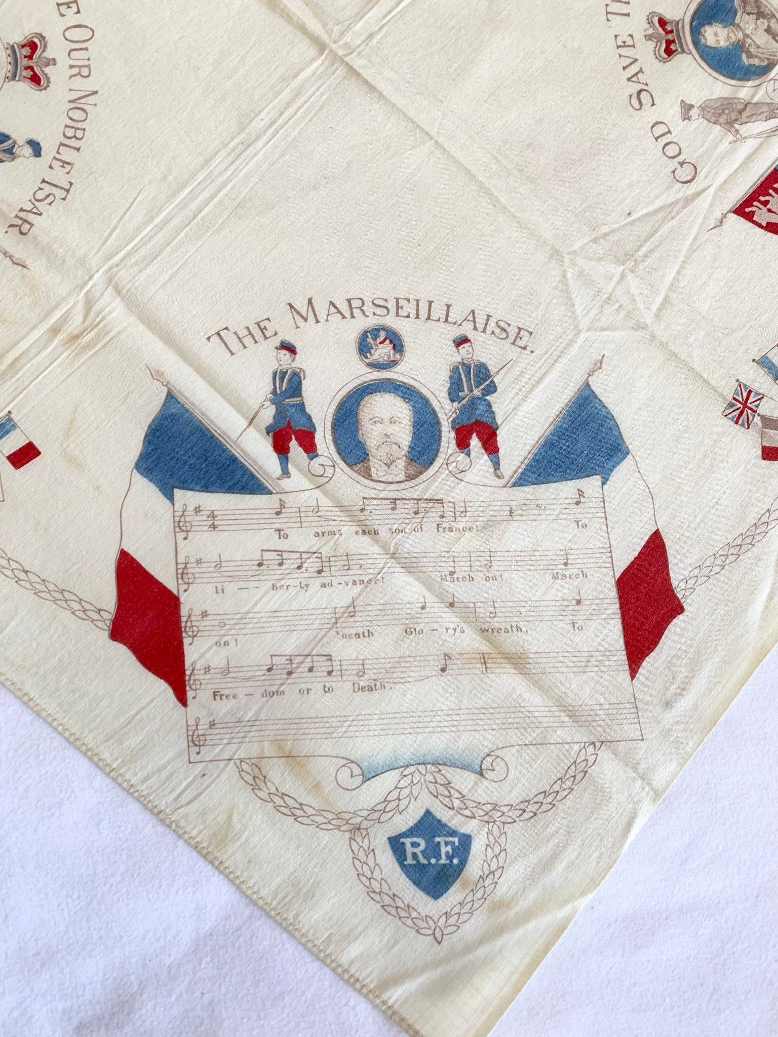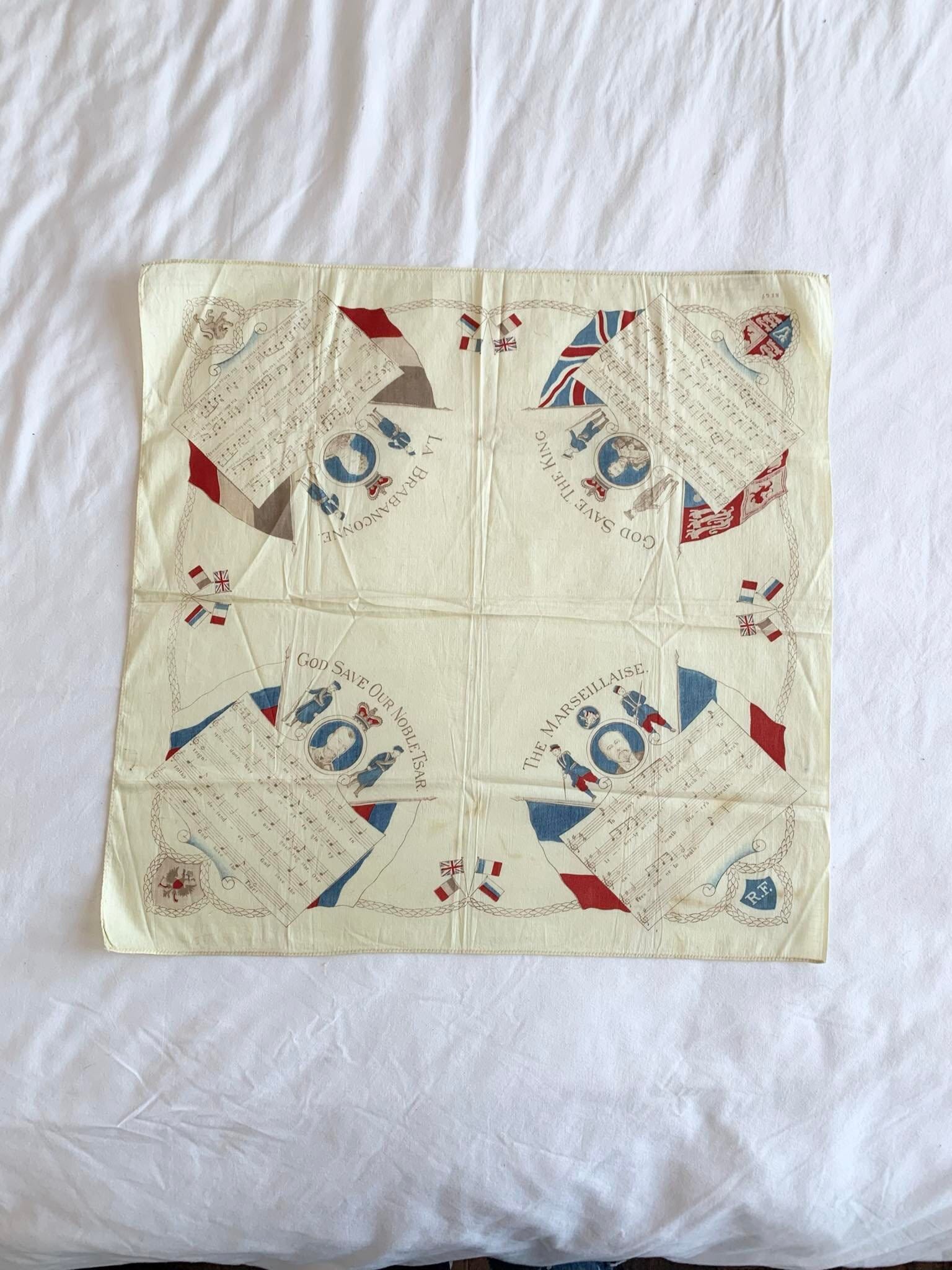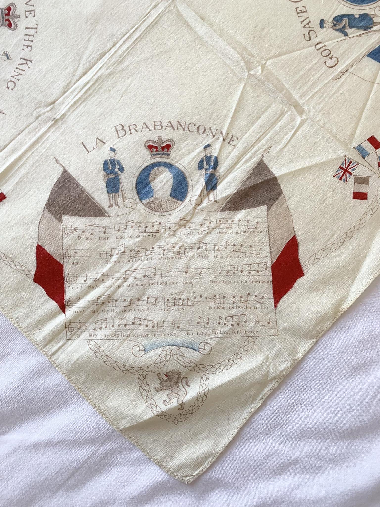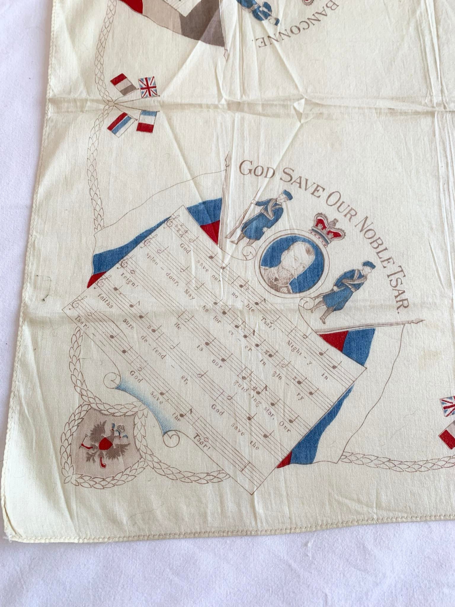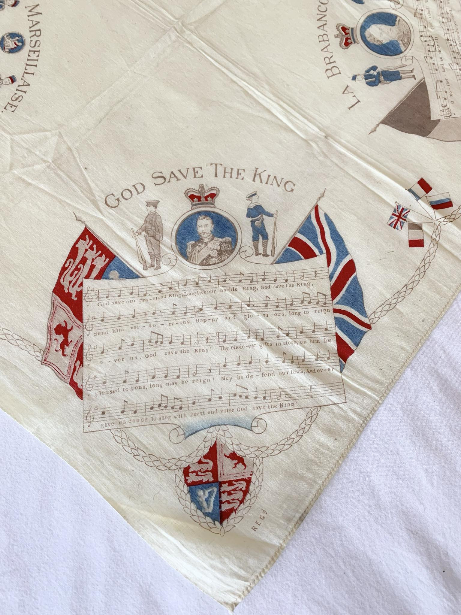 WW1 Allied Forces Silk Handkerchief - Anthems of Britain France Russia and Belgium - God Save the King / Tsar