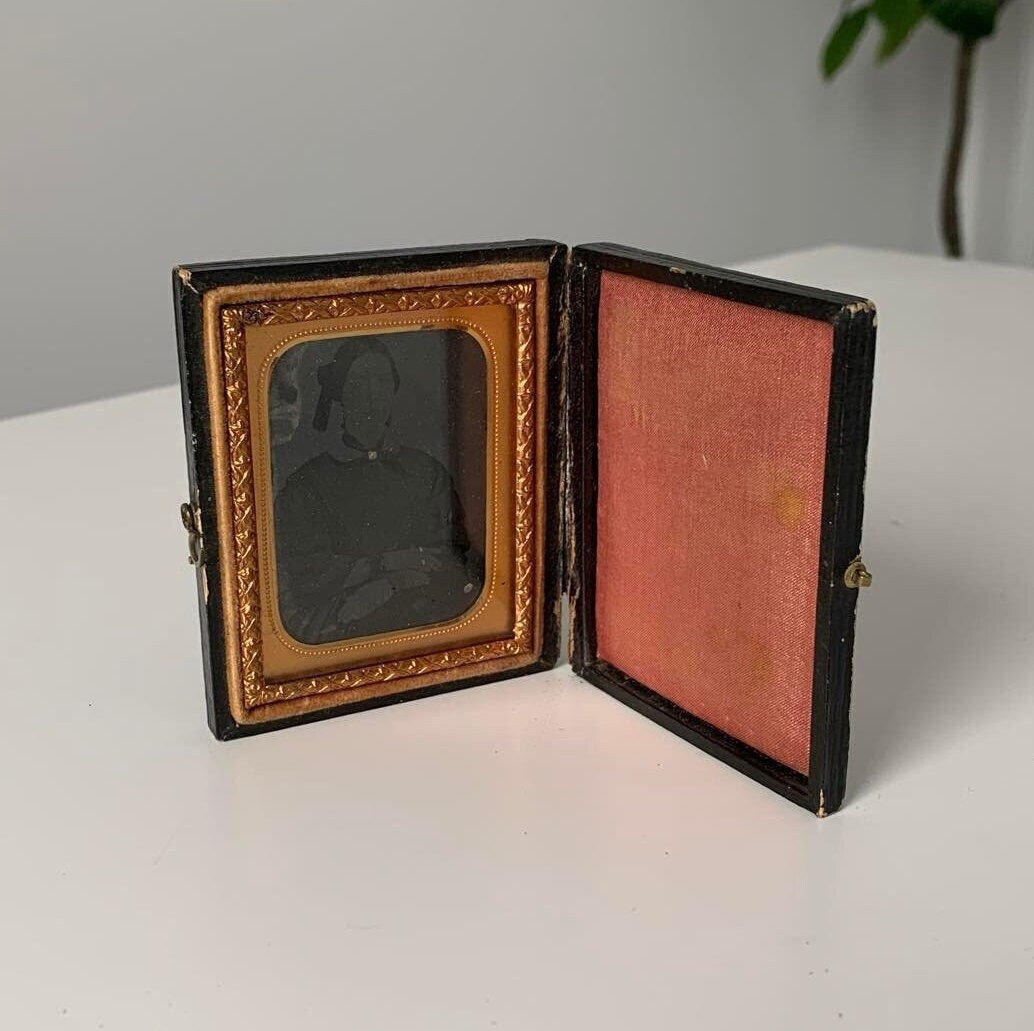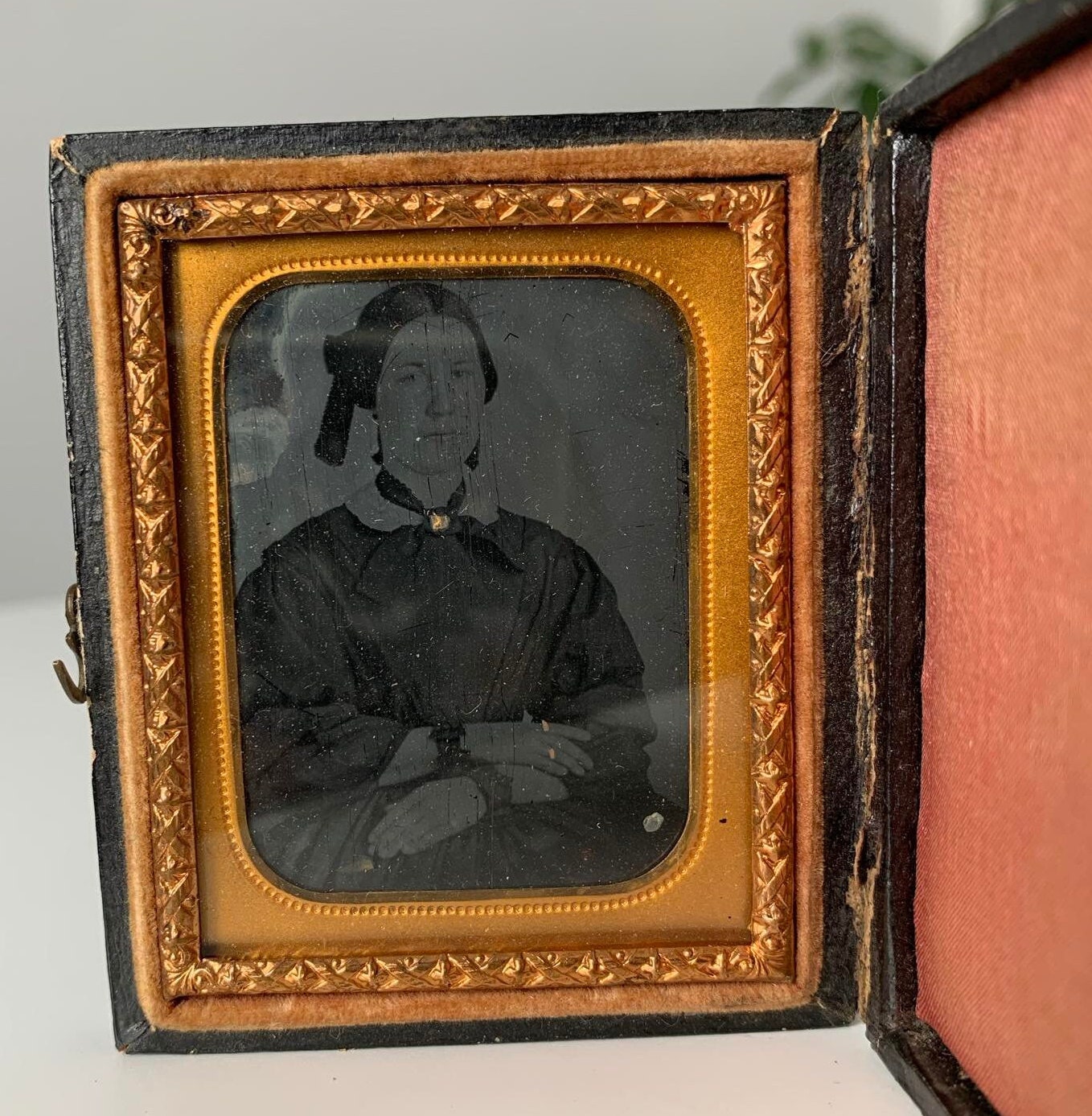Antique Daguerreotype Photo of a Lady in a Velvet Leather Case
