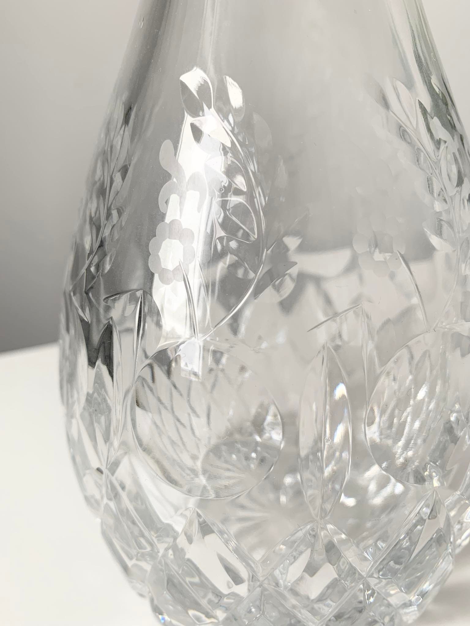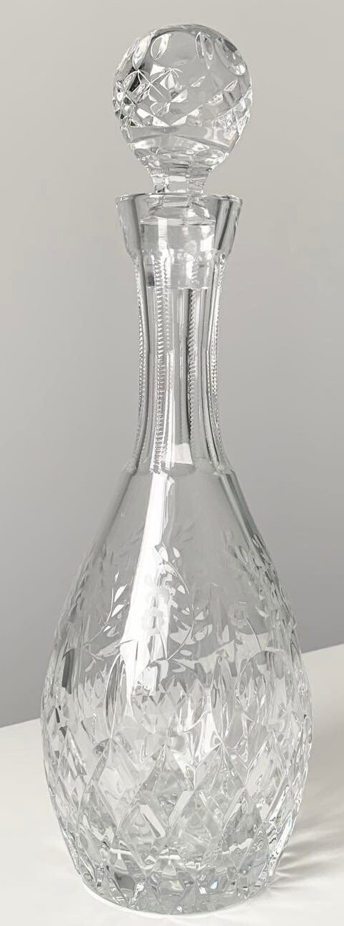Vintage Faceted Etched Floral Pattern Rogaska Gallia Crystal Decanter