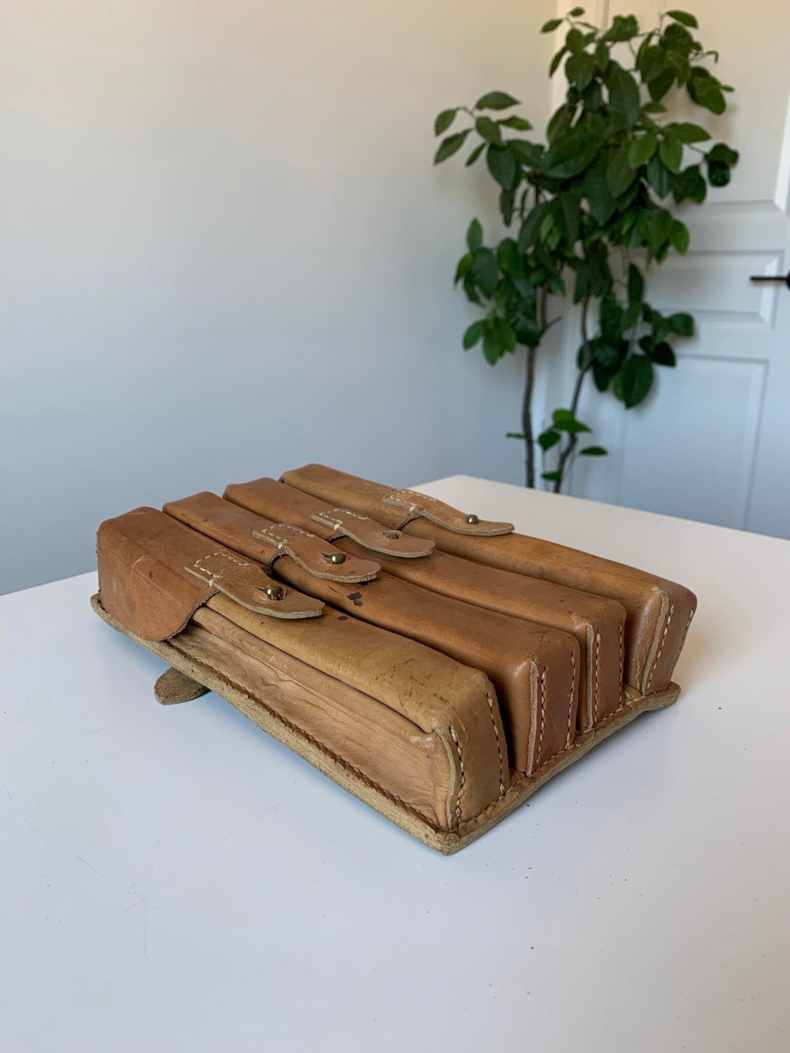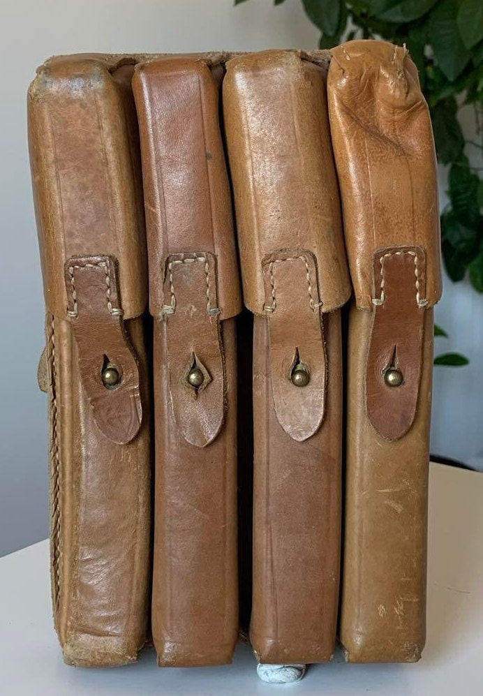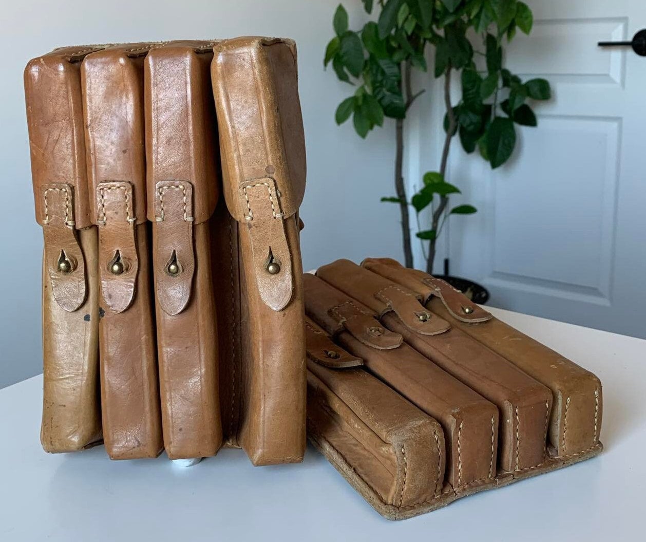 Pair of Original Yugoslav M56 SMG Leather Four Cell Magazine Pouch - Works with MP 40 Magazines & Others
