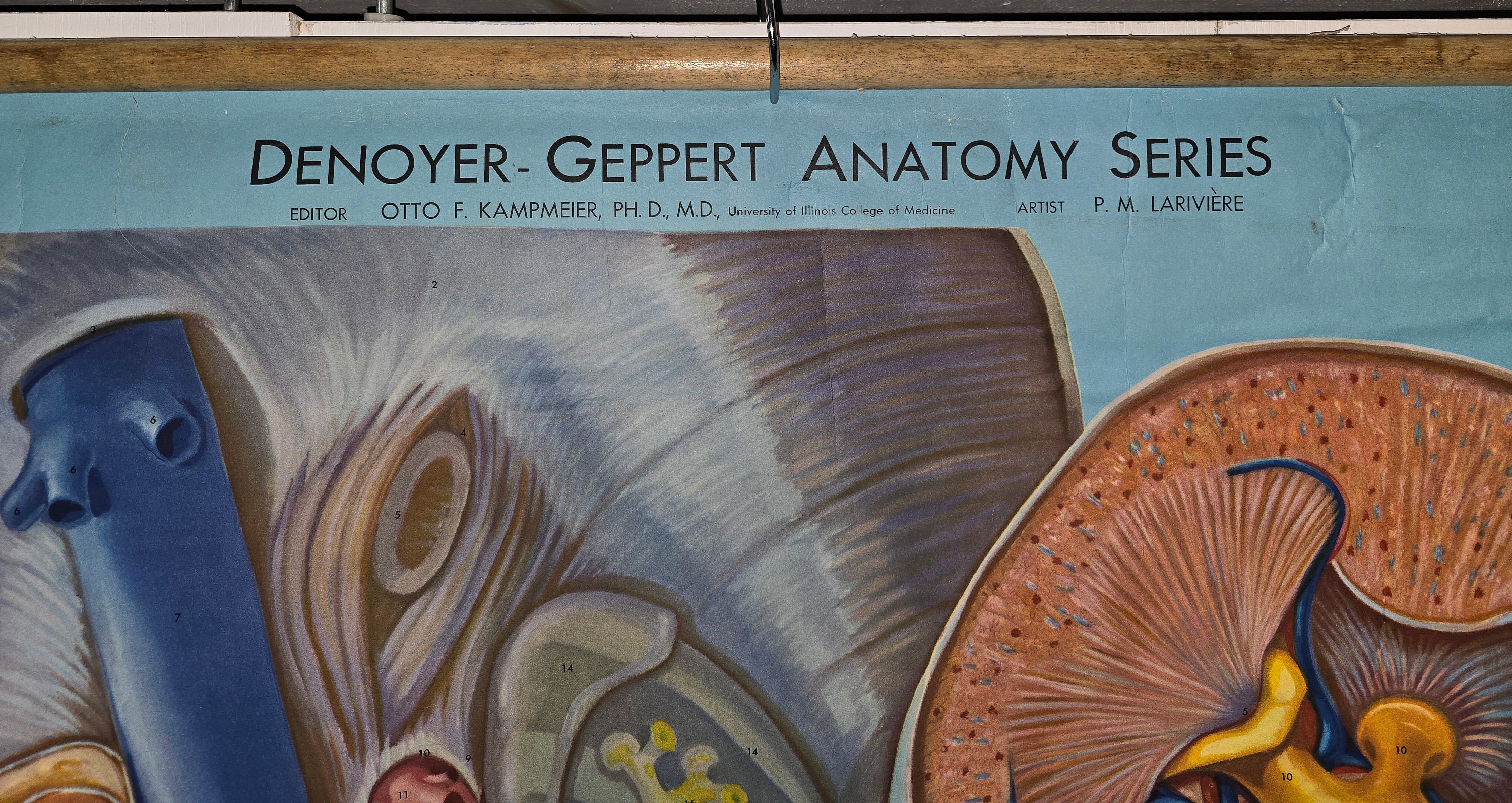 Charts KL1-KL10 were illustrated by Pauline M. Lariviere (1906 - 1988), a Canadian-born medical illustrator and painter. Lariviere's original illustrations, created as oil paintings, were captured on photographic glass plates to be used in mass production of the charts.