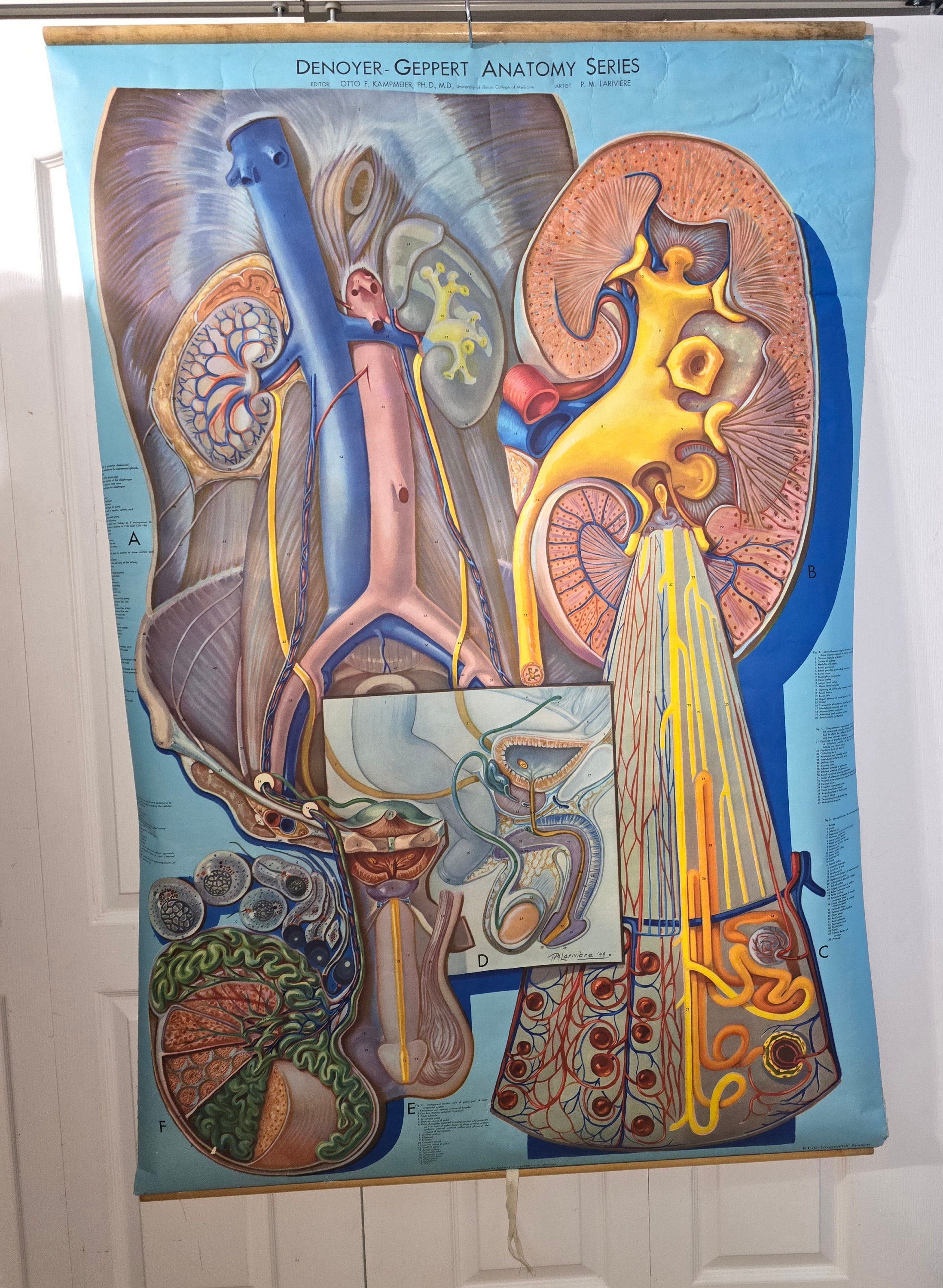 Large Vintage Anatomy Chart by Denoyer-Geppert - Anatomy Series KL 10 Urogenital System - Artist P.M. Larviere