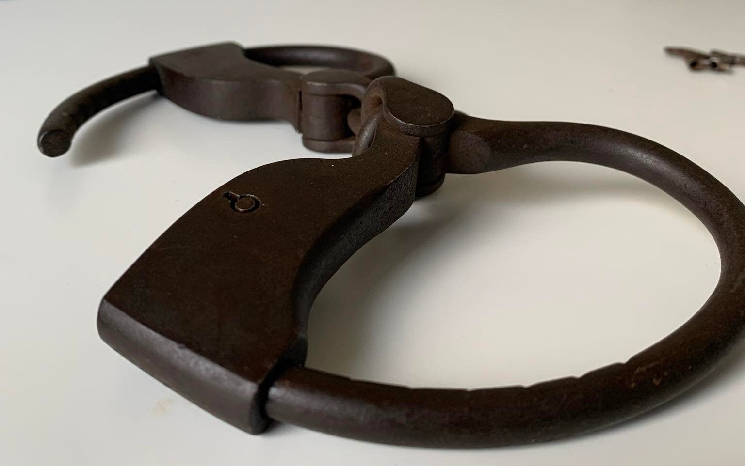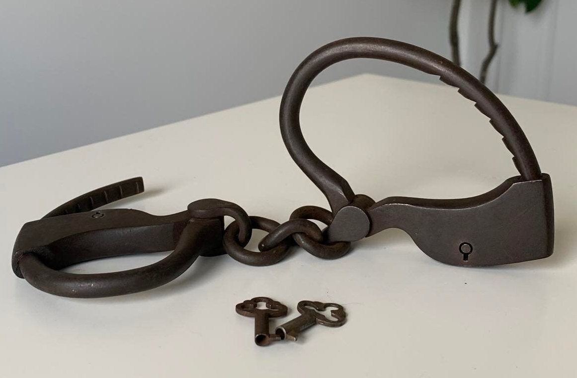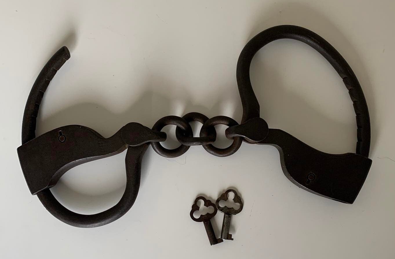 Antique 1800s Towers Double Lock "Sweetheart" Handcuffs with Keys