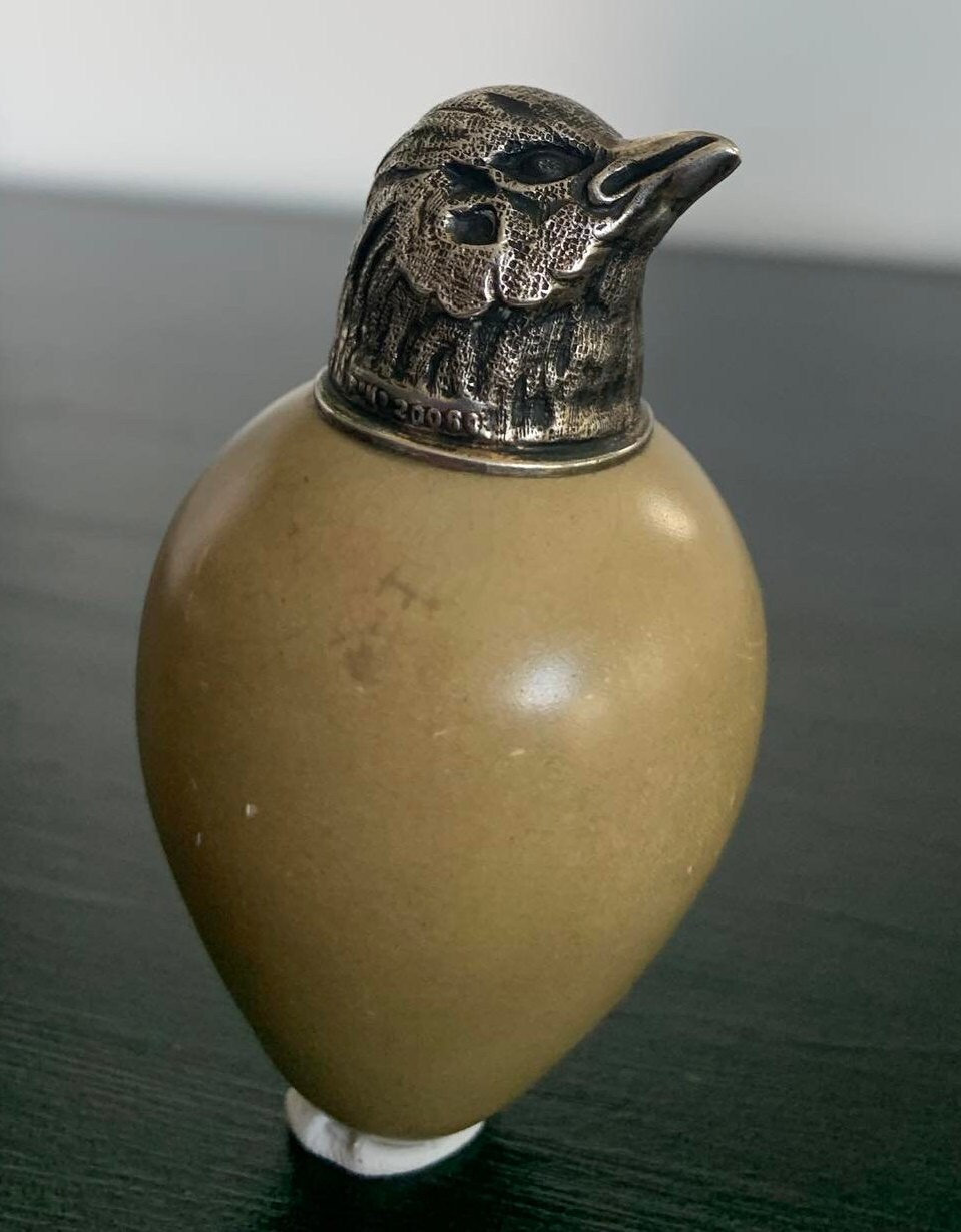 Victorian Silver and MacIntyre Ceramic Egg Scent Bottle