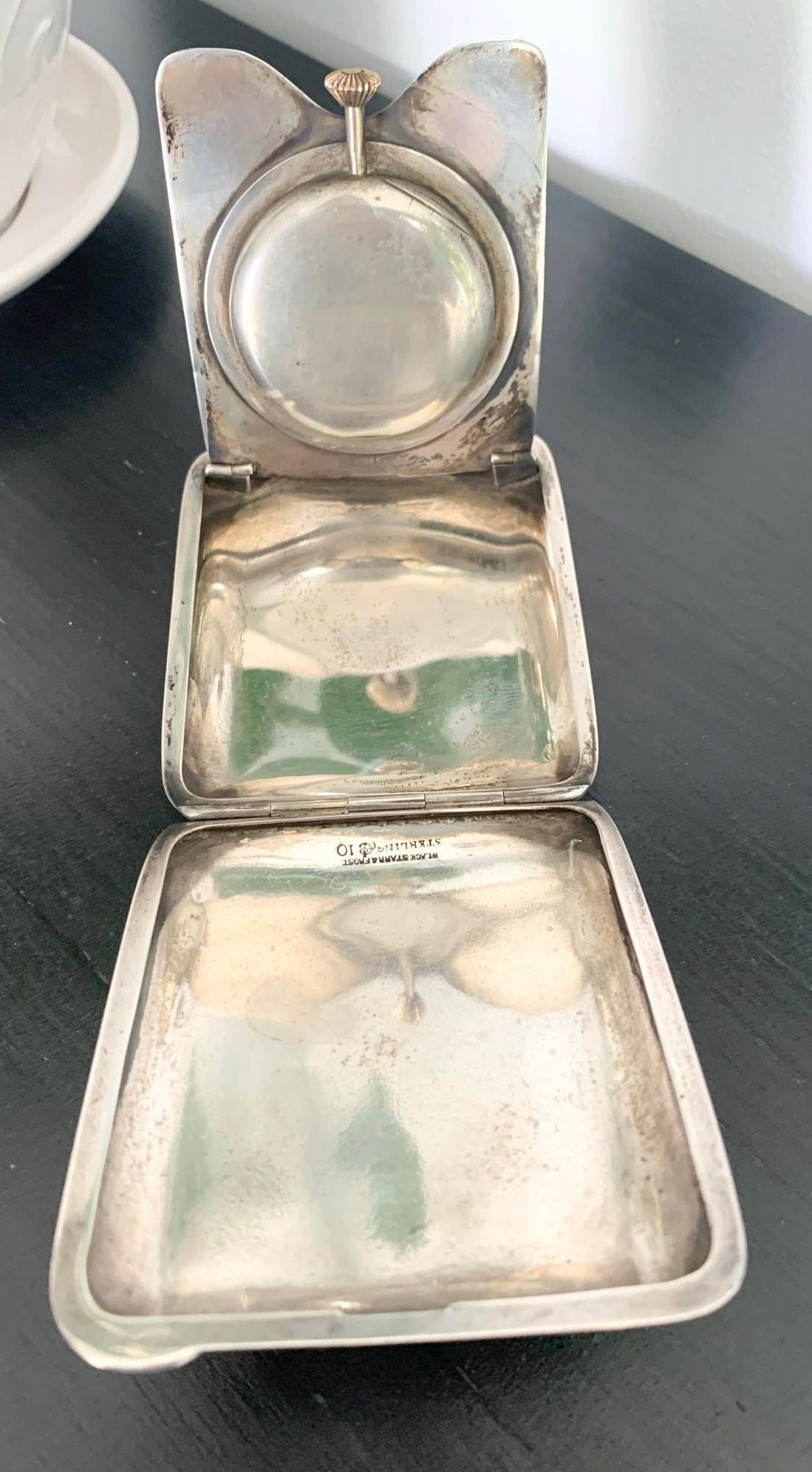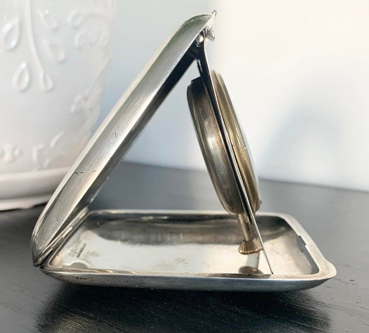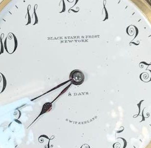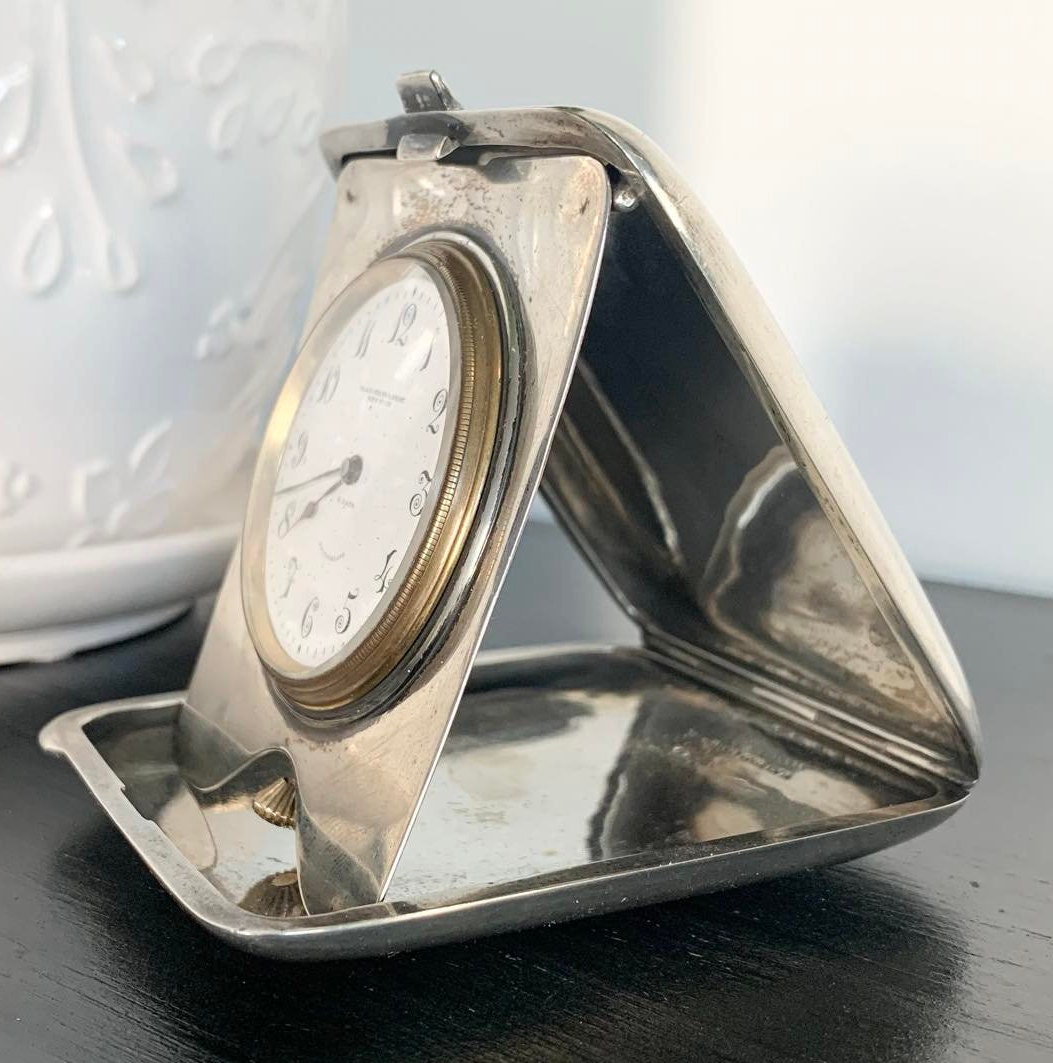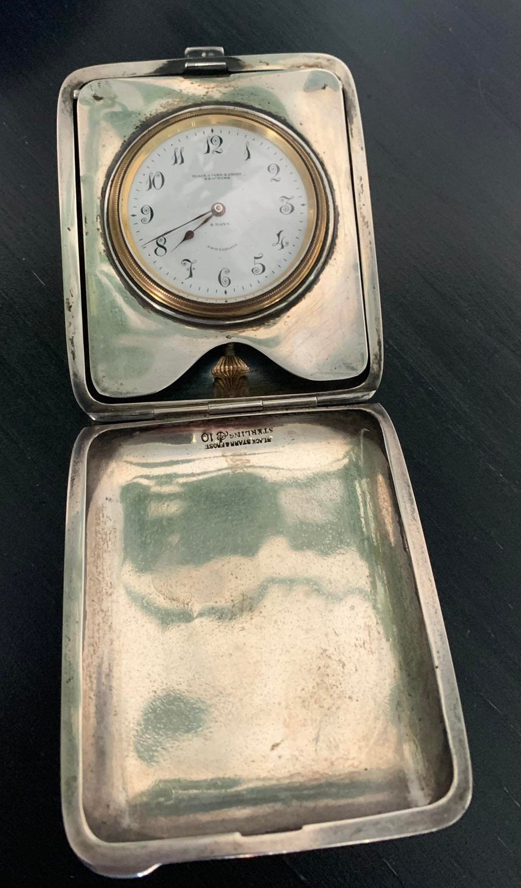 Black, Starr & Frost Sterling Silver and 10k Yellow Gold 8 Day Travel Clock. Made in Switzerland