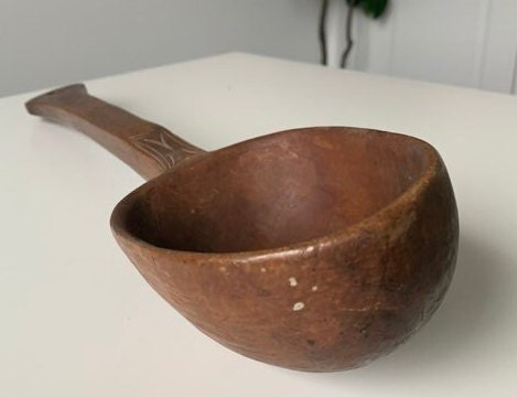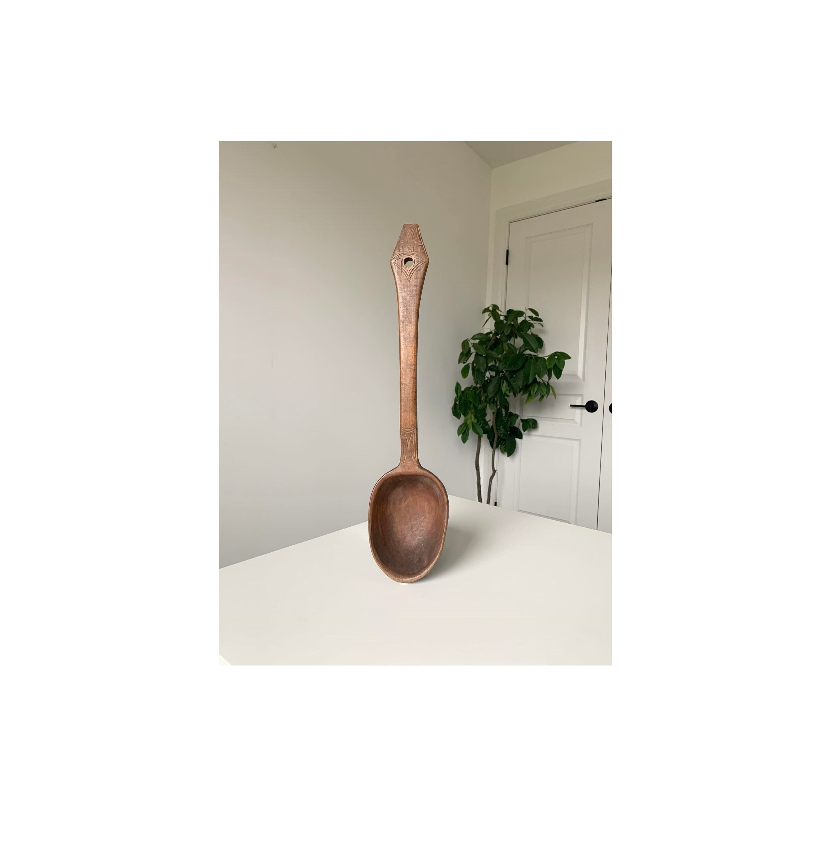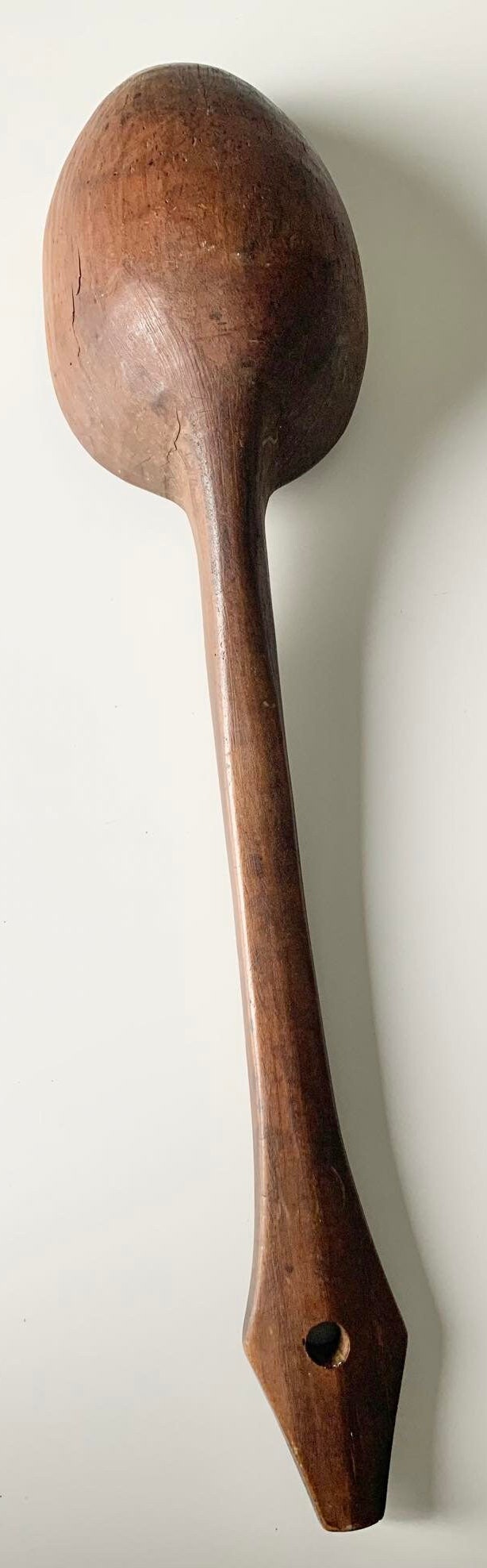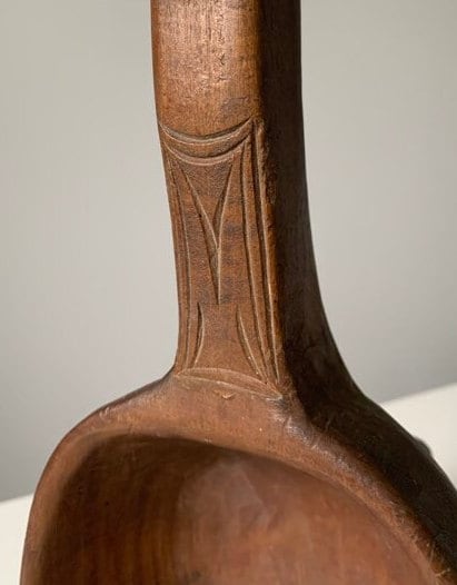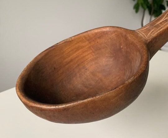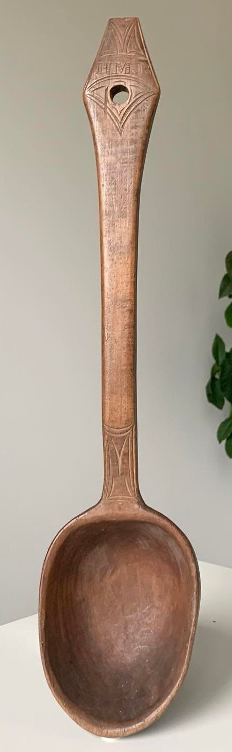 Large 19" Antique Primitive Carved Treen Ladle - Etched HMR