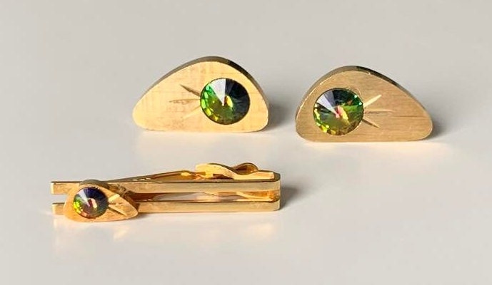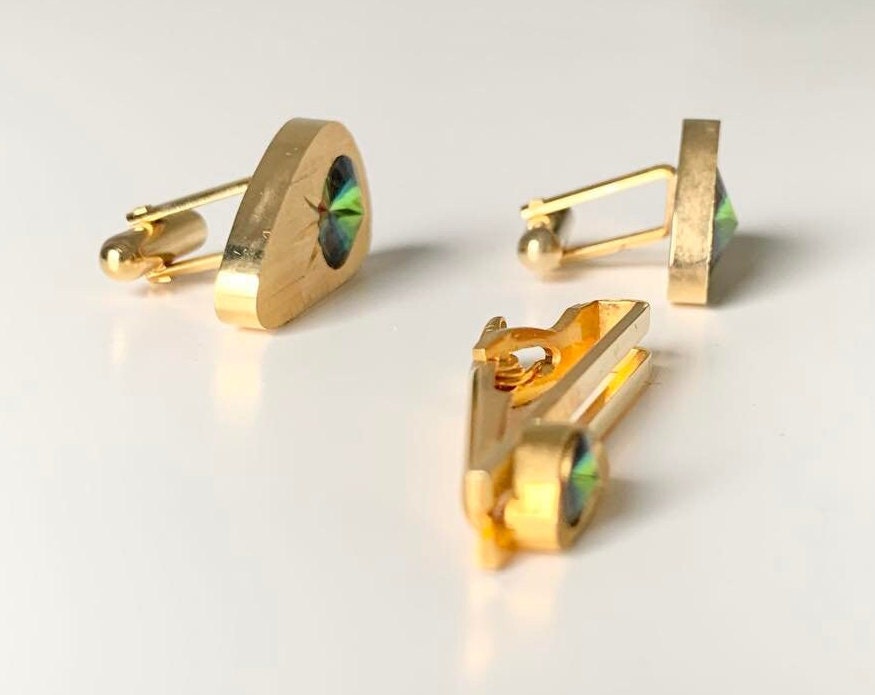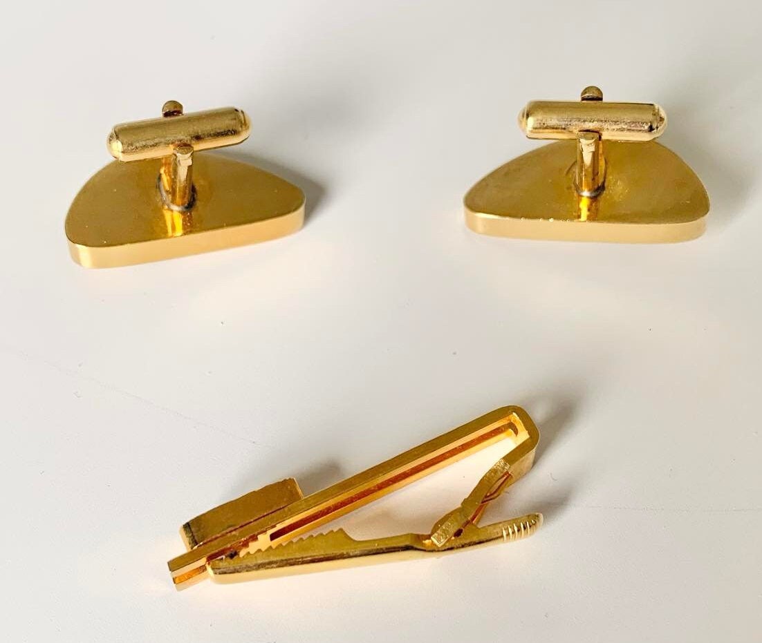 Item Measurements in Inches: Cufflinks 1.25 inches across, Tie Clip 1.75 inches