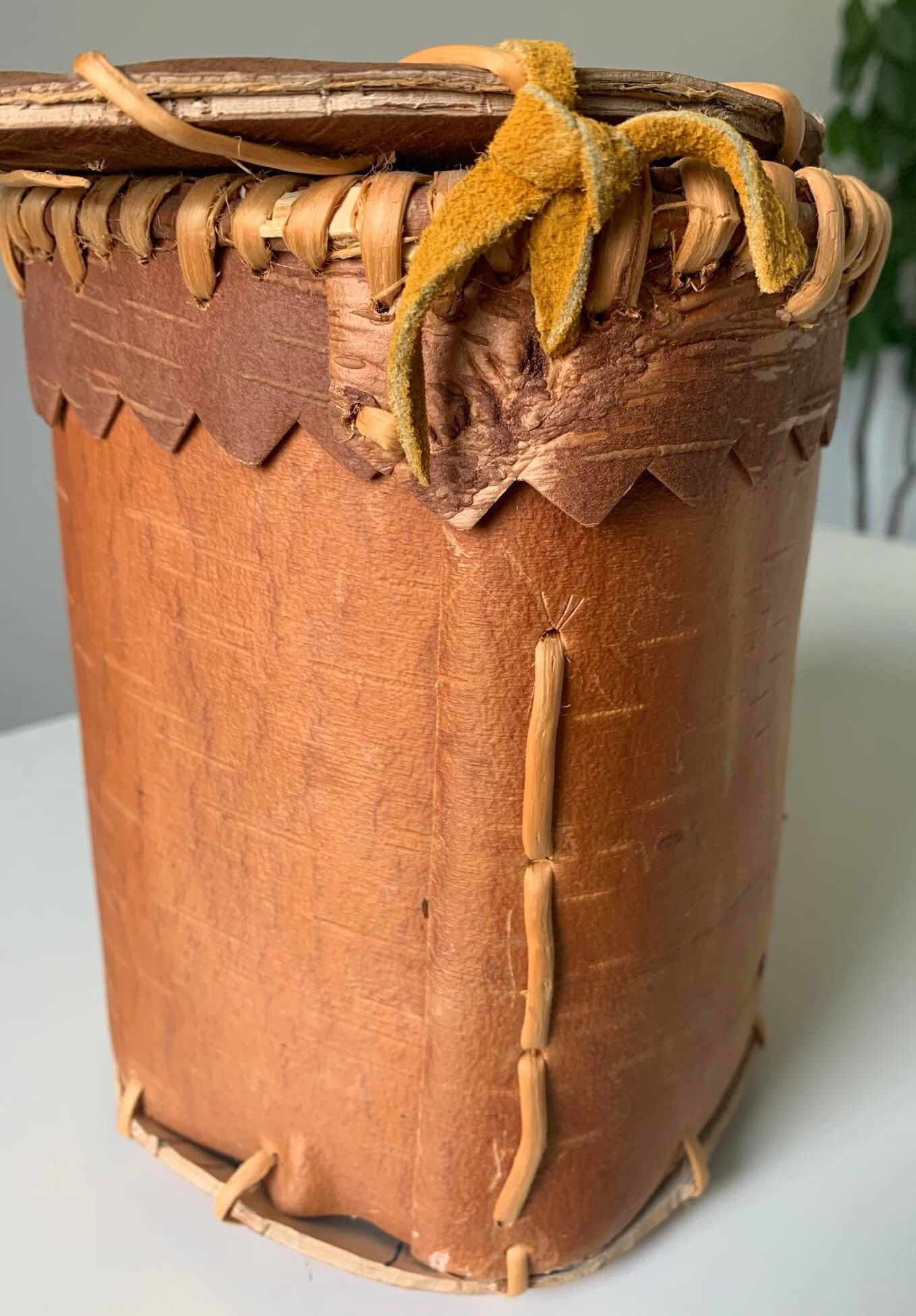 Dolly Metchooyeah, is a Dene Tha First Nation artist based in the Chateh community in Northern Alberta. She works mostly with birch and beadwork.