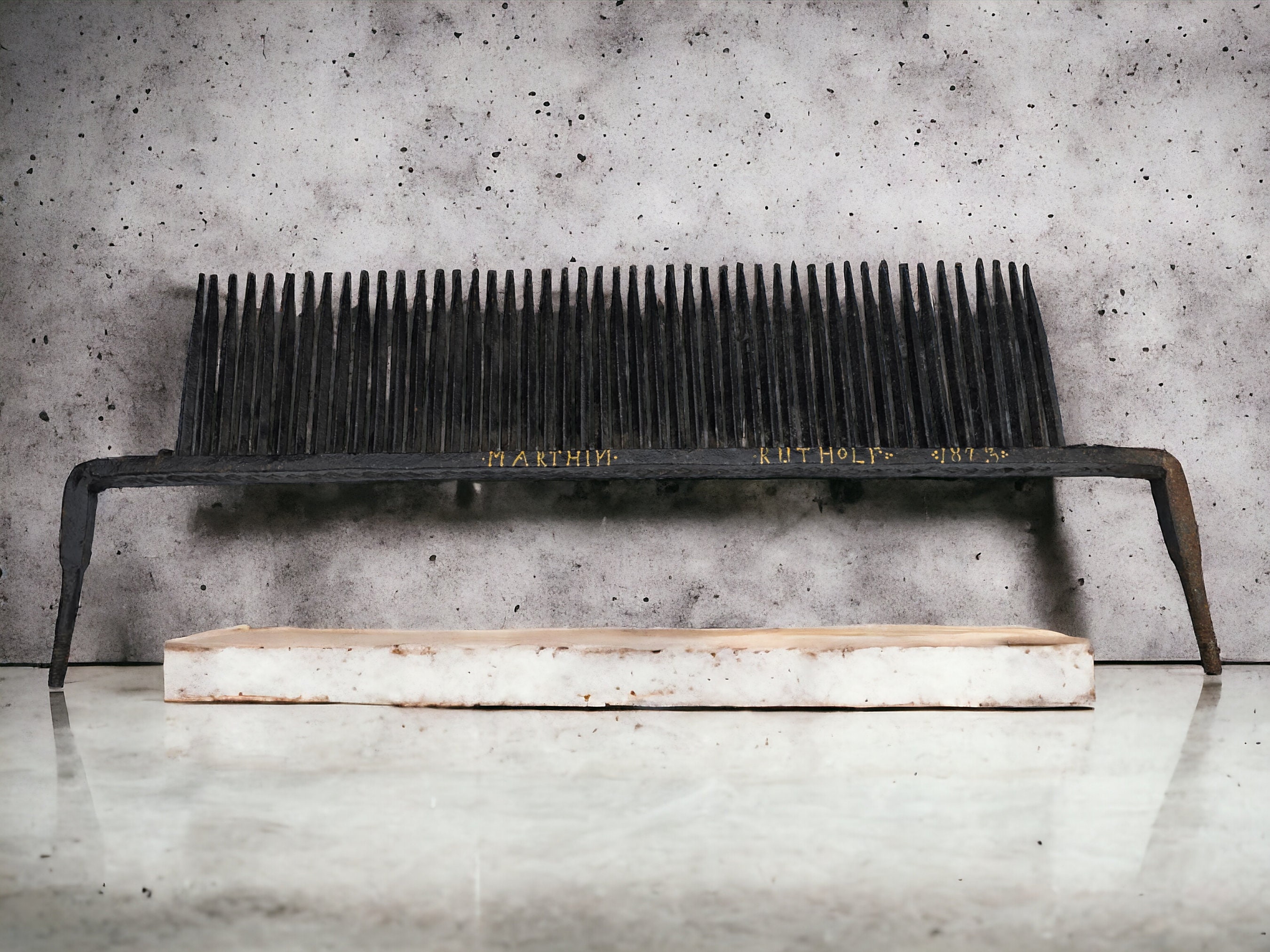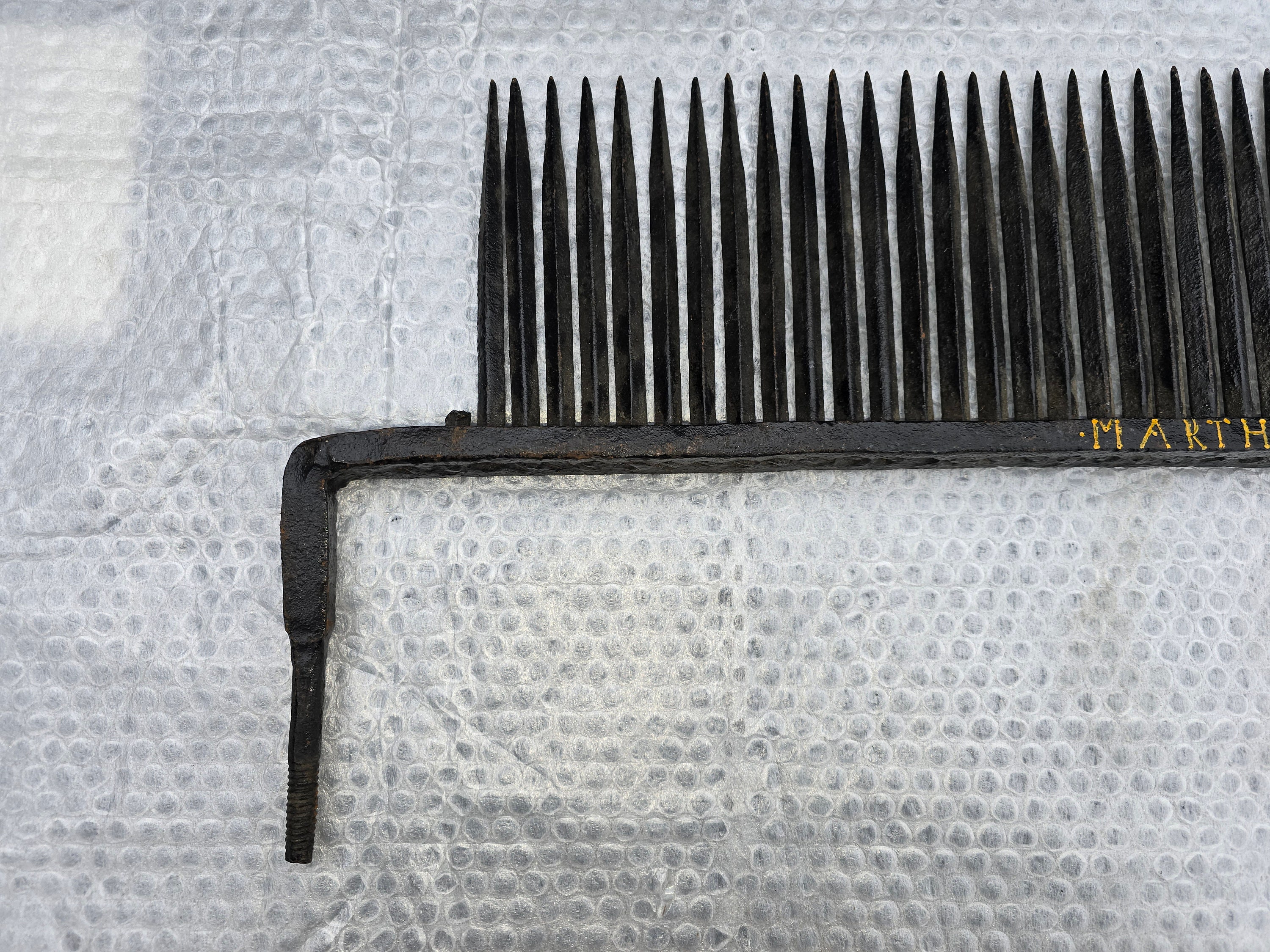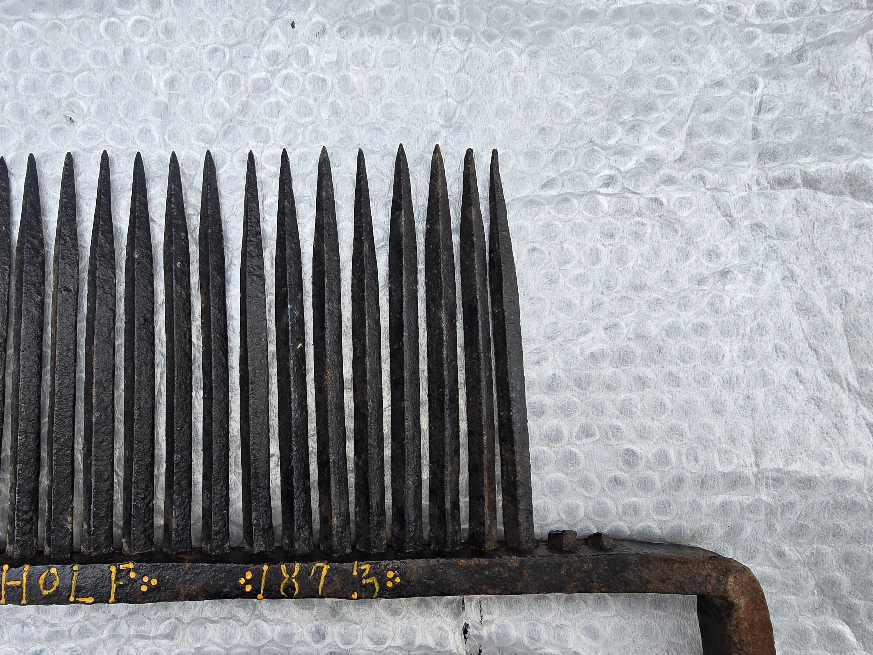 Large Primitive Hand Forged Metal Flax Comb / Hackle - Dated 1873