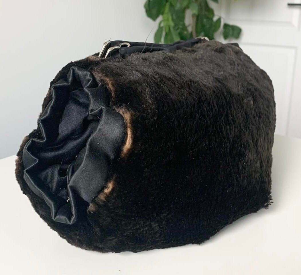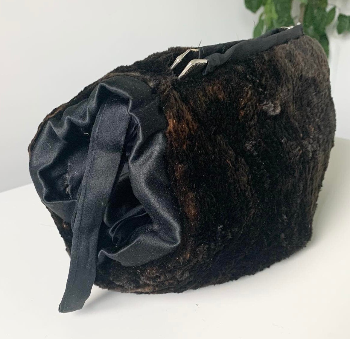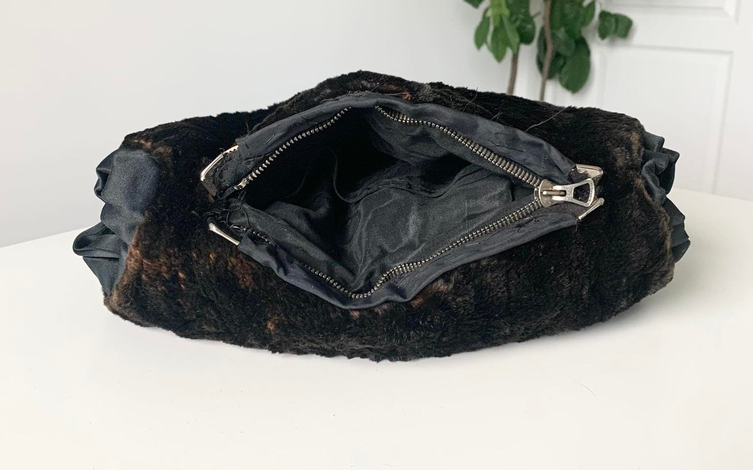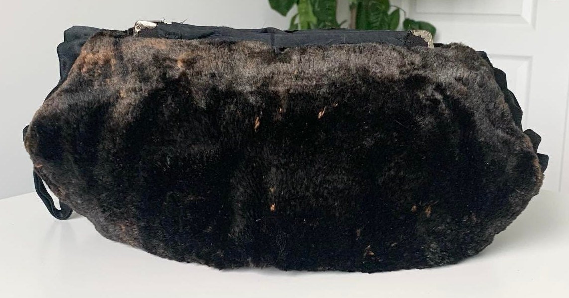 Vintage Victorian Dark Fur Muff / Handwarmer with Built in Zippered Purse